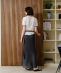 夏のTシャツスタイルやカジュアルなトップスと合わせて着たい、夏用のプリーツシアーニットスカート。軽やかな透け感のあるシアー編地にプリーツ加工をかけており、動くたびにゆらゆらと裾回りが広がる、気分の上がる1着です。中には共糸の編地で膝上丈の裏地を付けているので、腰回りは透けずに安心感のあるデザインです。