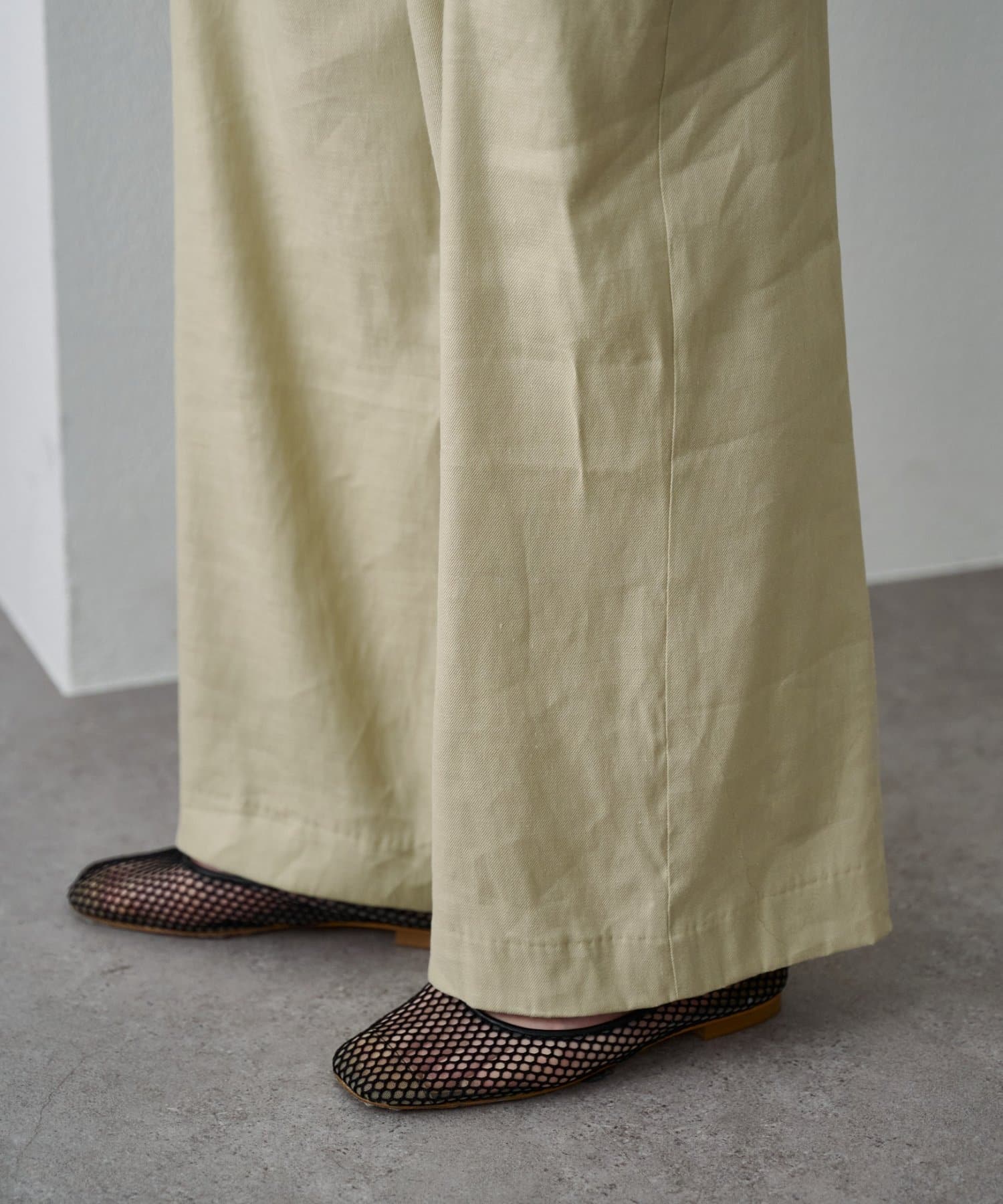 麻のナチュラルな素材に、レーヨンの落ち感をプラスすることで