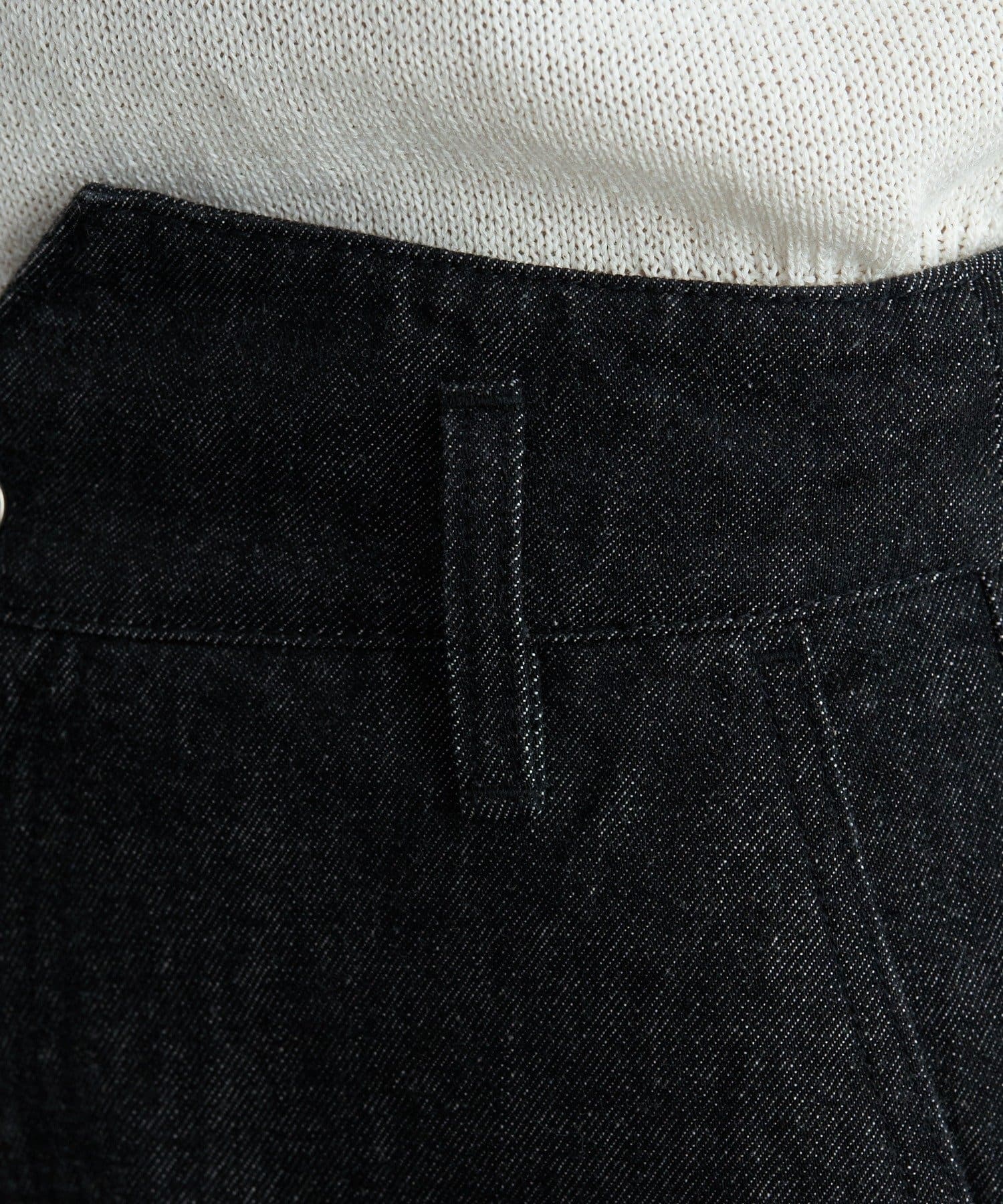 フロント釦は着脱がしやすいよう、ドット釦を使用。釦を開けてベルト部分を折り返して履くのも素敵です。