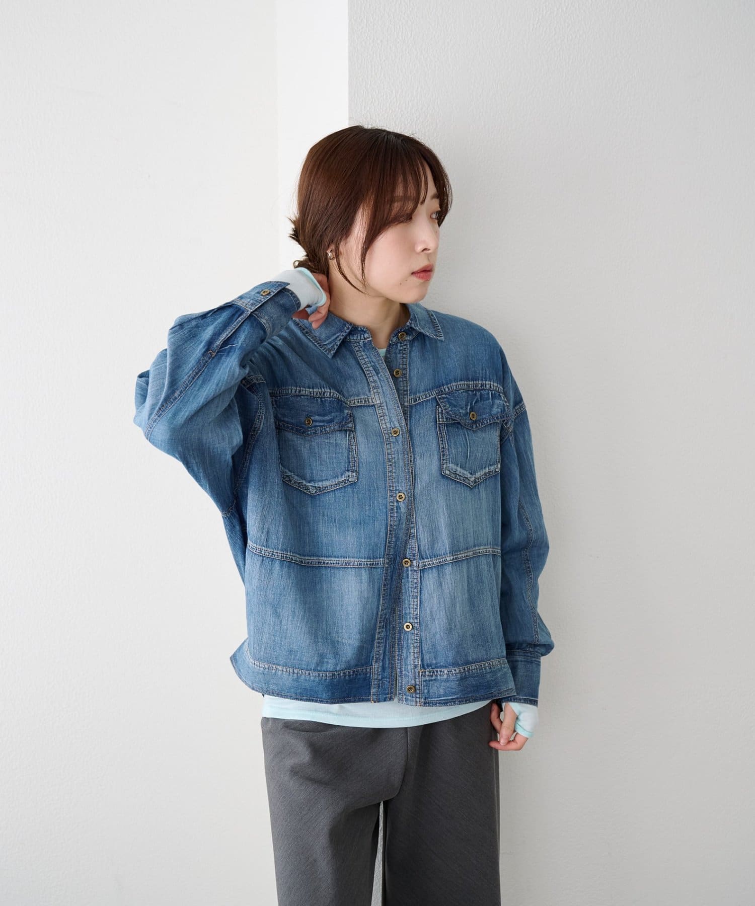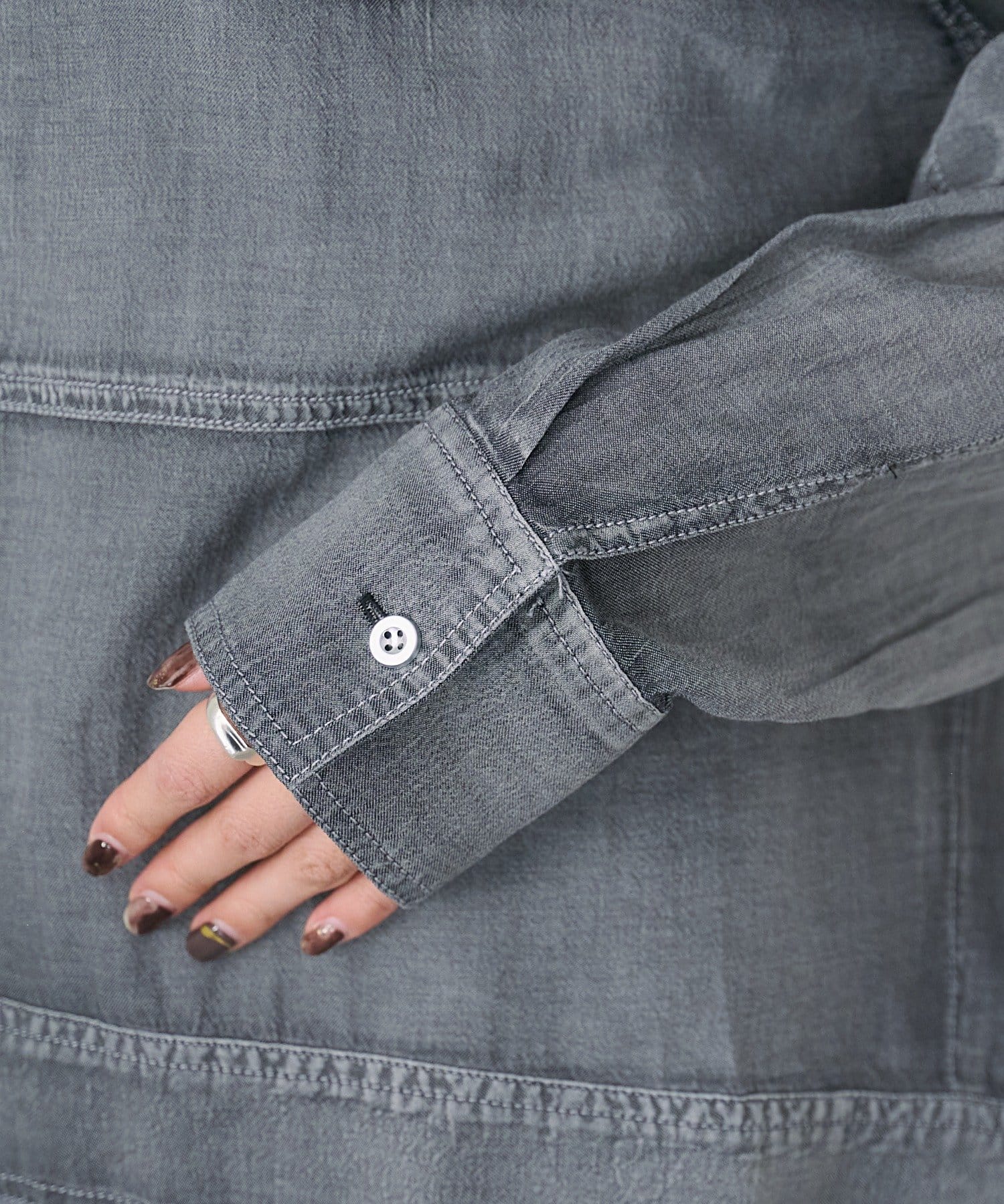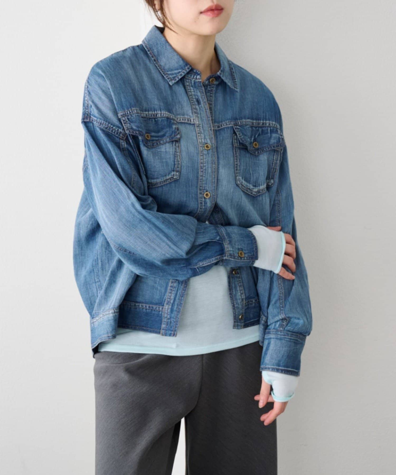 一見フツーのデニムシャツと思いきや、透け感があり、夏まで活用できそうです。