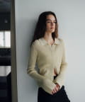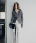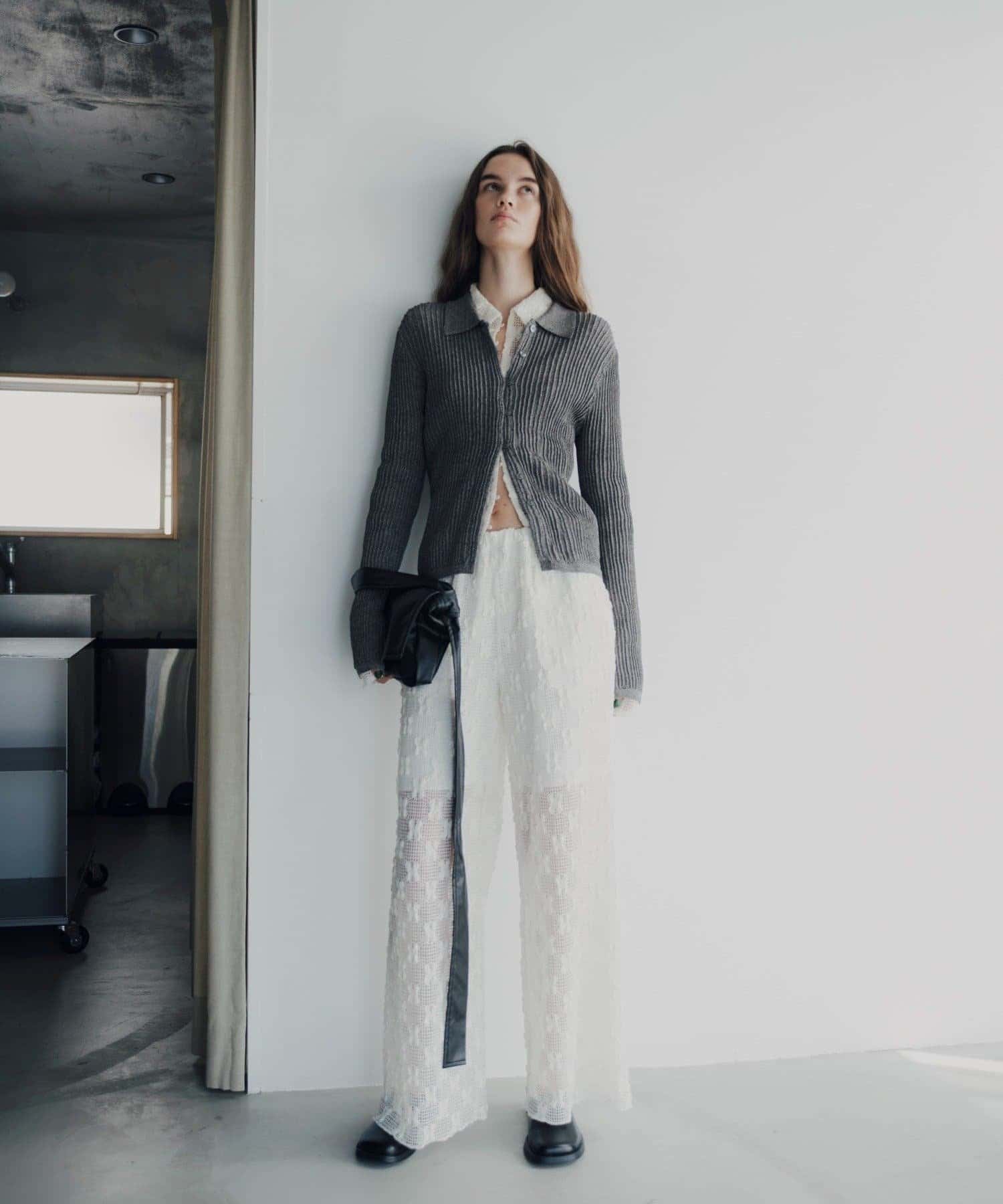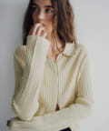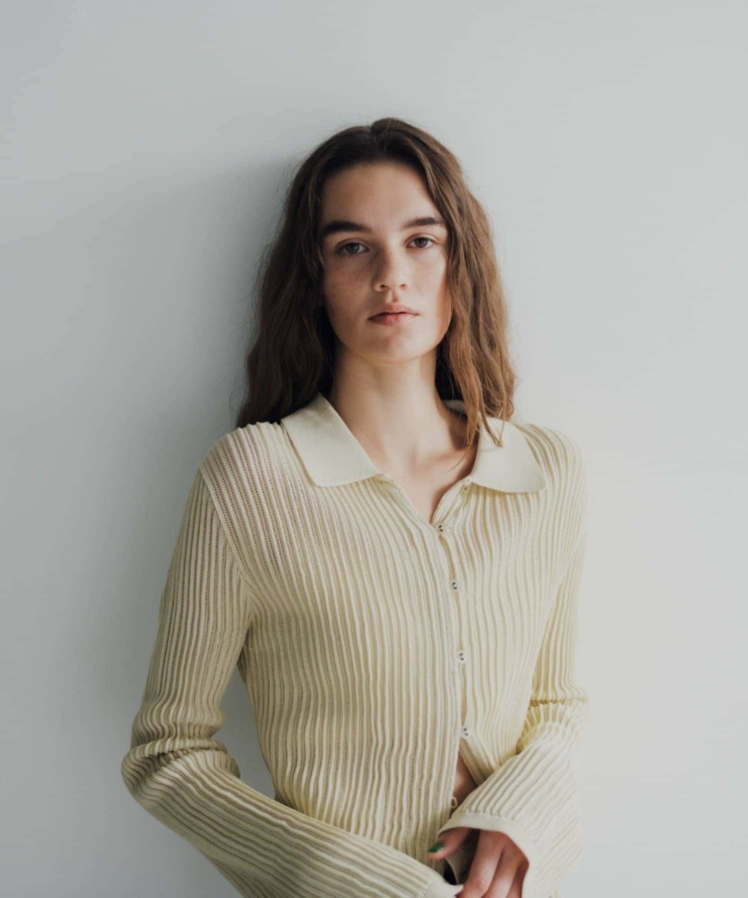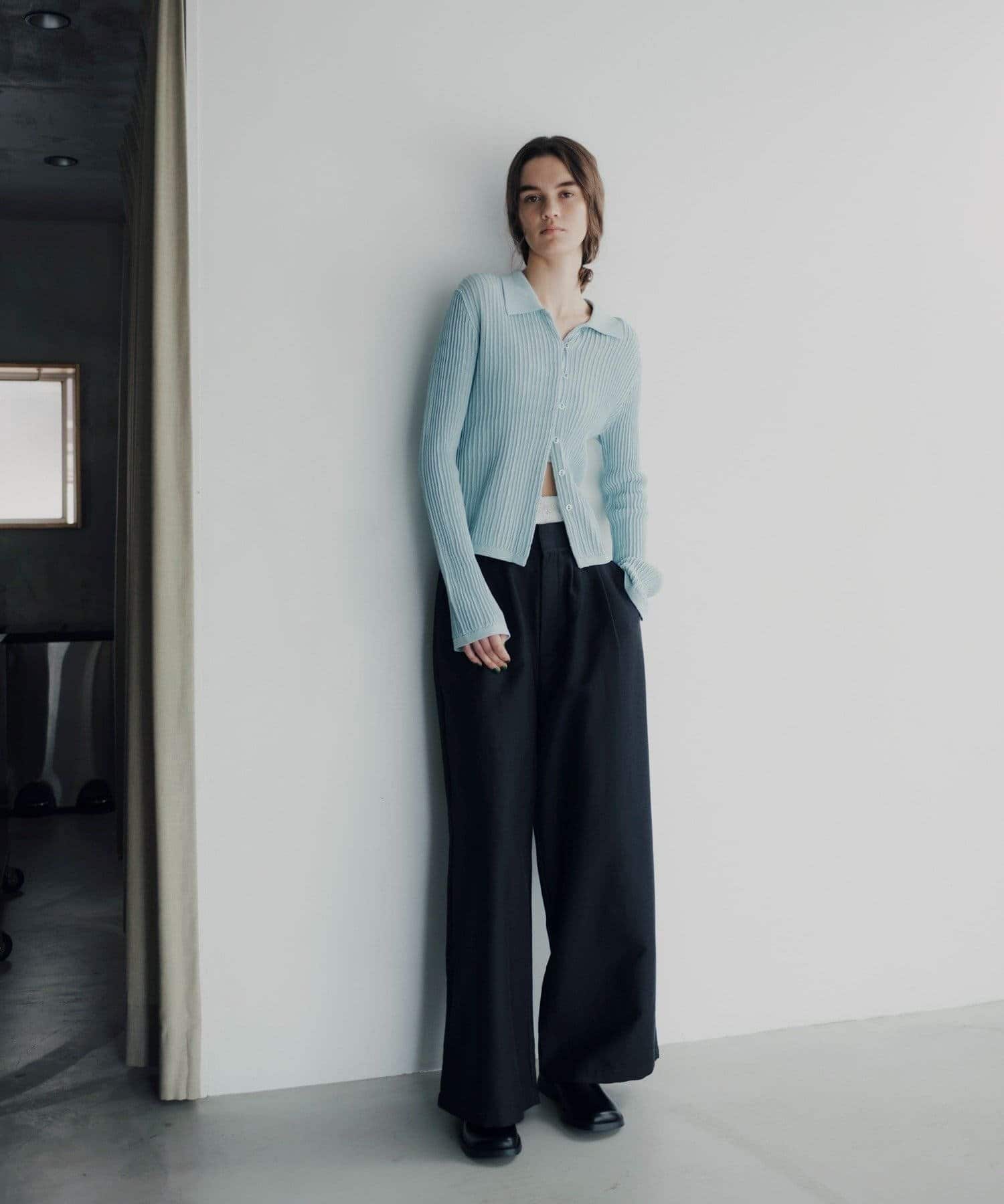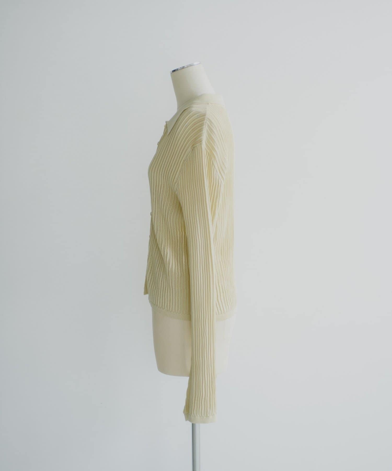 程良い透け感とシャリ味のある風合いが特徴の襟付きサマーニットカーディガン。凹凸感のあるリブの編地で、ボディラインが綺麗に補正される安心感のある1着です。通気性が良く、肌離れも良いので夏でも暑苦しくなく着用いただけます。特に襟物が気分な今シーズンは、1枚着はもちろん、ジャケットの中に着用したりインナーにレースものを重ねたり、さまざまなコーディネートで活躍する万能なアイテムです。