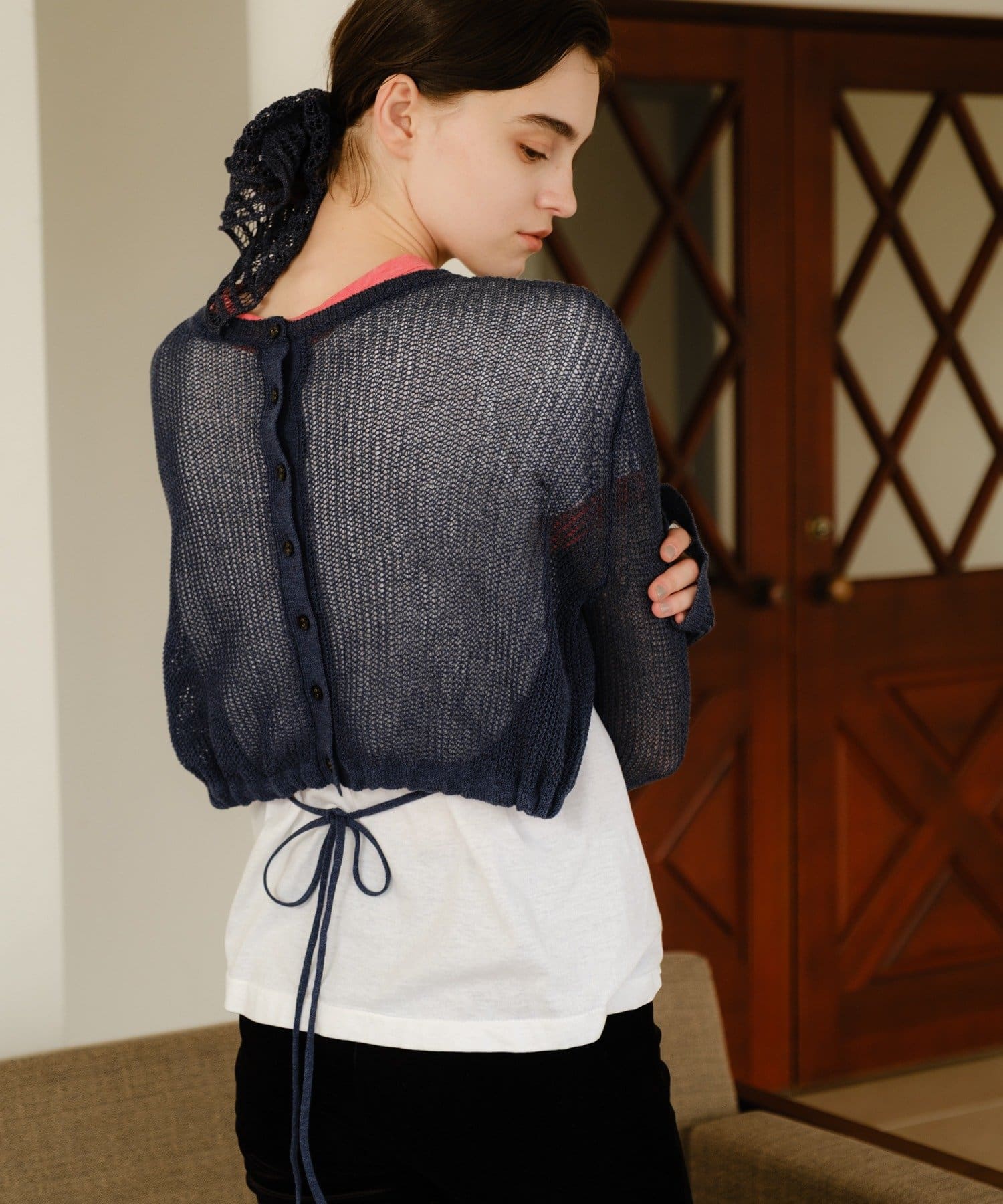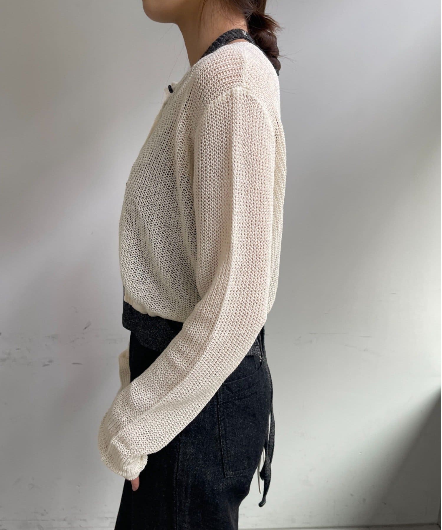 バックデザインペーパーメッシュカーディガン