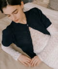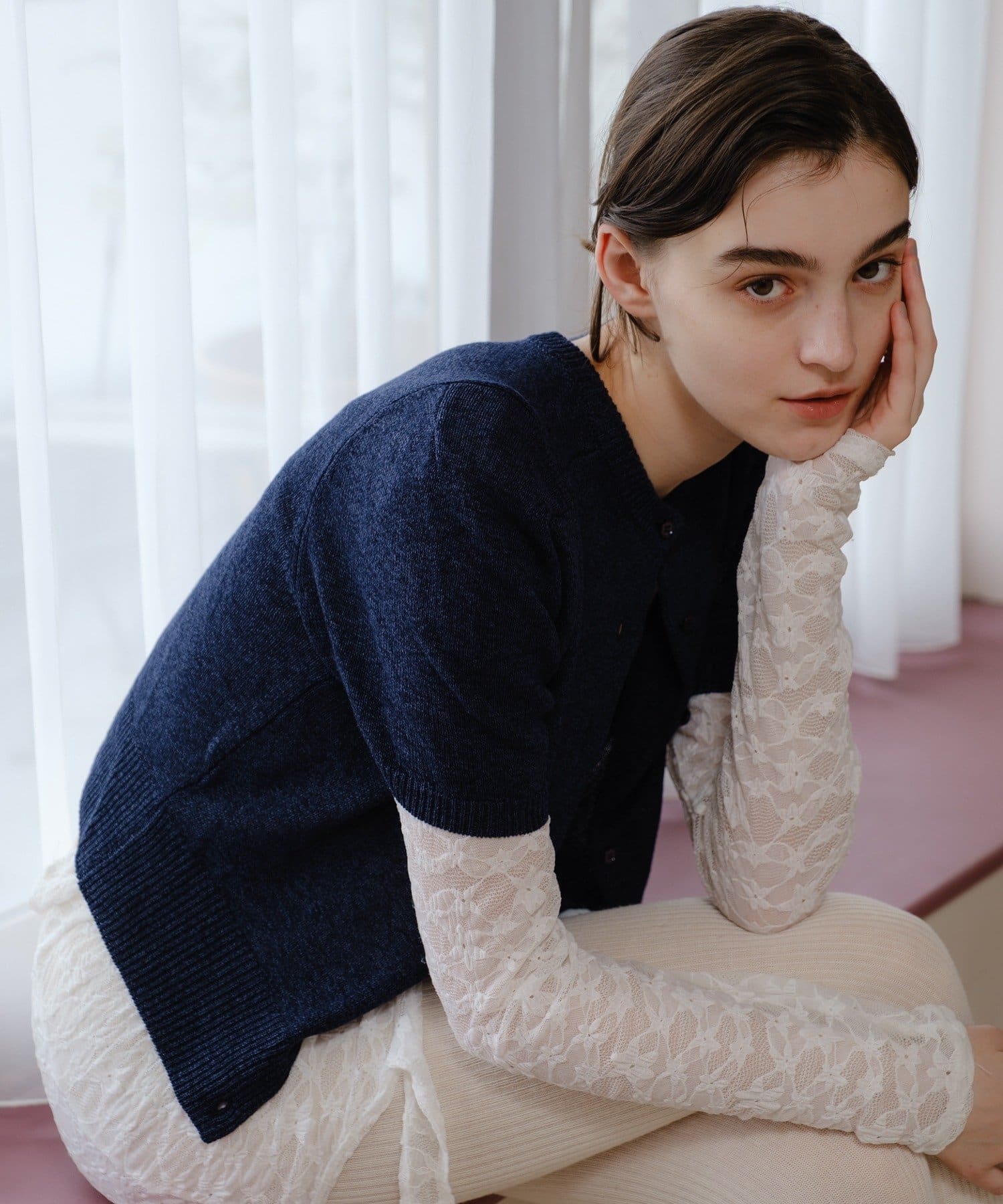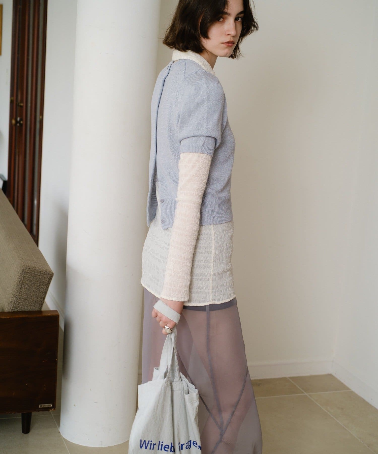 ボタン開きとプルオーバーの前後2WAY仕様。まだ肌寒い時期には、シャツや透け感のあるシアーインナーと重ねて着用するのがおすすめです。
