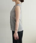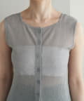 シャツ型はボタン開きで羽織にもできるデザイン。タンクトップはボタン面がスクエアネック、背面はクルーネックの2WAYで着用可能です。