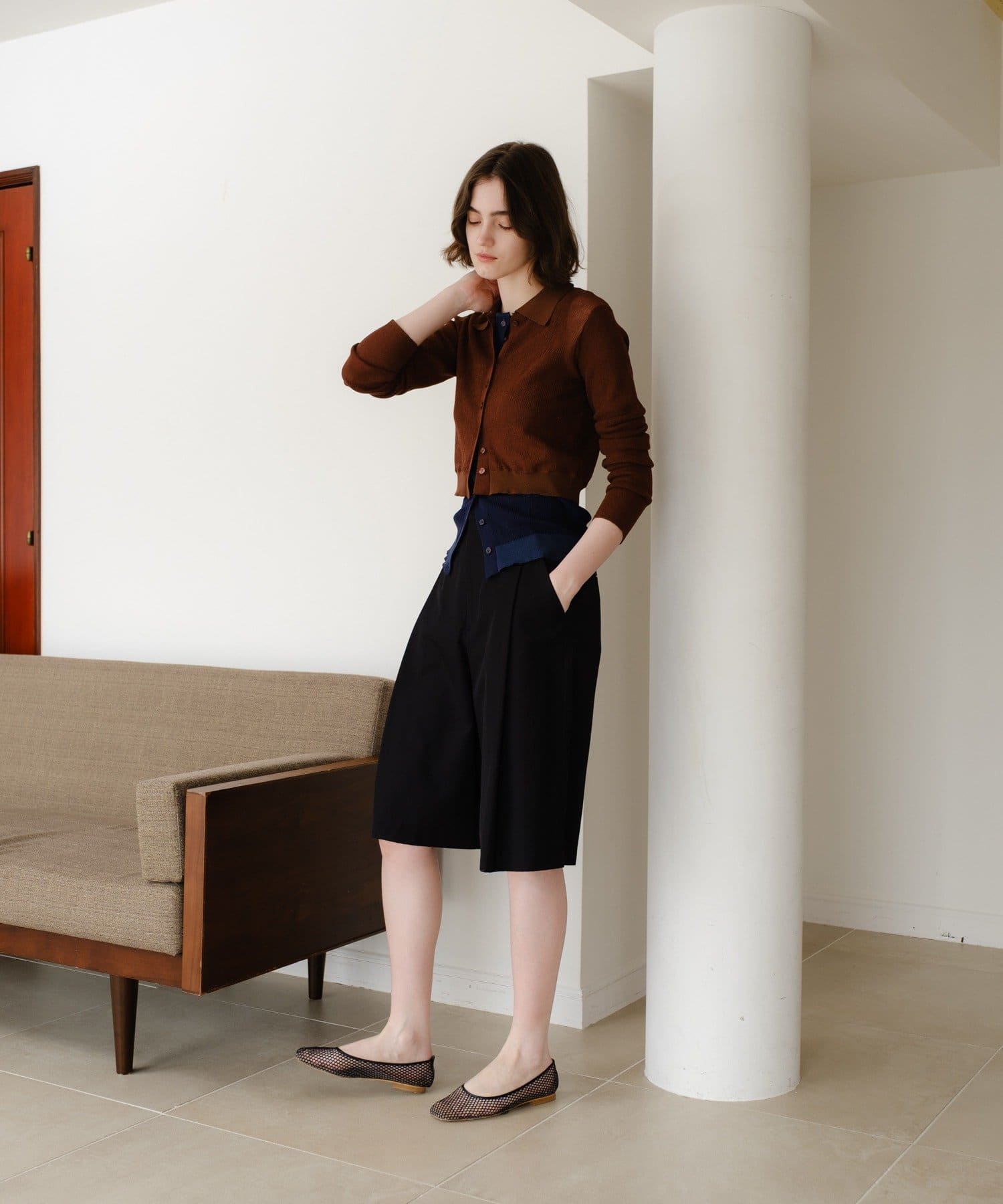 コンパクトなシルエットなので、ジャンスカのインナー使いやジャケットの中に着るのが今年らしくおすすめです。