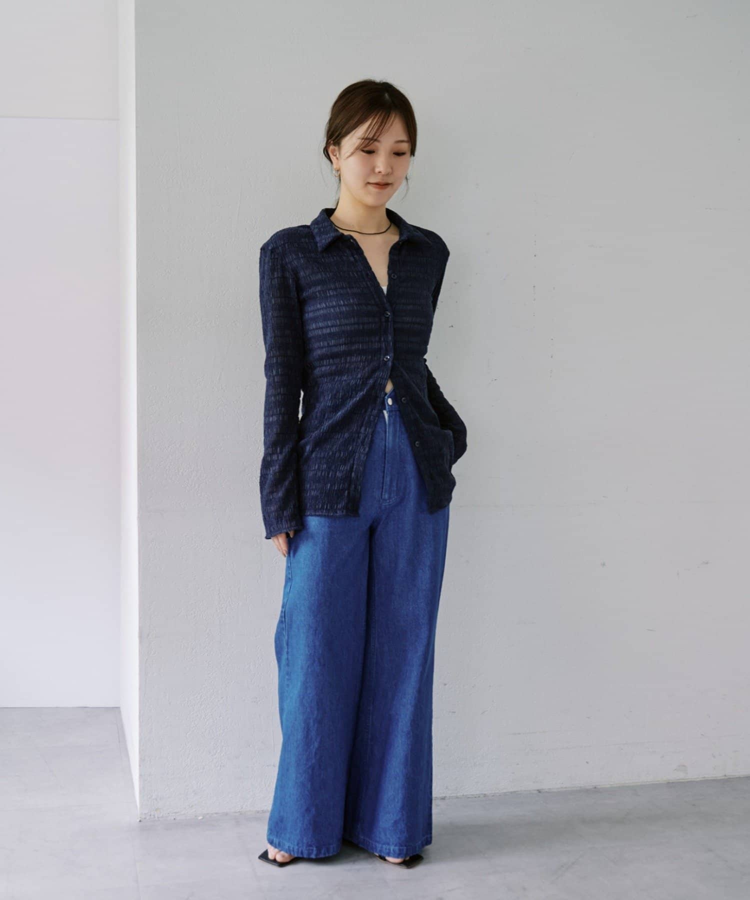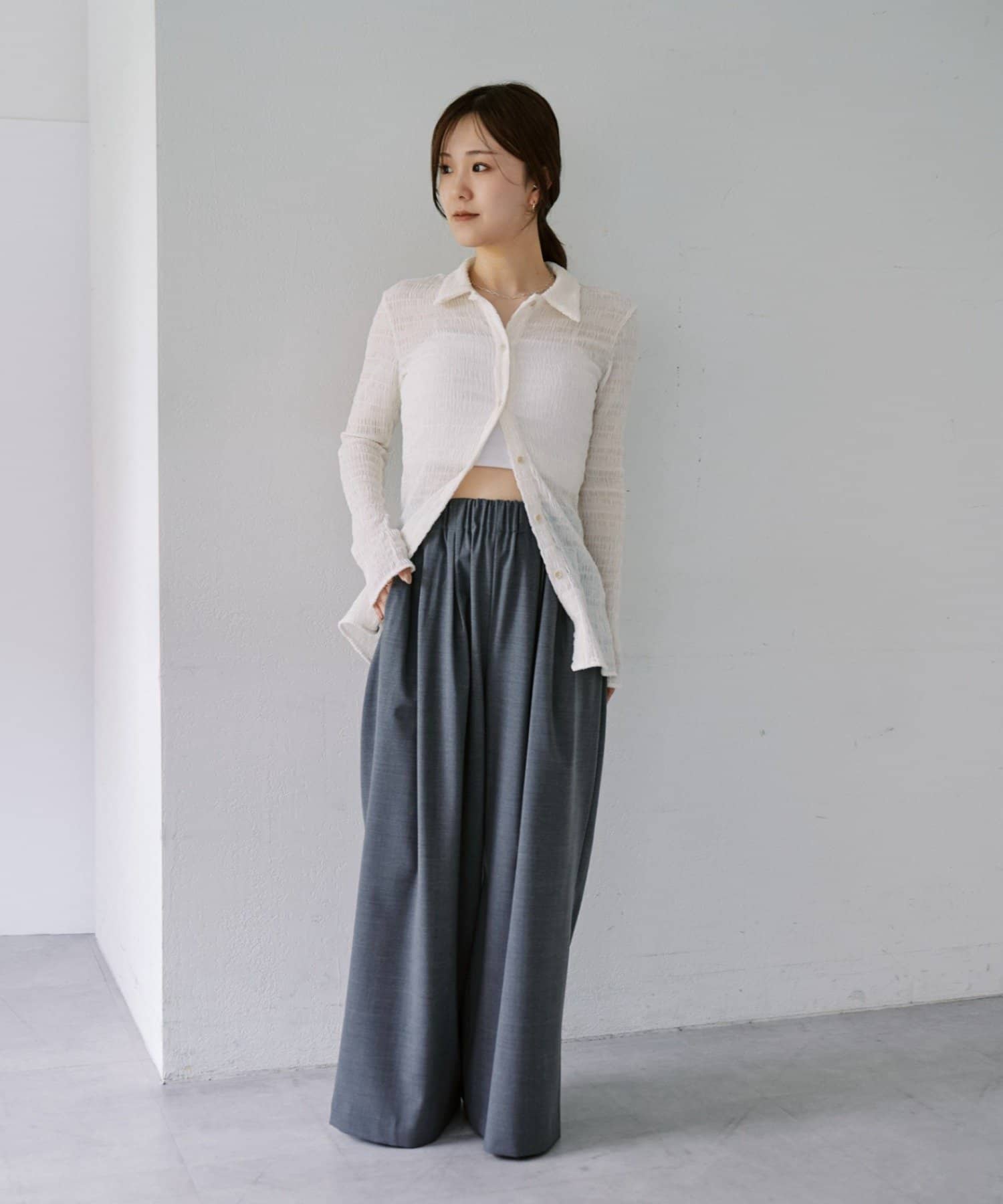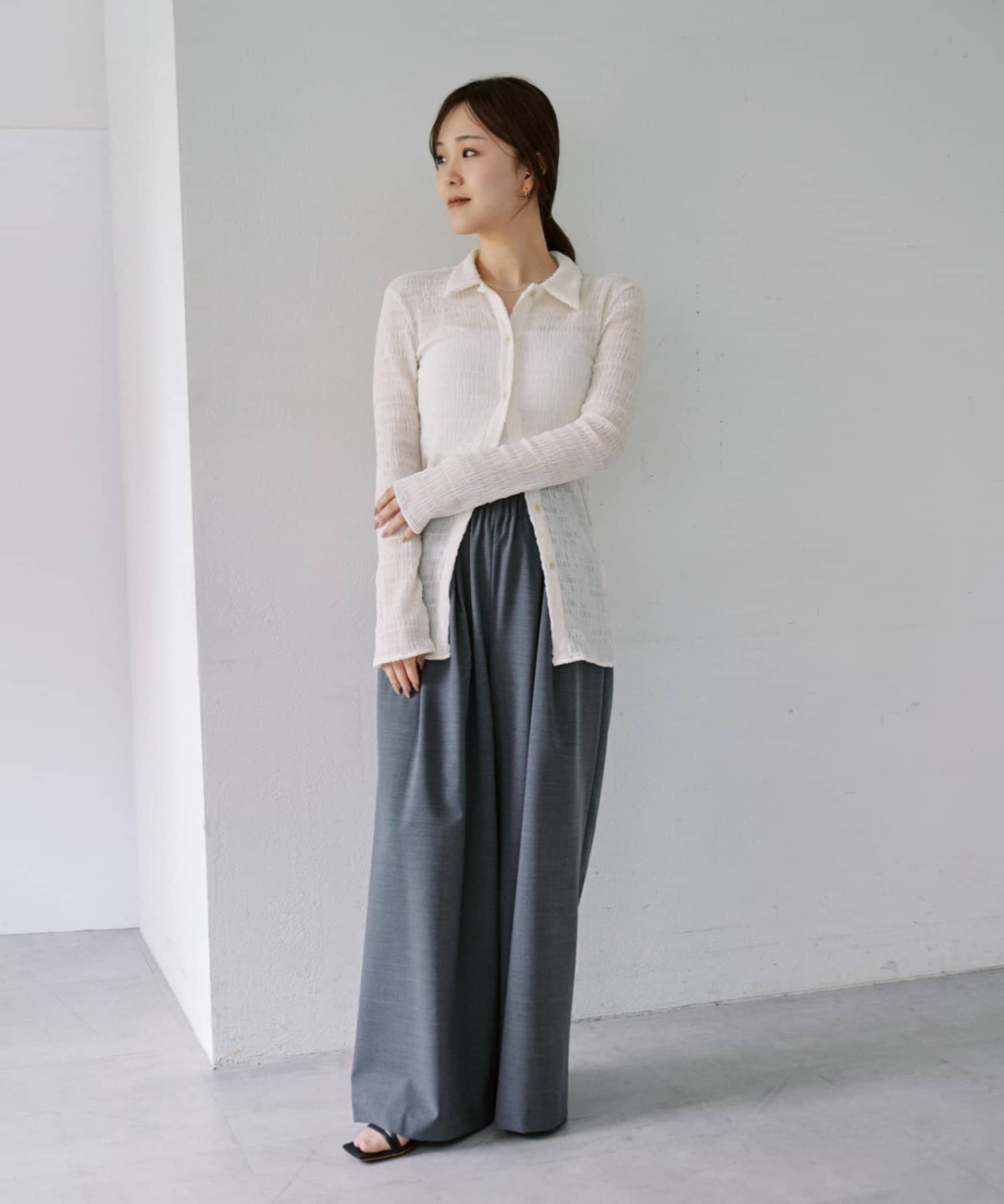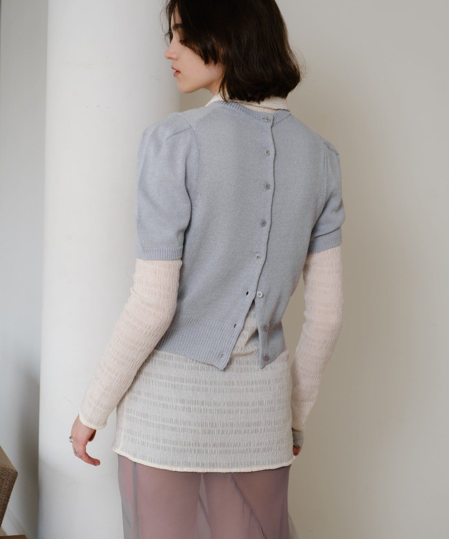 インナーにTシャツやブラトップを着て羽織にしたり、襟物同士の重ね着スタイルもおすすめです。また、半袖のサマーニットの中にレイヤードしても、今年らしく新鮮に着用いただけます。