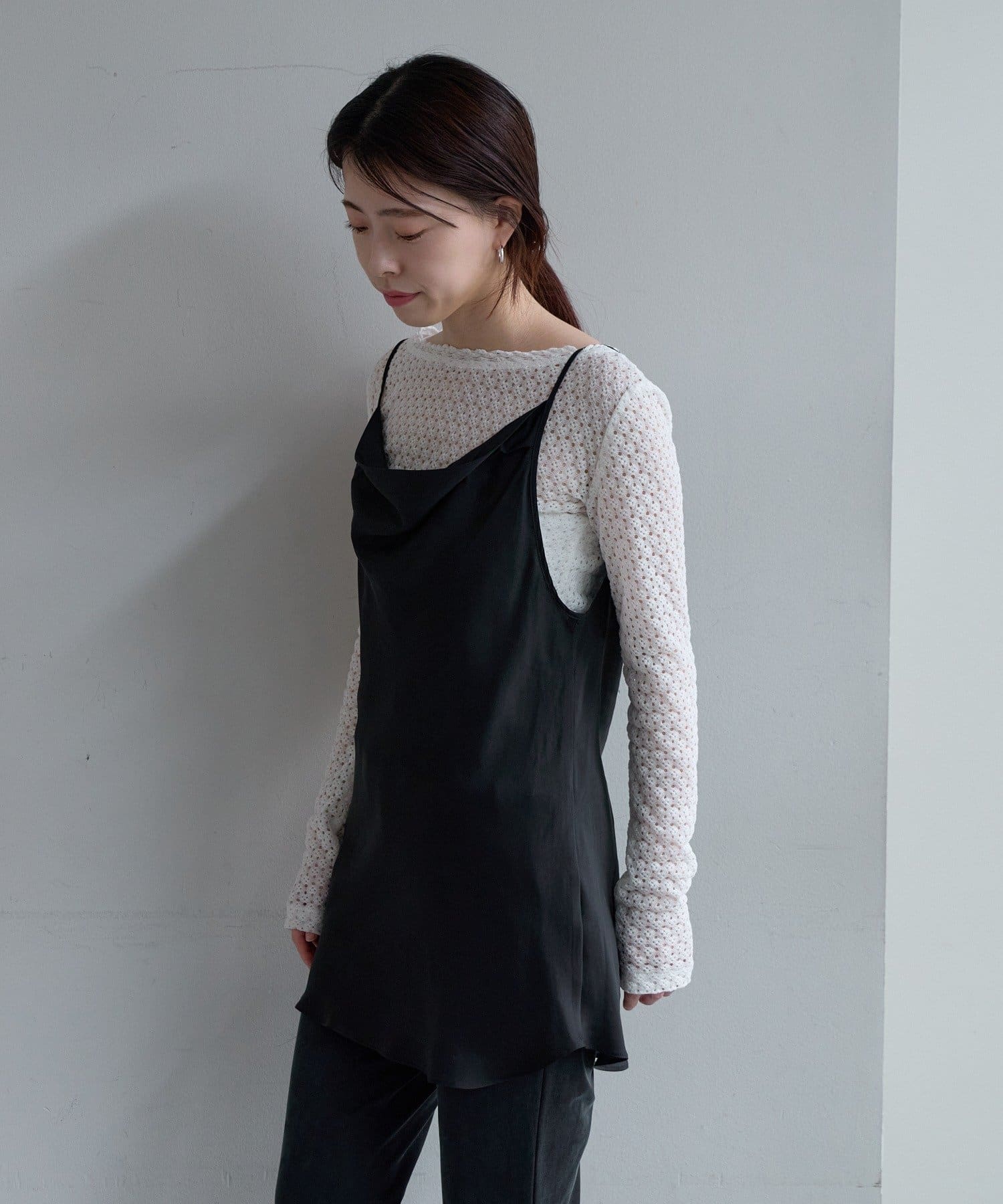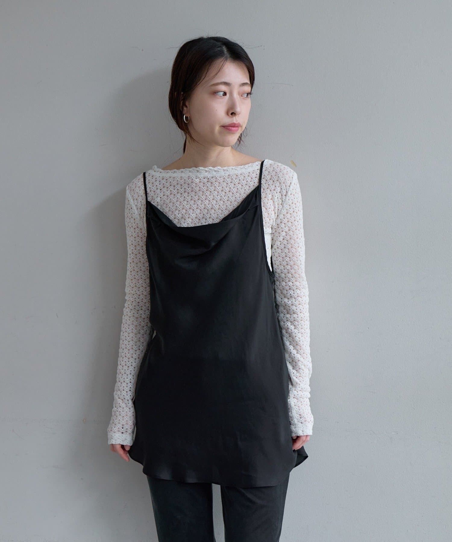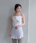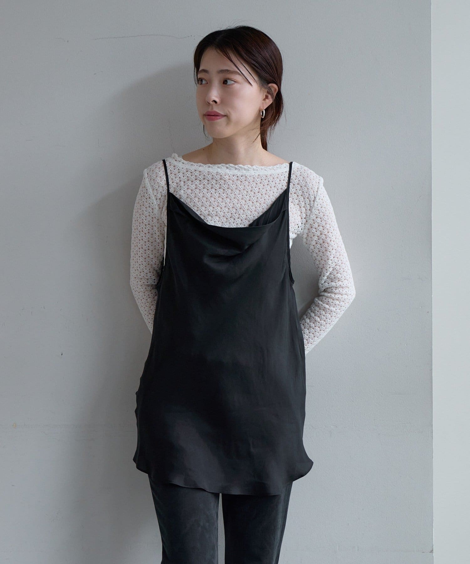 トップスのレイヤードが気分な今シーズン。リブインナーやTシャツに重ねて使える、ドレープデザインのキャミソールを作りました。とろみ感のある上質な国内生産のキュプラ生地を使用しており、子供っぽくなりがちなキャミソールアイテムですが、チープにならず上品な印象で着られるのが魅力です。肌触りも非常に滑らか。滑りが良くさらりとしているため、夏も暑苦しさ無く着用いただけます。