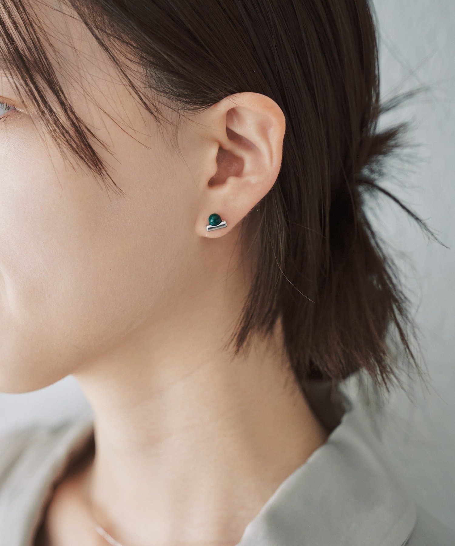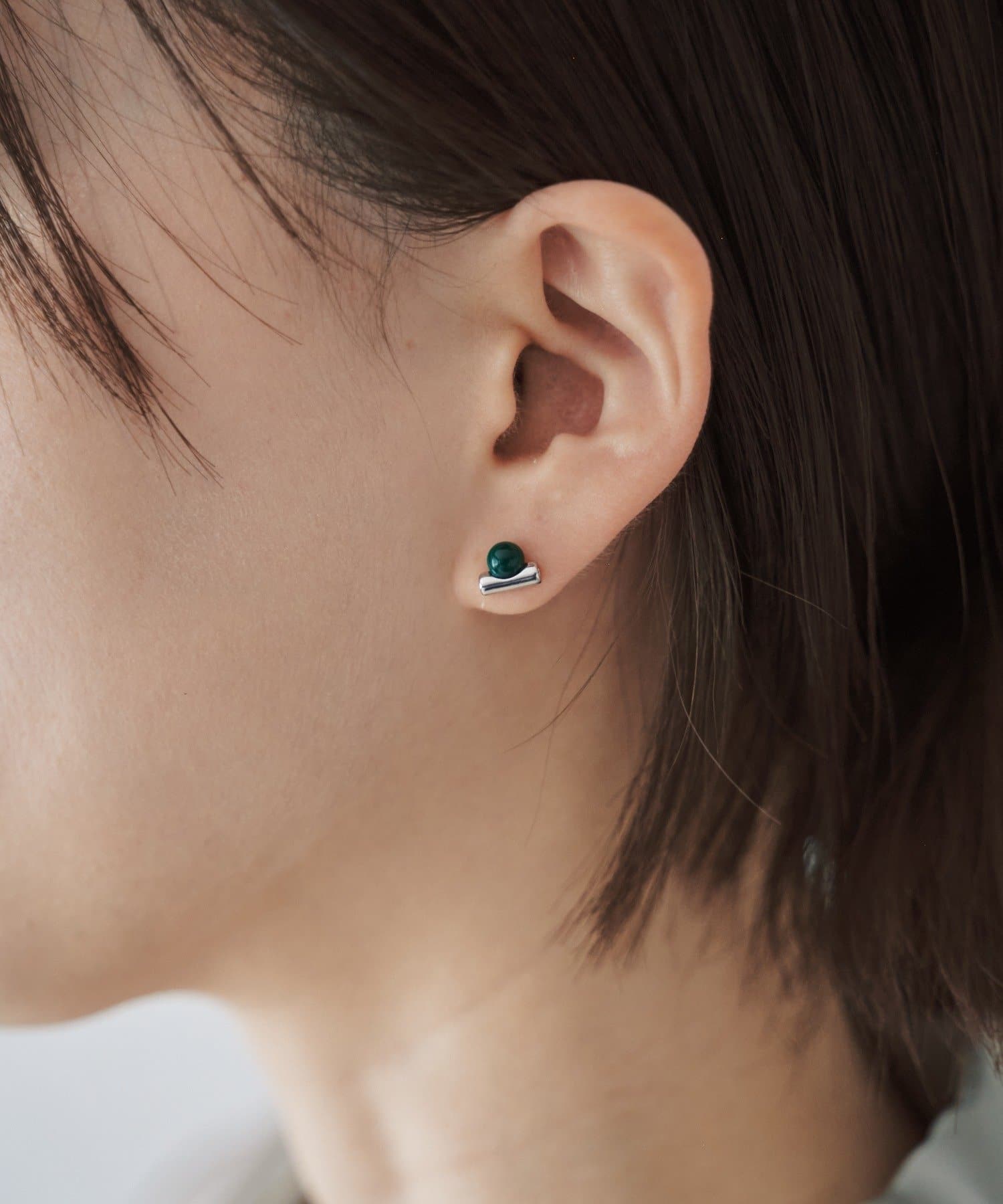 小さなカラーアクセントが印象的なミニマルピアス。