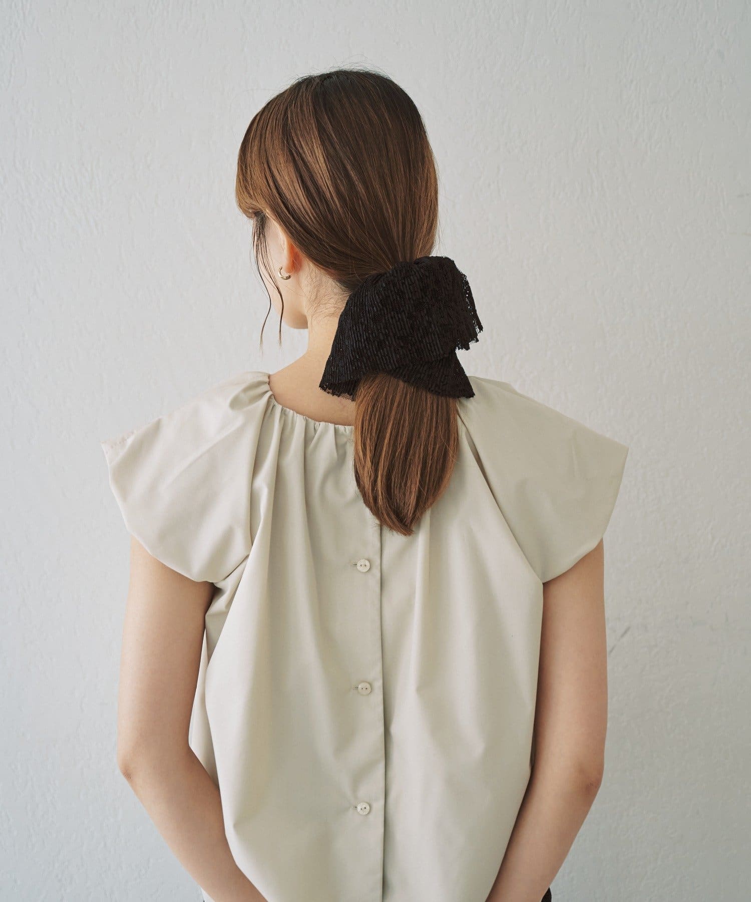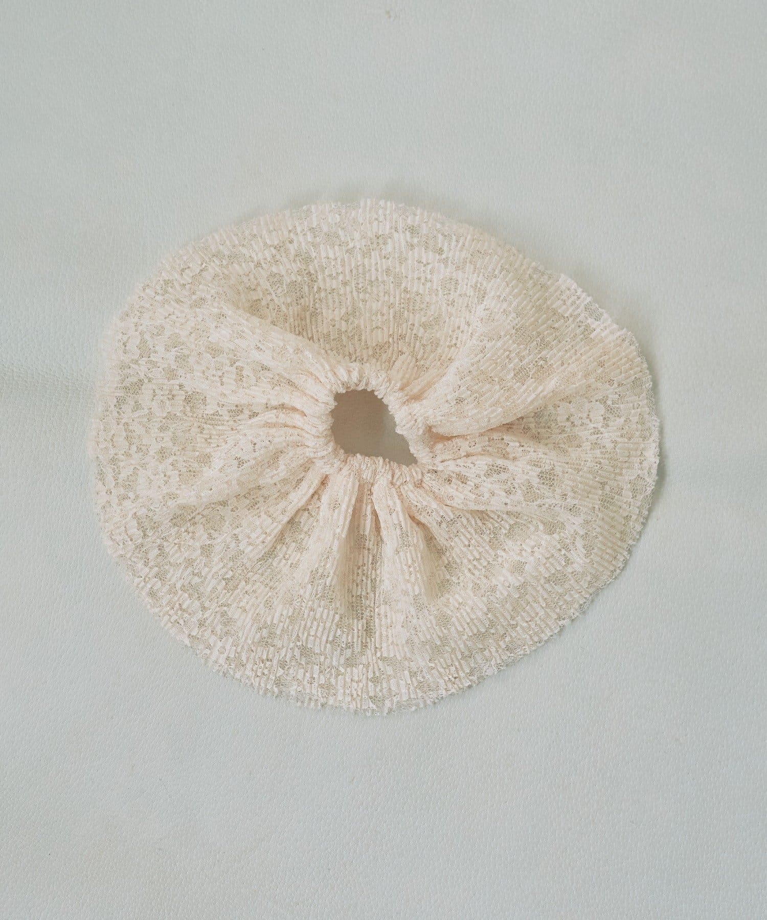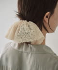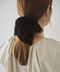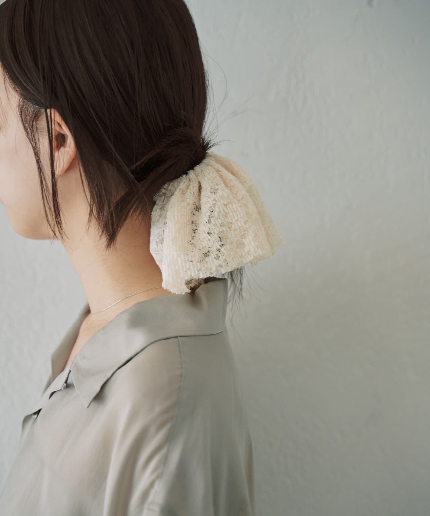 繊細なシアーの総レース生地で仕立てた、存在感のあるビッグシュシュ。着用すると、立体感のあるレース生地が結び目に覆いかぶさるようにやわらかく広がり、シンプルなヘアスタイルに自然なニュアンスがプラスされます。甘さ控え目で、洗練された大人の雰囲気を演出してくれる可愛すぎないデザインが魅力です。