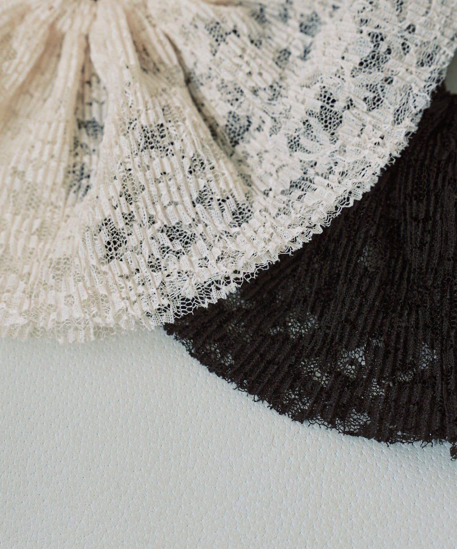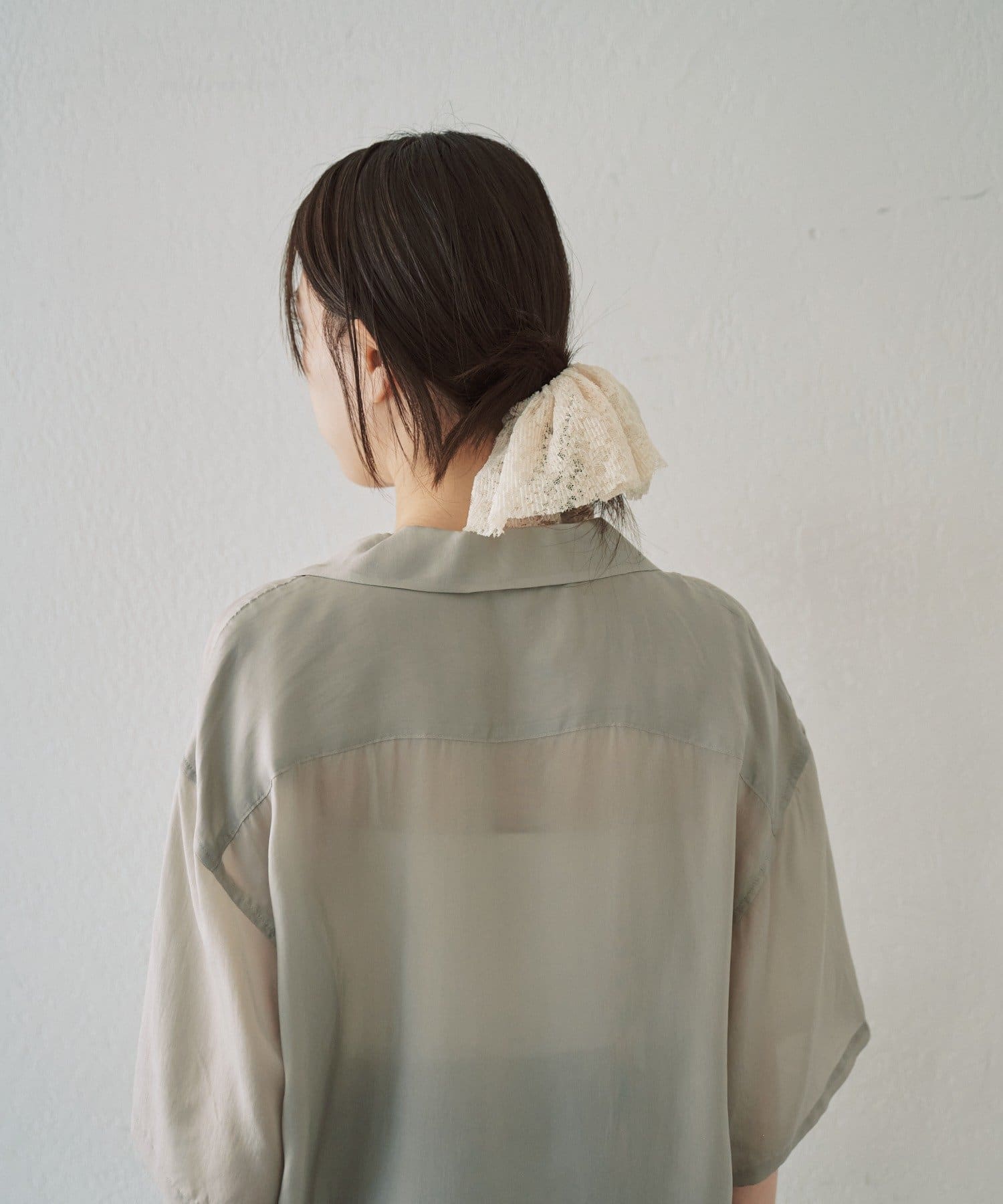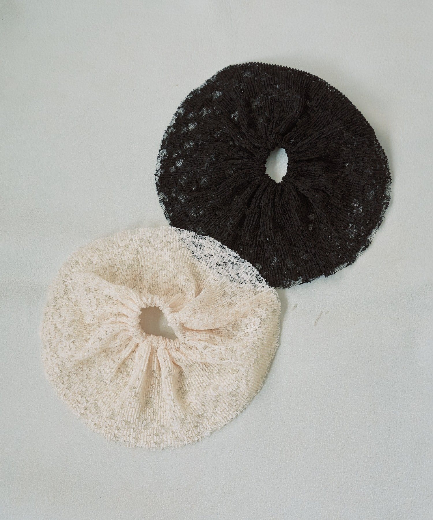 繊細なシアーの総レース生地で仕立てた、存在感のあるビッグシュシュ。着用すると、立体感のあるレース生地が結び目に覆いかぶさるようにやわらかく広がり、シンプルなヘアスタイルに自然なニュアンスがプラスされます。甘さ控え目で、洗練された大人の雰囲気を演出してくれる可愛すぎないデザインが魅力です。