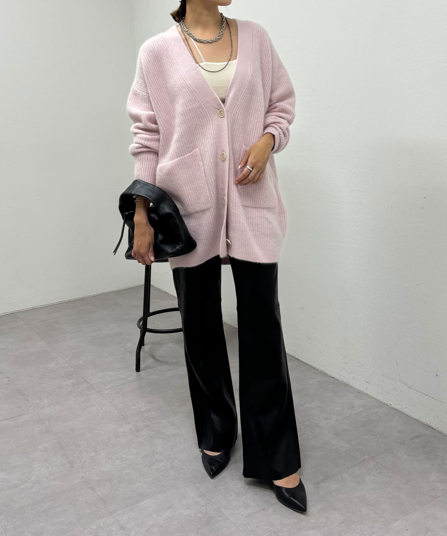 ブラックのレザーなので、ゴツくなるかと思いましたが、はくと以外とエレガントに着こなせます。裾が広がっているので脚長効果もあります。そして暖かい。