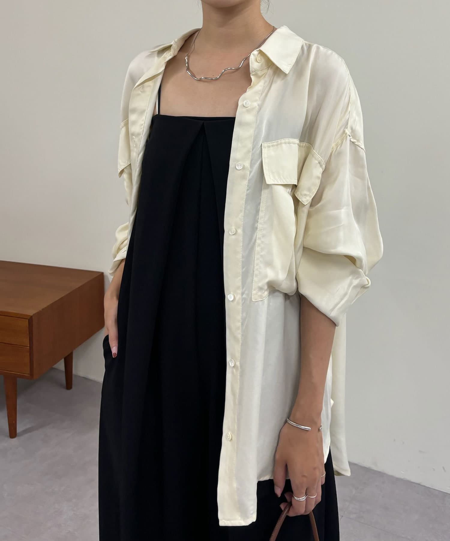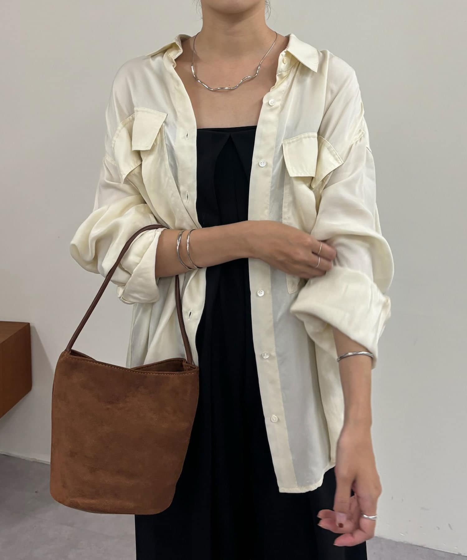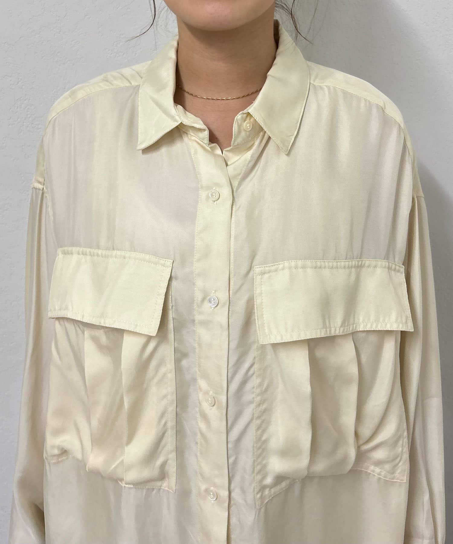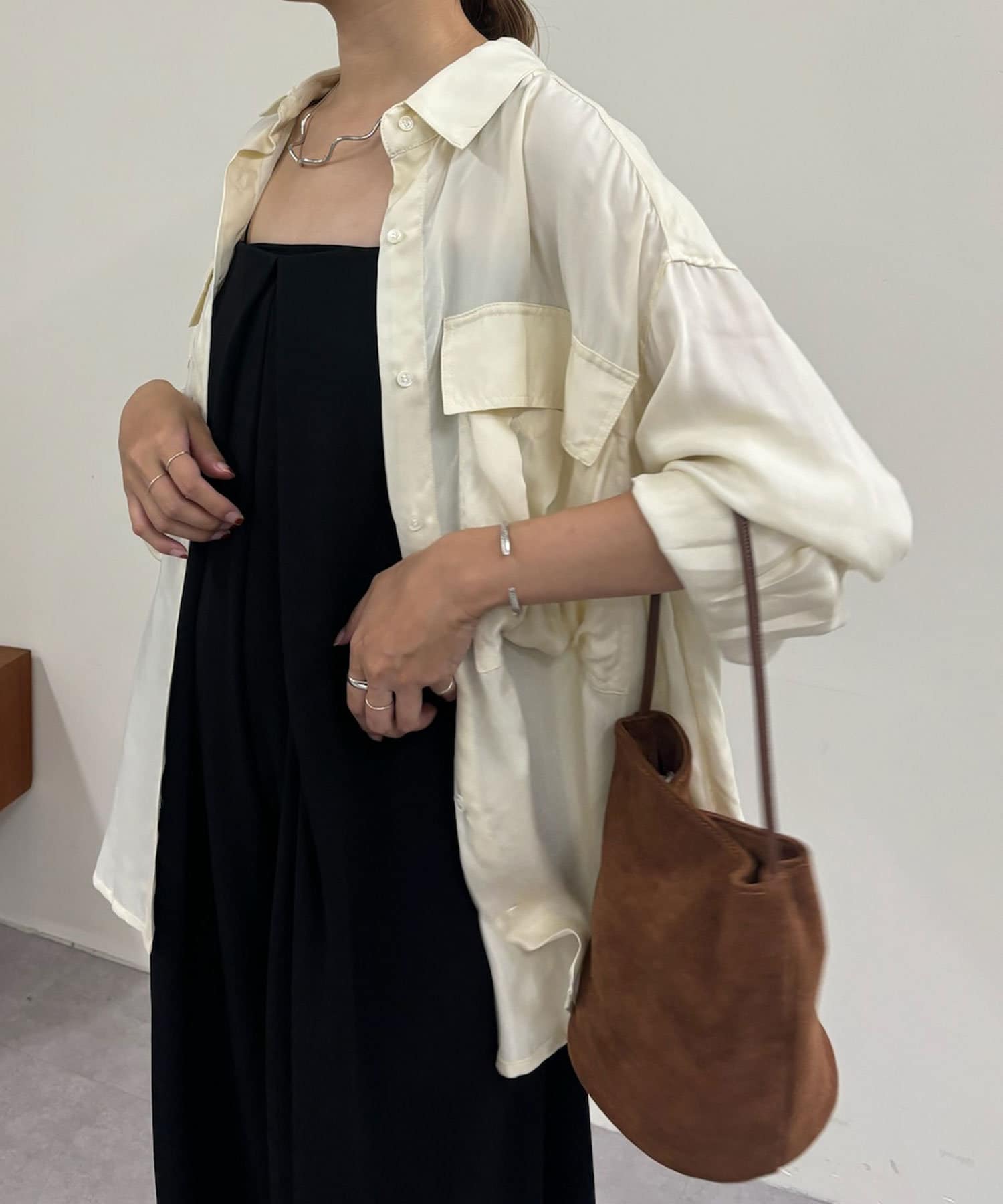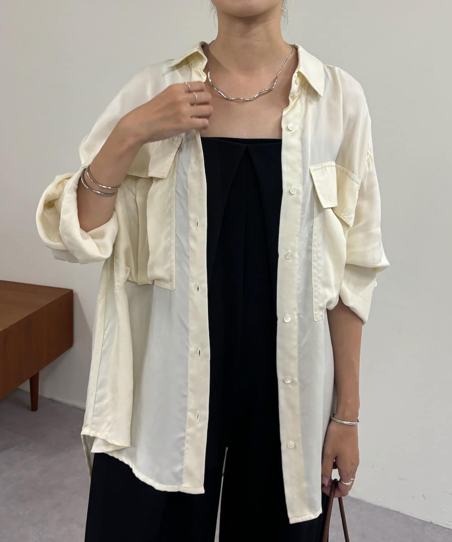 シルクのようなやわらかなニュアンス感のオーバーシャツ