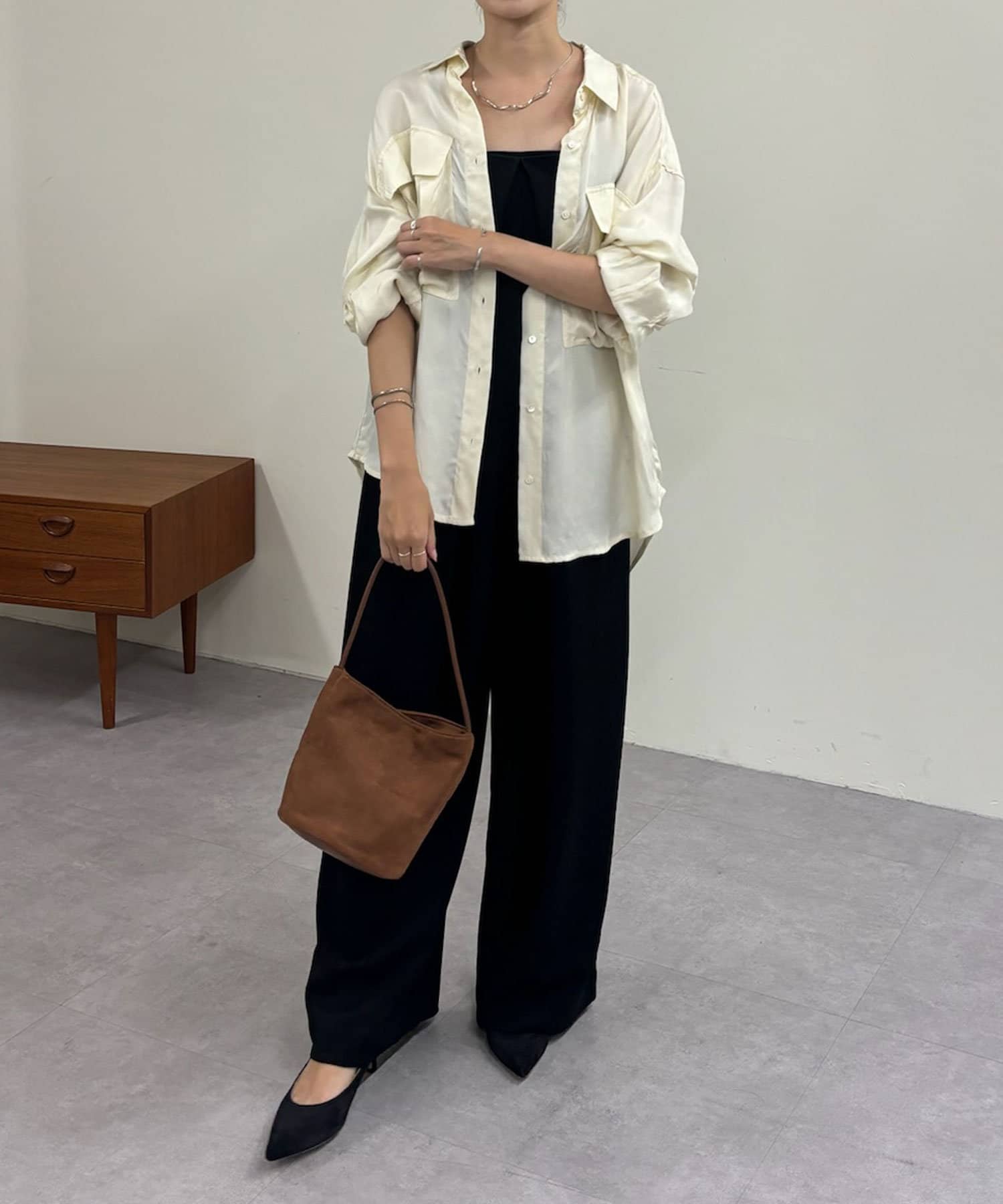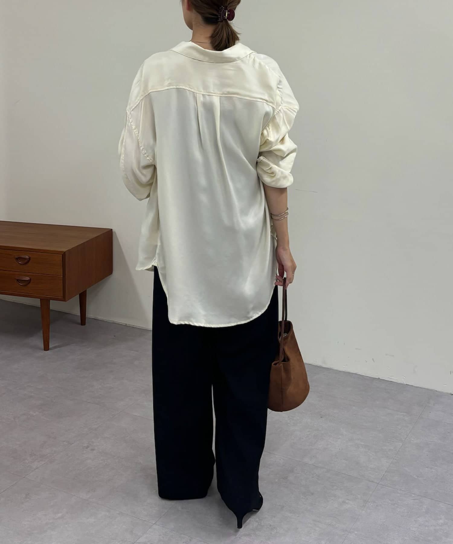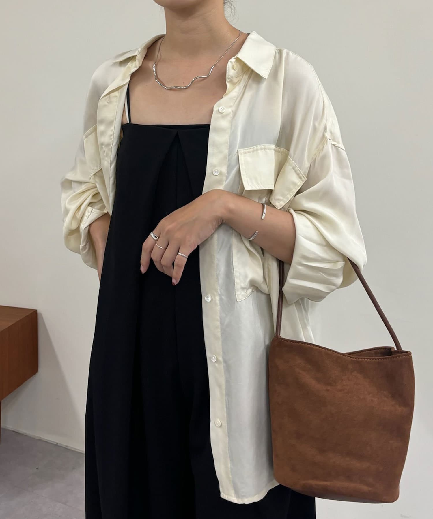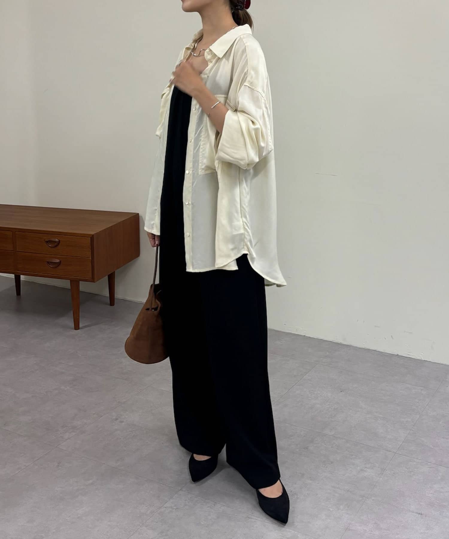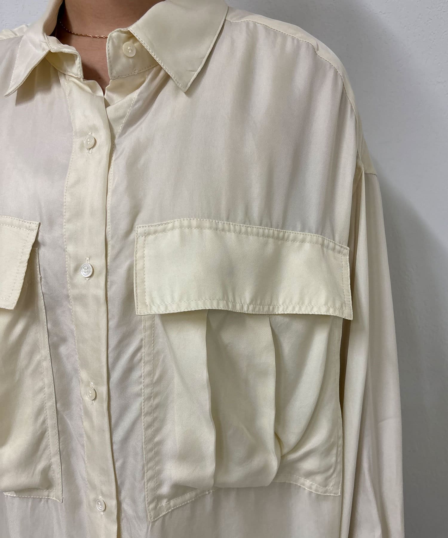 シルクのようなやわらかなニュアンス感のオーバーシャツ
