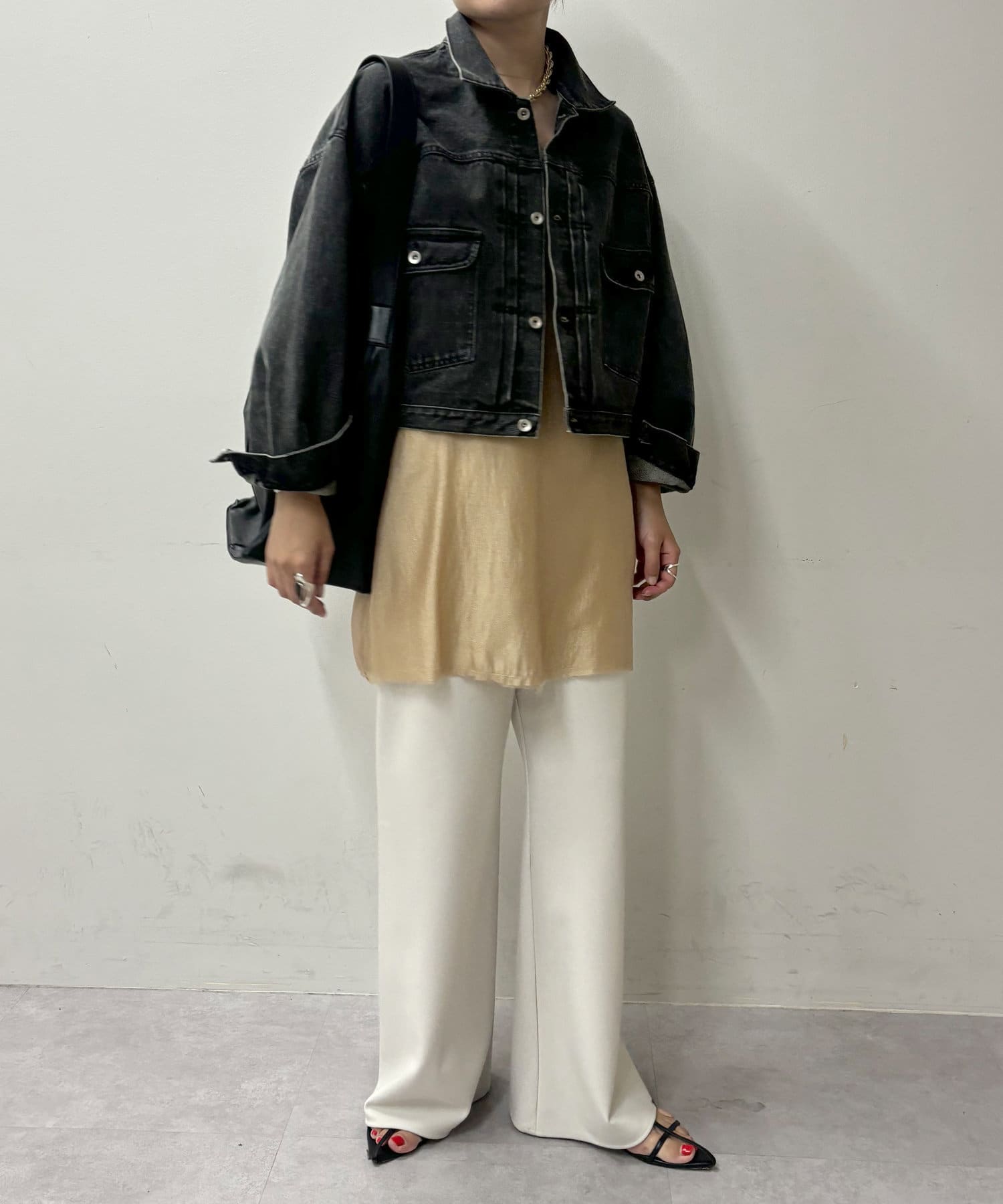 合わせるボトムも選ばす、テーラードジャケットやコートの中に合わせるのもおすすめです。