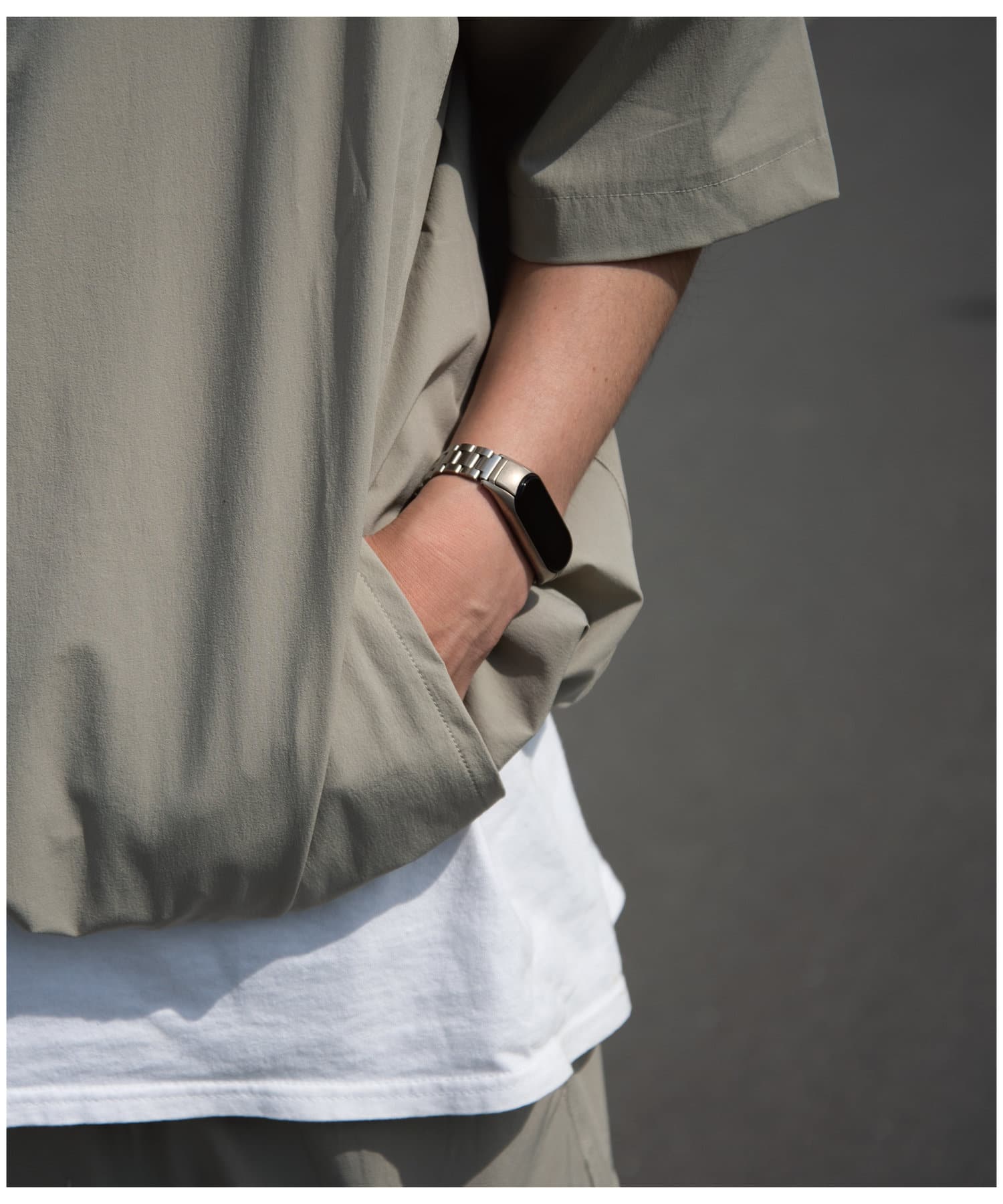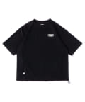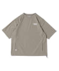 通気性の高いベンチレーションをバックに配置したストレッチ素材のクルーネック半袖プルオーバー。