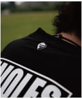 バックスタイルと左胸ににラバープリントでロゴを配置。