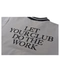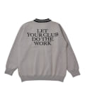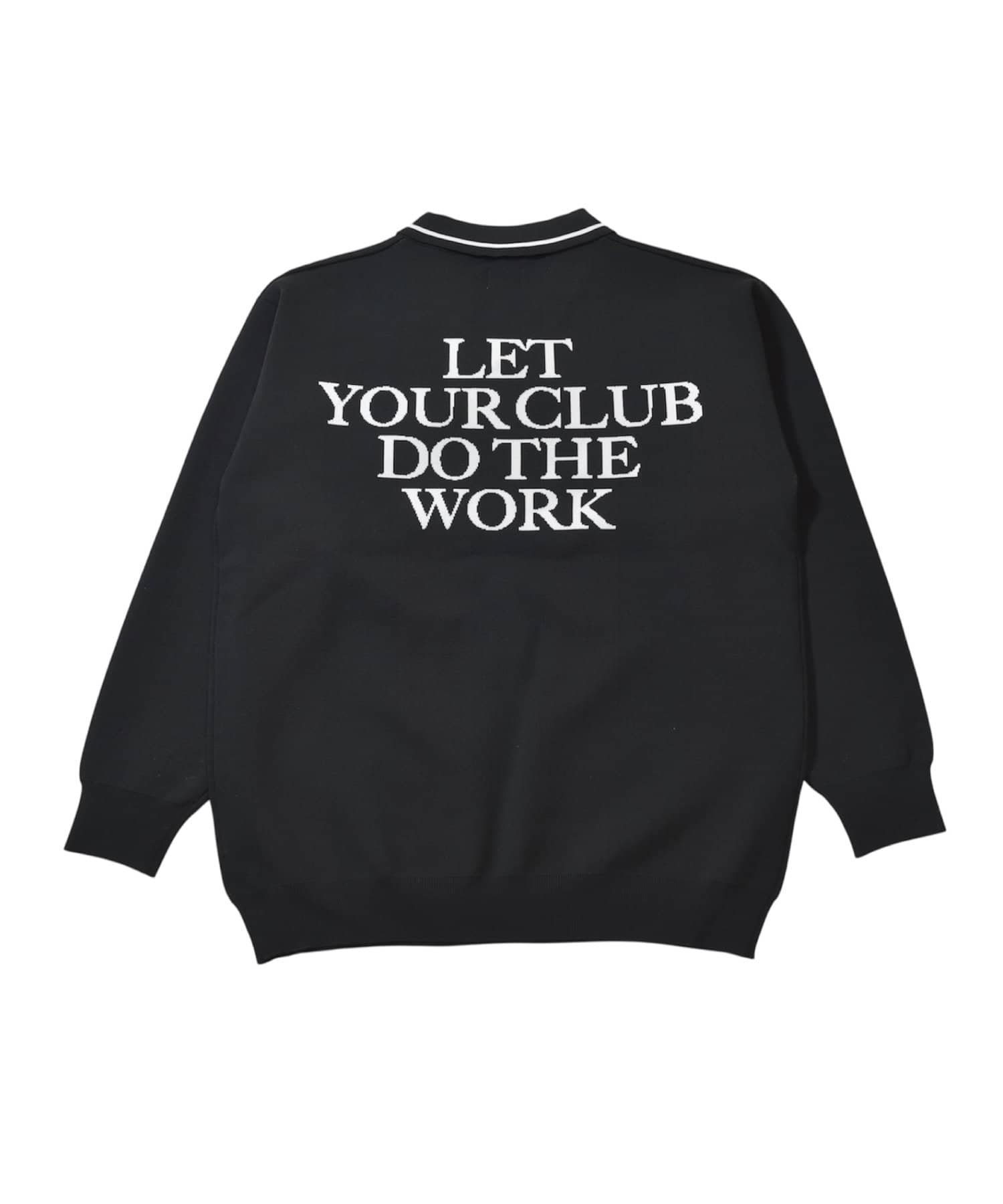 バックスタイルにジャガードでメッセージを表現したサッカーシャツをデザインに落とし込んだジャガードニット。