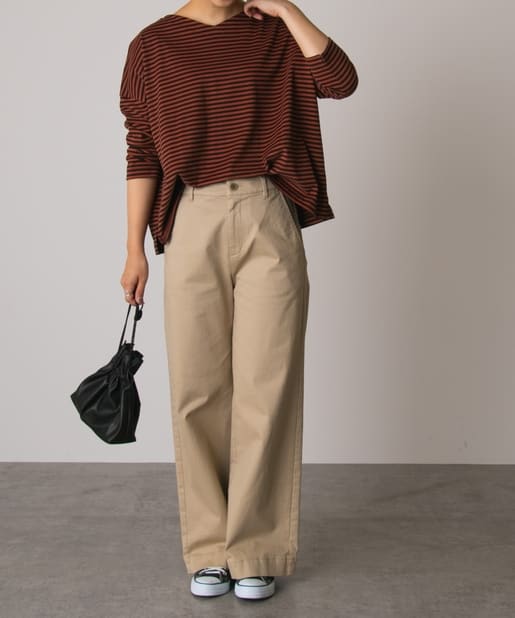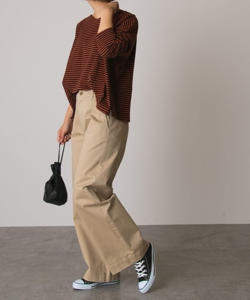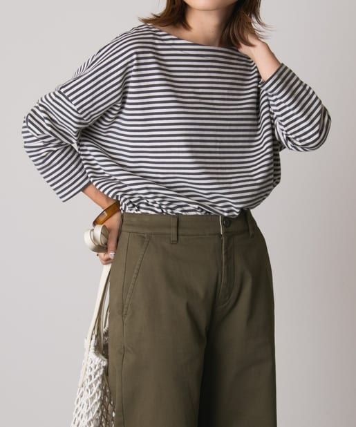 オリジナルライン『Daily Premium / デイリープレミアム』より定番人気のボーダーTeeが登場しました。柔らかな綿100%素材は着心地が良く、気兼ねなく着られるのでデイリー使いにぴったり。前後どちらでも着用可能なので、UとVネックの両方を楽しめるのも嬉しいポイントです。秋らしいシックな配色は定番のデニムやチノパンと合わせるだけで大人なカジュアルコーデが完成します。