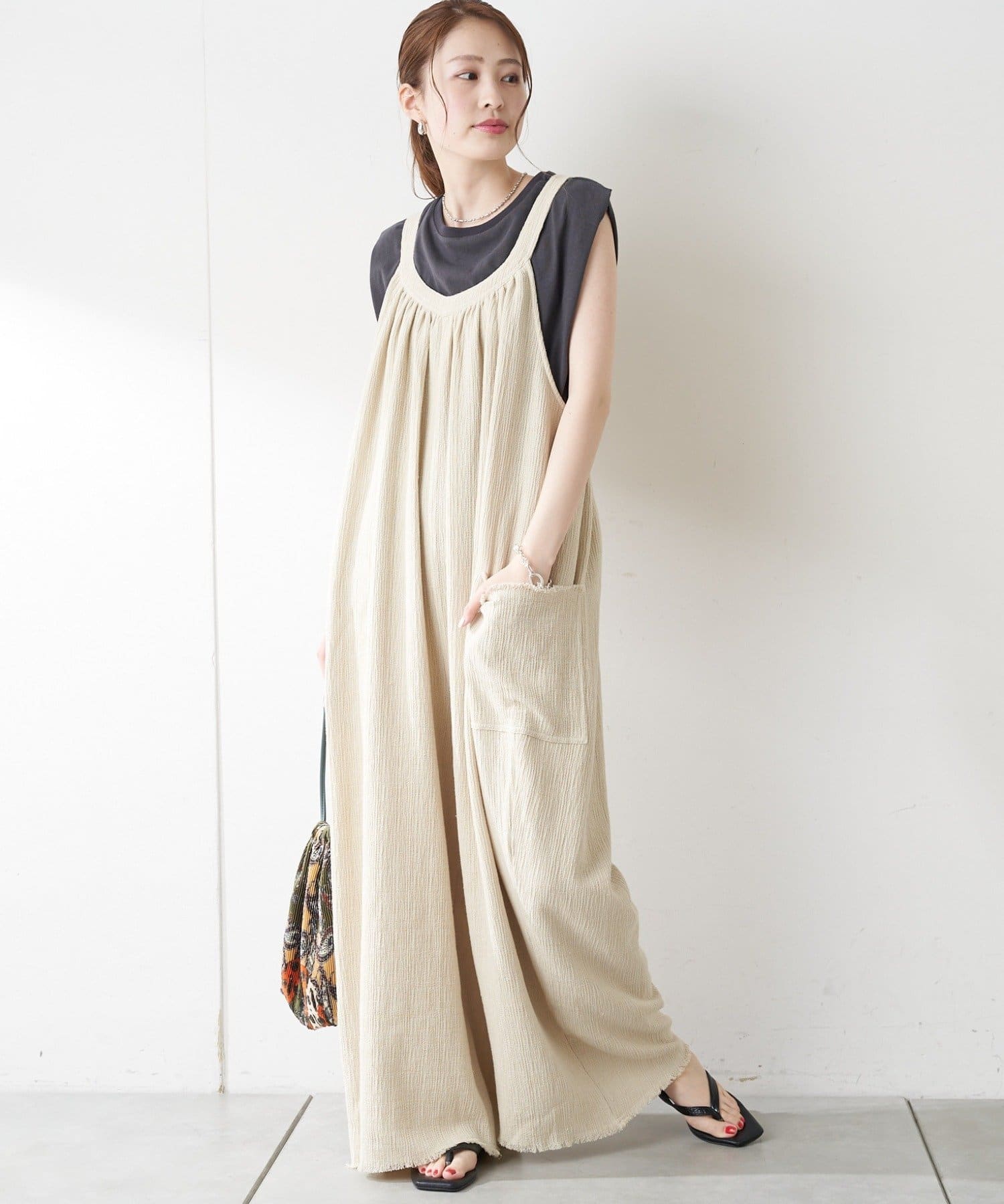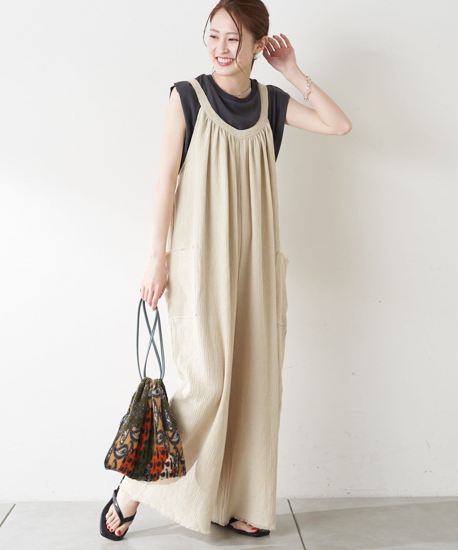【CIAOPANIC TYPY】からみ織りイージーワイドサロペット