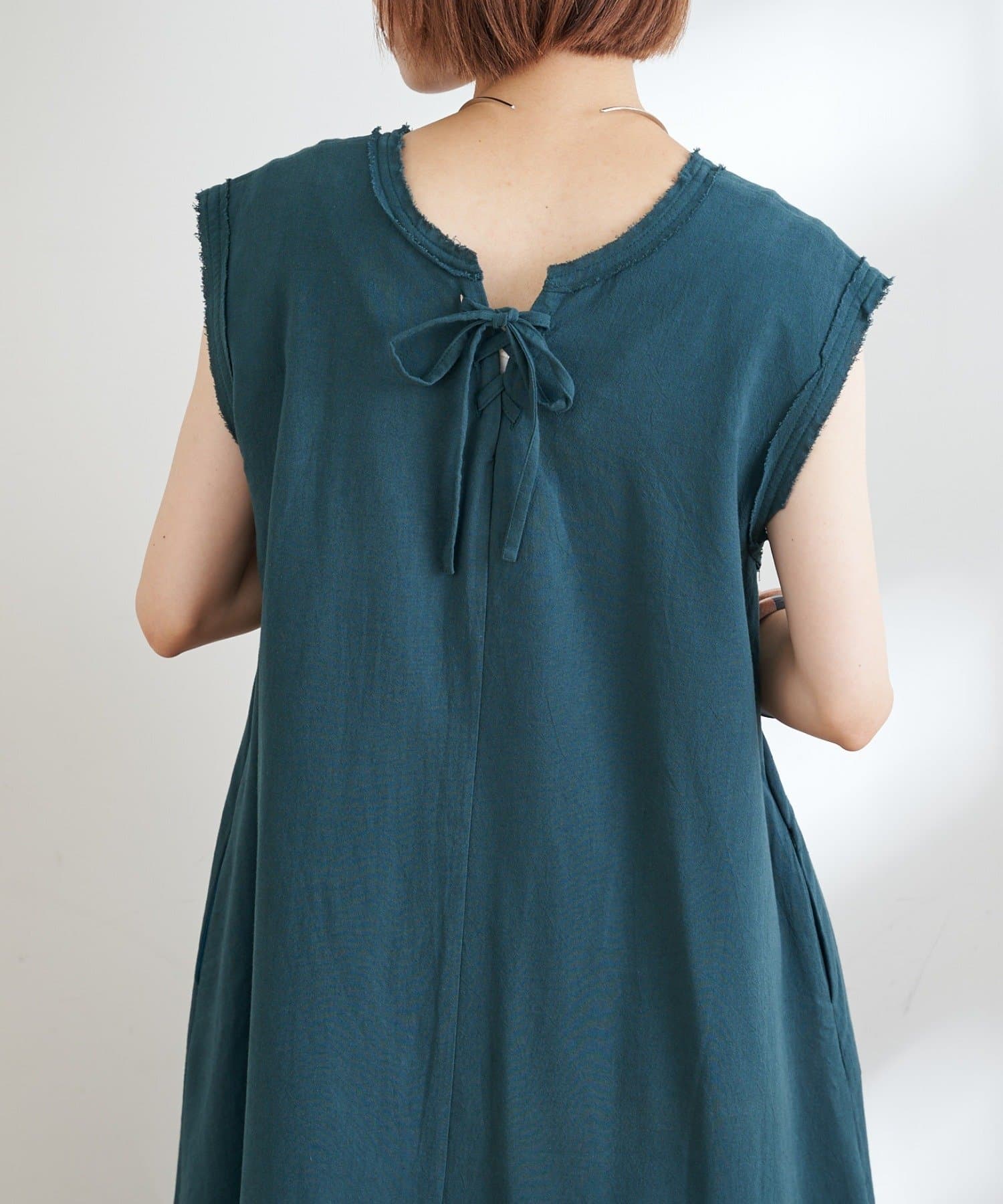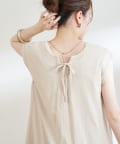 Vネック&バックリボンのデザインで上品ながら可愛らしい印象に。