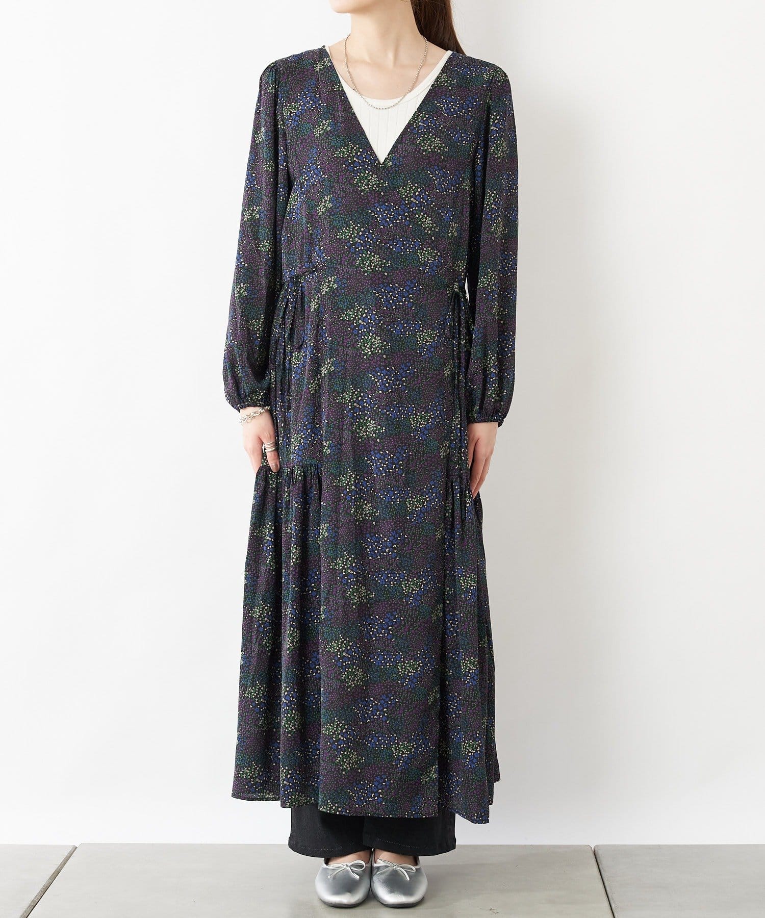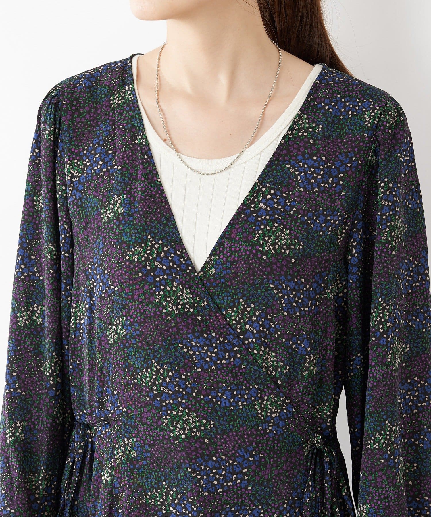 ビンテージ感のある小花柄が魅力のカシュクールワンピース。