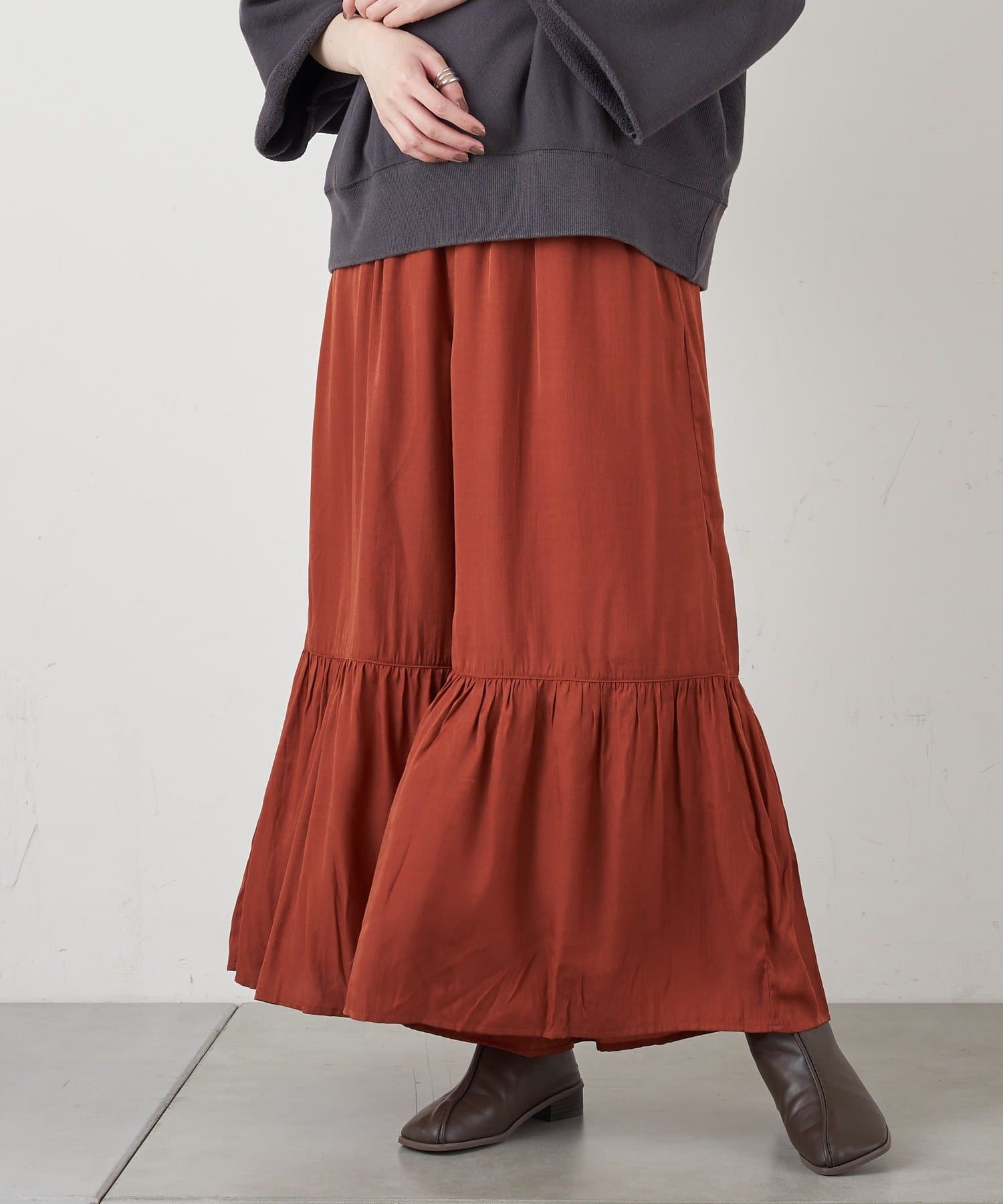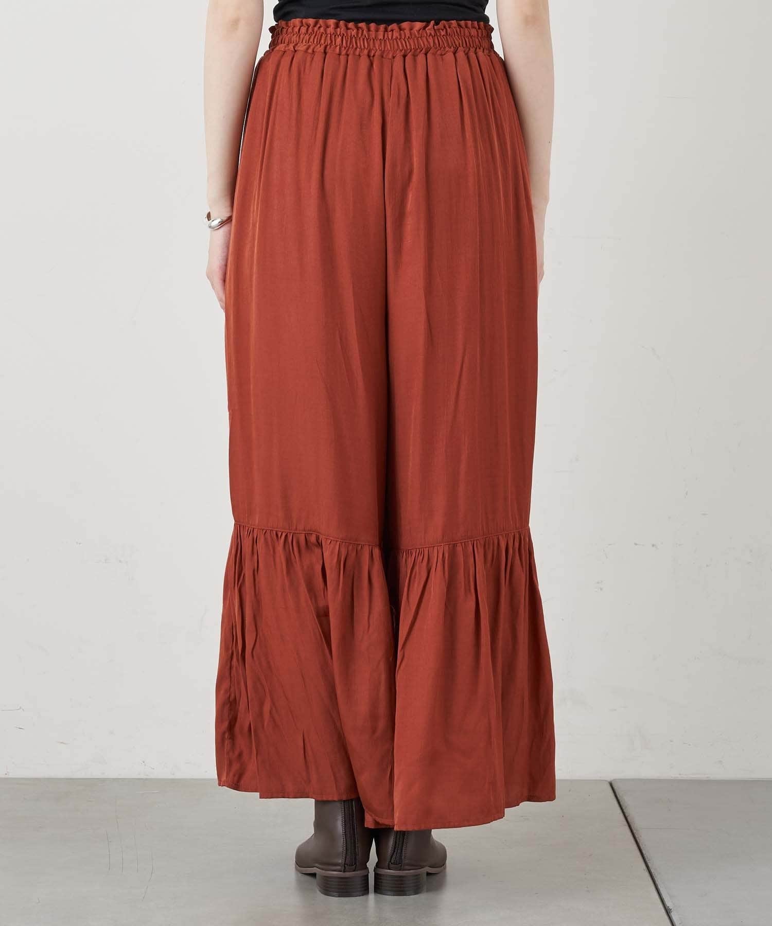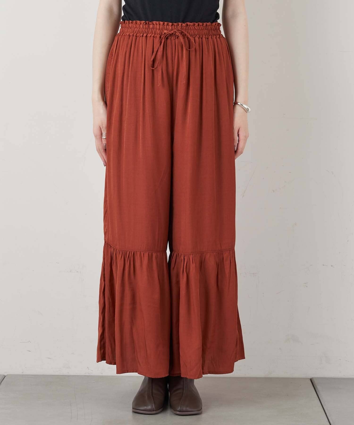 歩く度になびくティアードデザインがポイントのイージーパンツ。