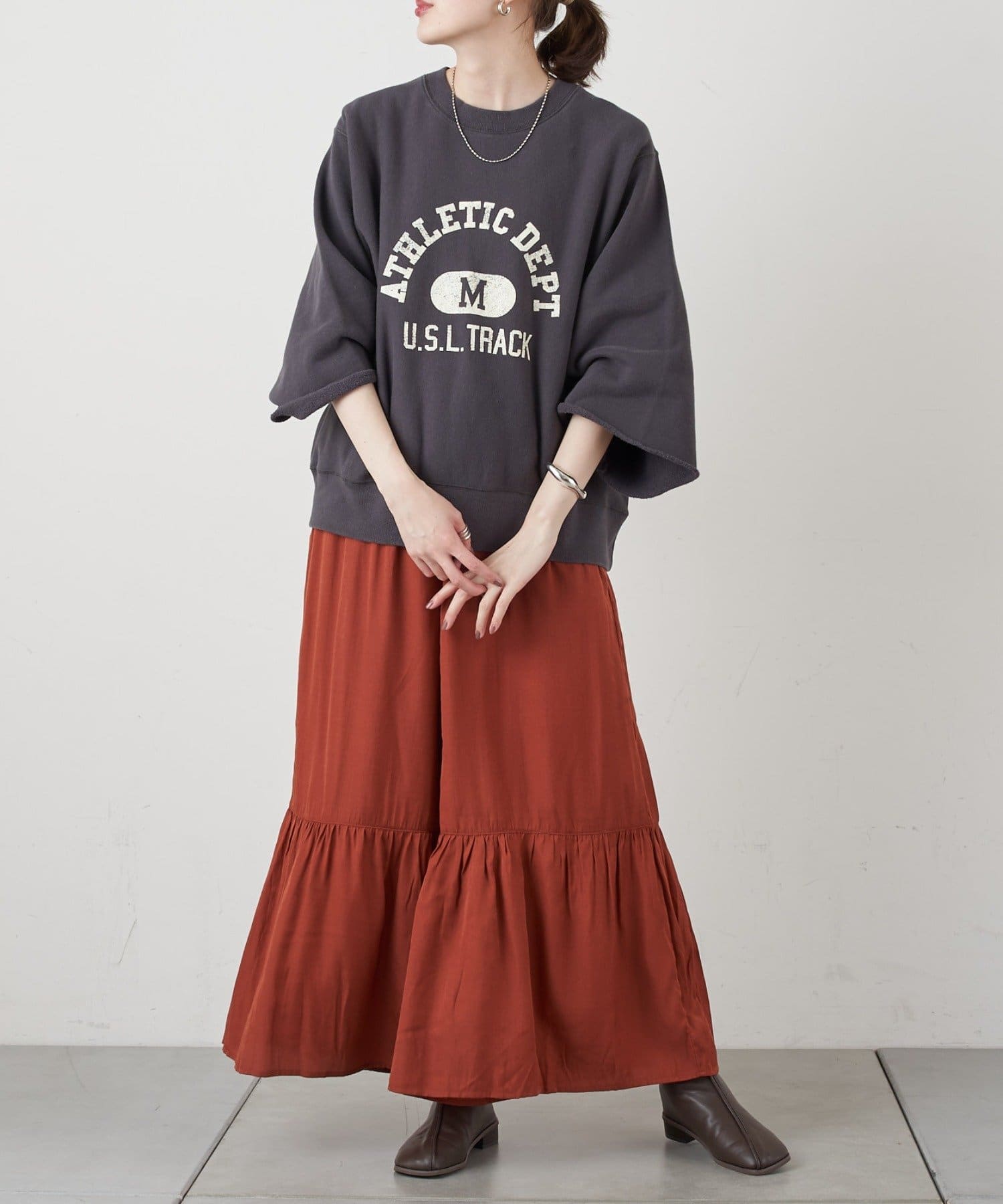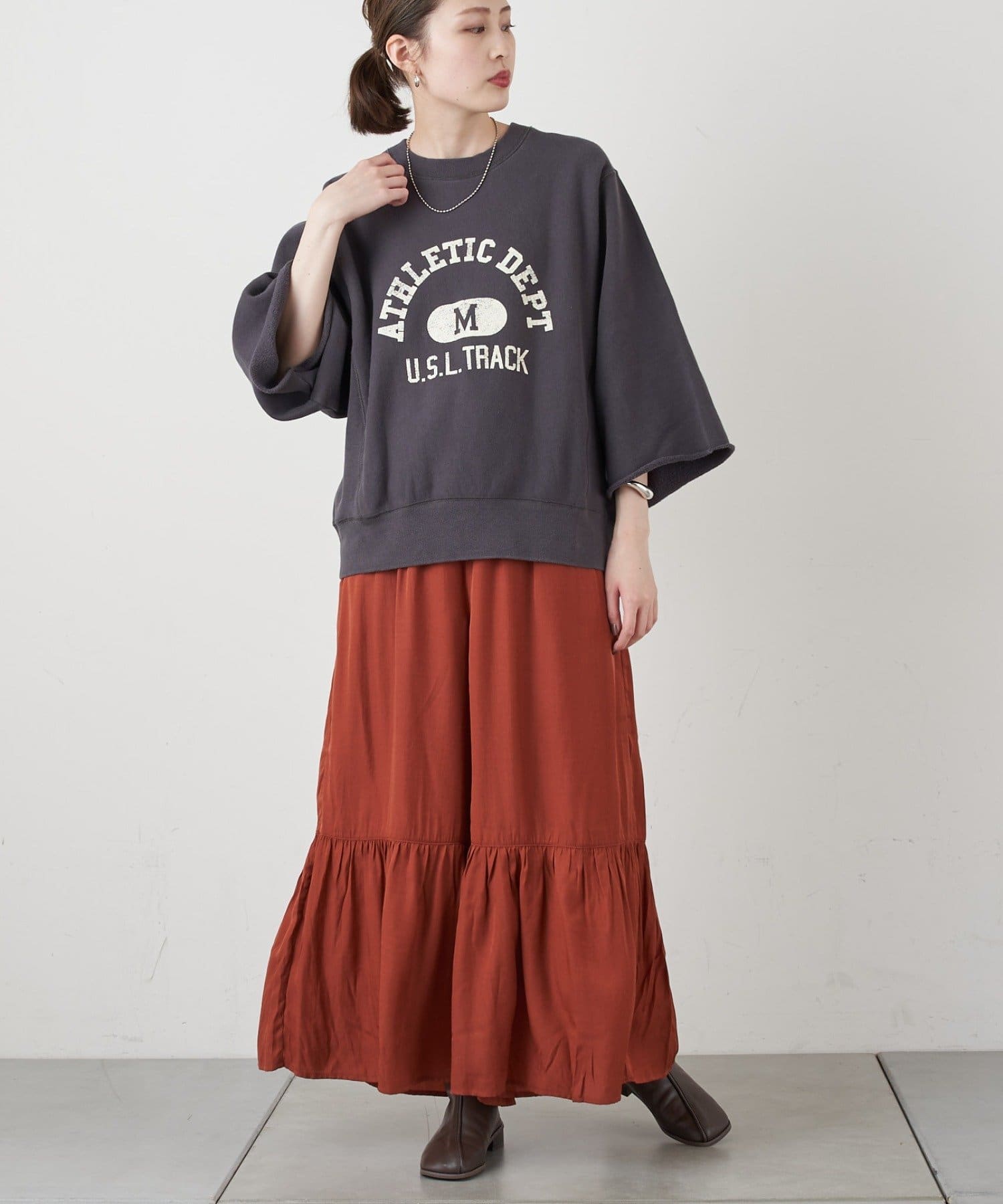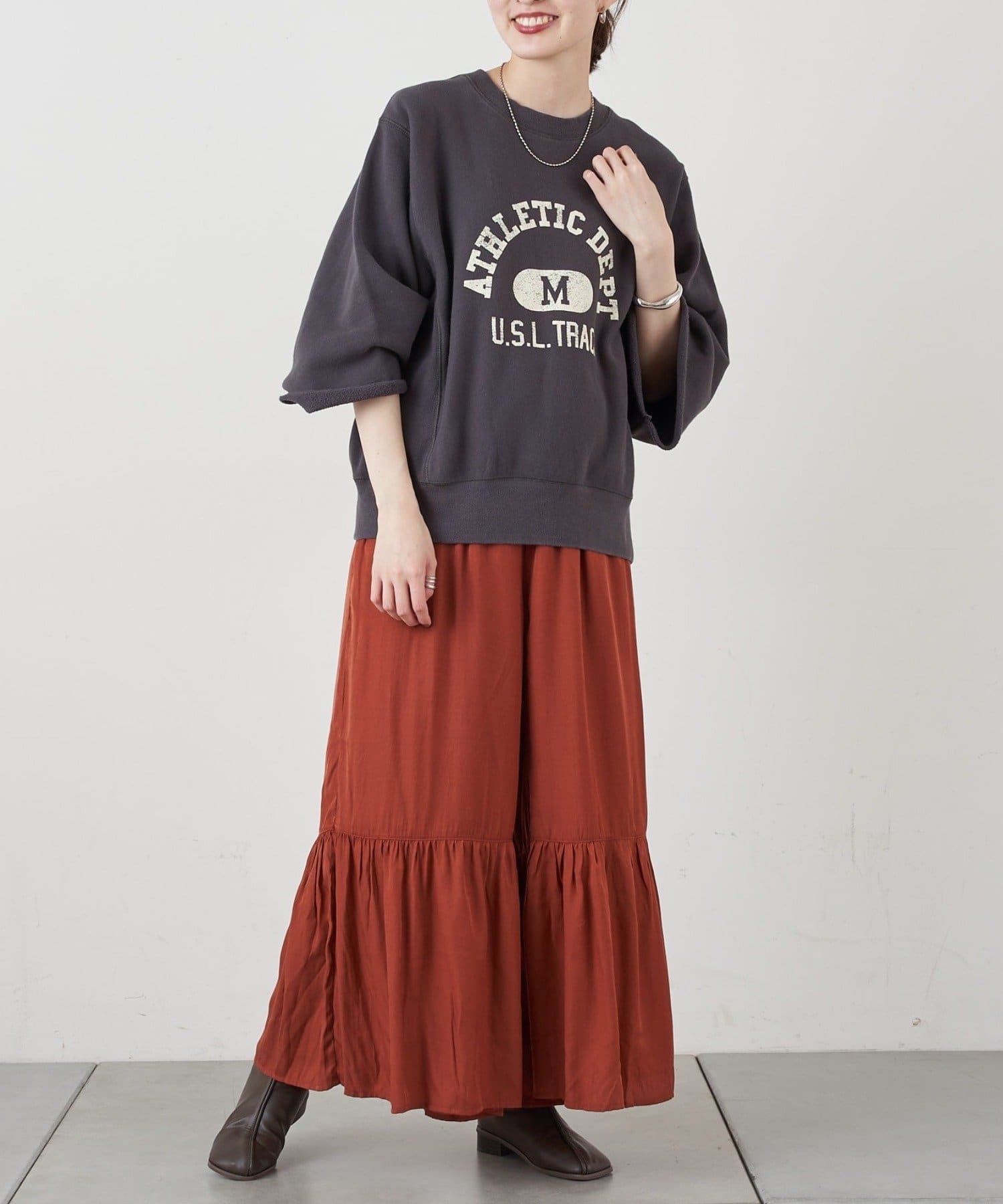 歩く度になびくティアードデザインがポイントのイージーパンツ。