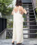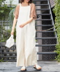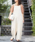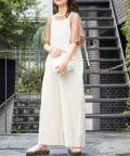 微光沢感のあるリネン素材を使用することで、女性らしさも兼ね備えたサロペット。