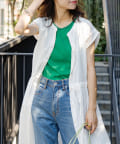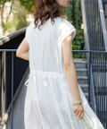 ほんのりシアーを感じられる涼し気で女性らしい印象のワンピース。