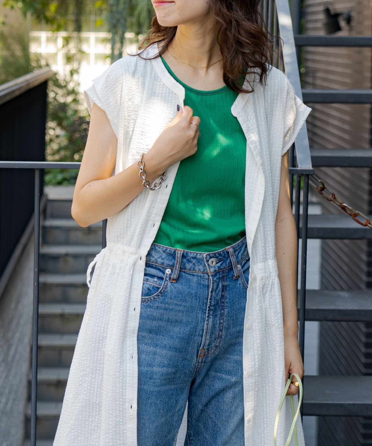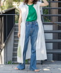 羽織としてデニムでカジュアルに着こなしたり、編みパンツやリブパンツなどと合わせても◎