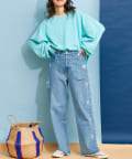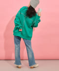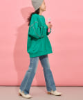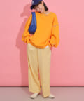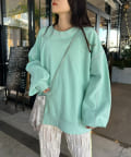 カジュアルなアイテムですが、程よくあいた首元やボリューム感のある袖が女性らしい印象をプラス。