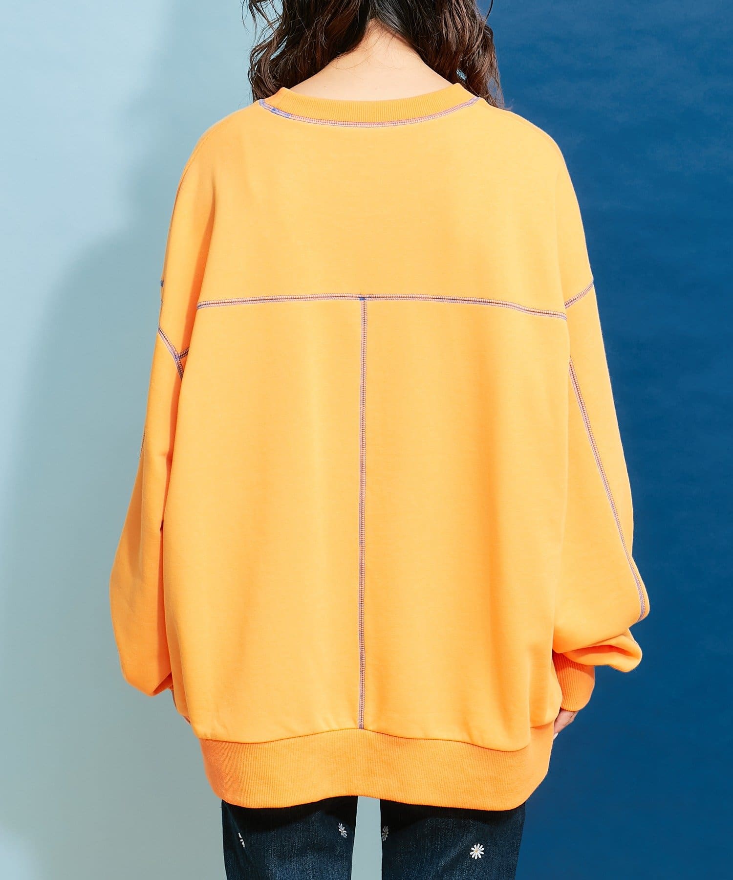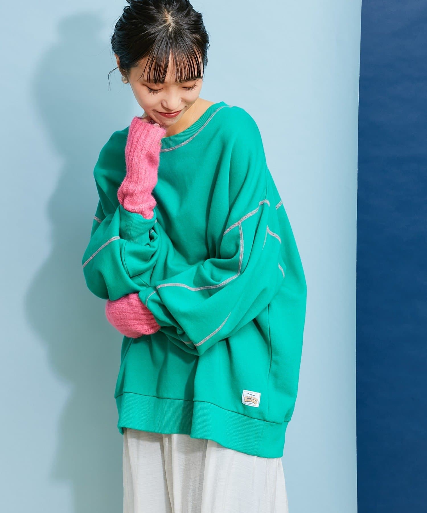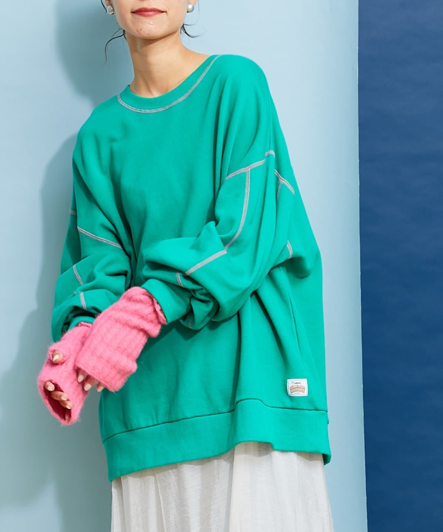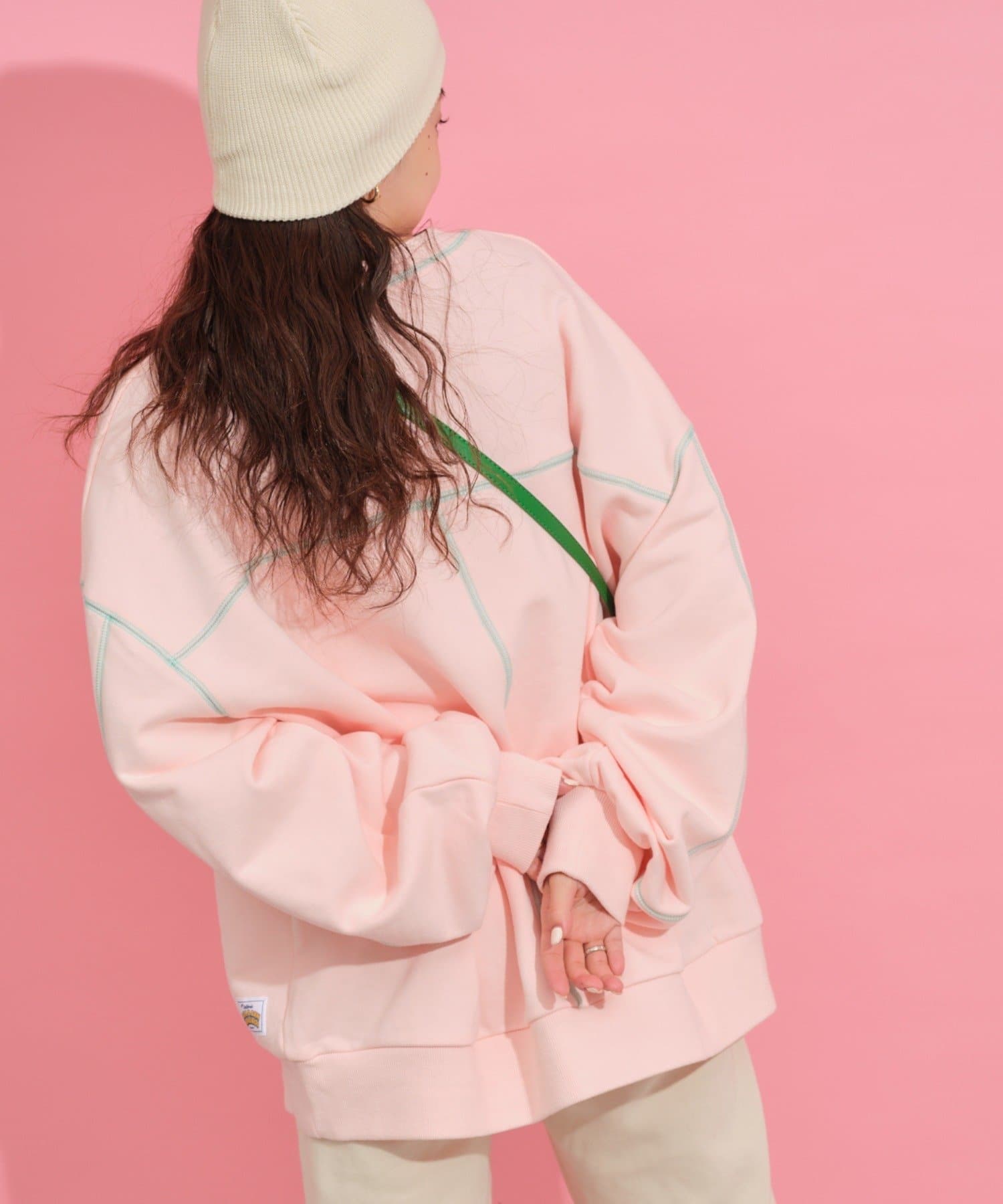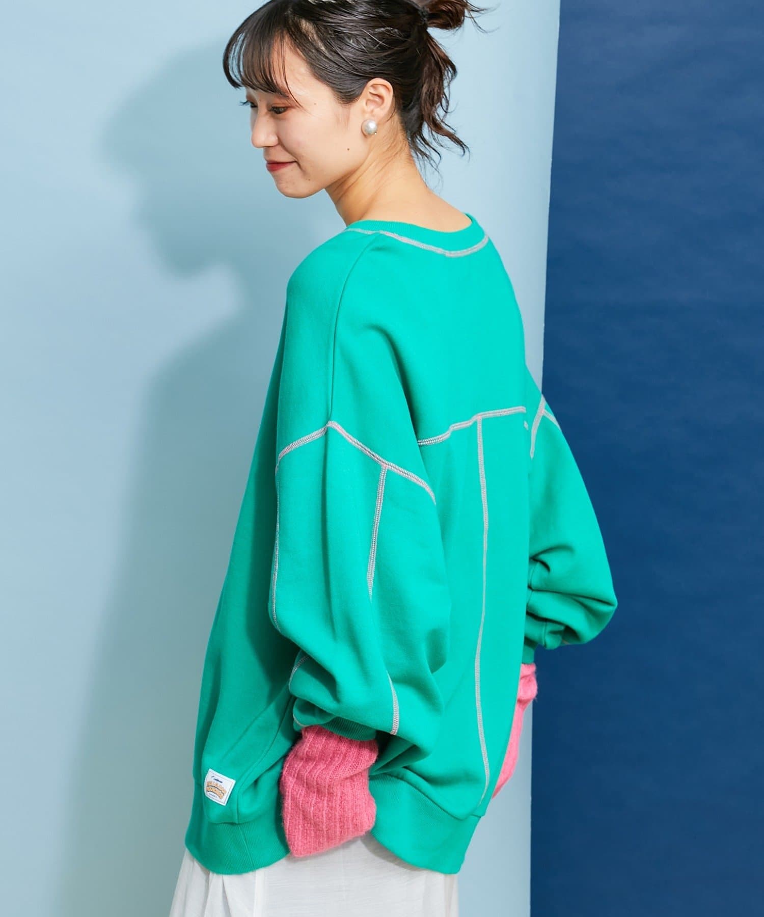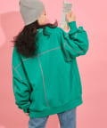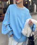 配色ステッチデザインが目を惹くトレンドライクなオーバーサイズプルオーバー。