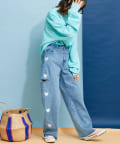 カジュアルなデニムパンツと合わせるのが定番カジュアルスタイル。