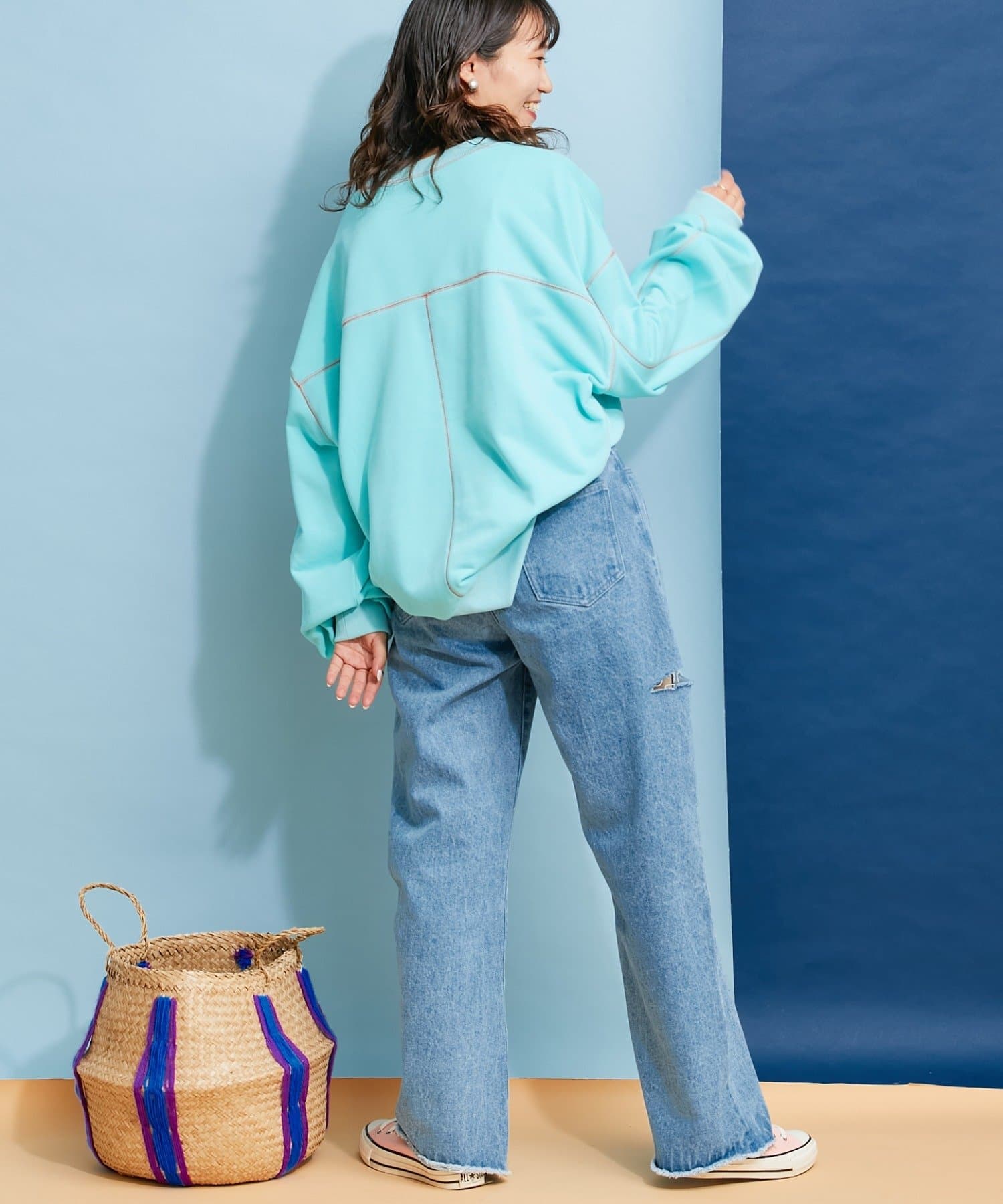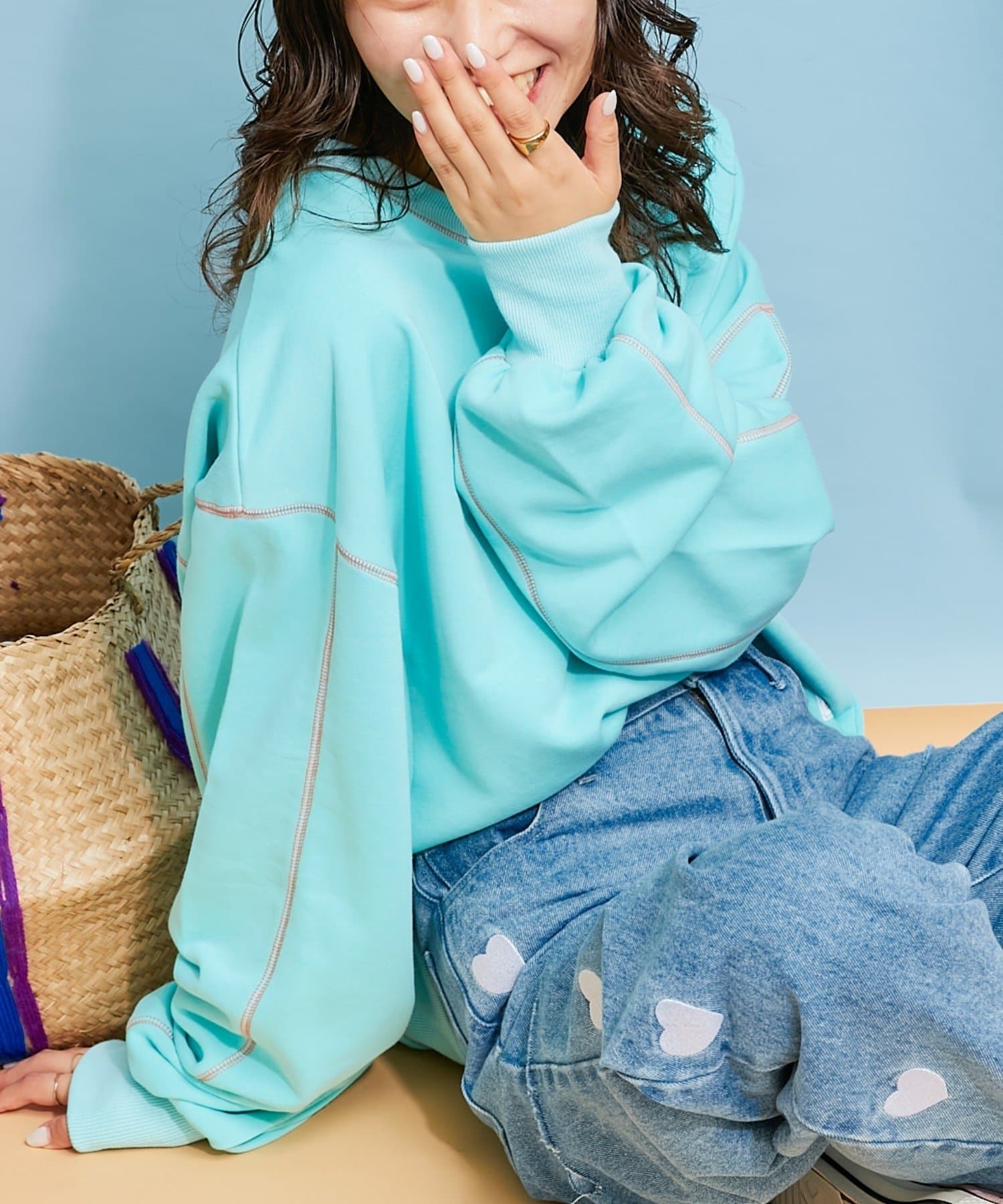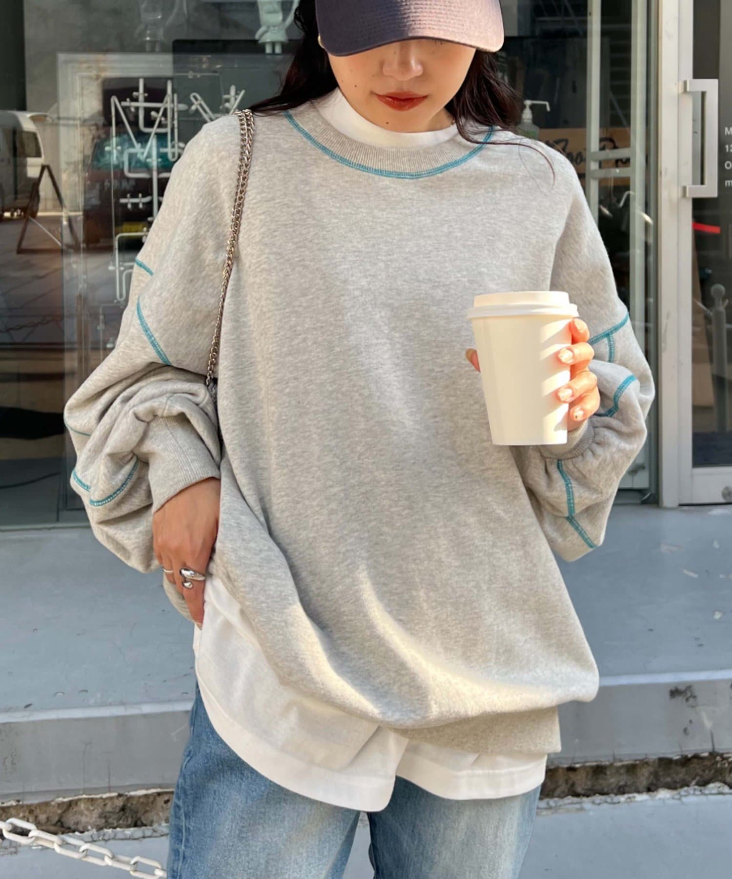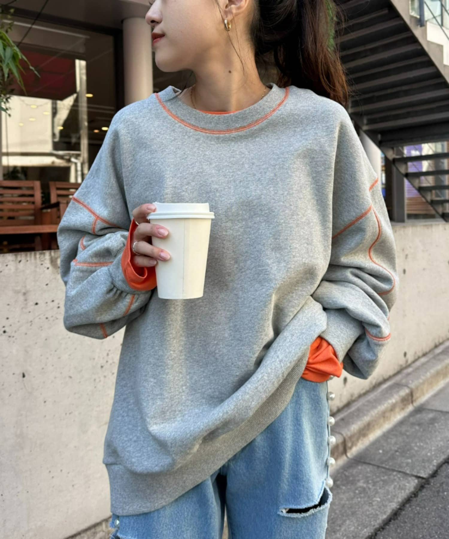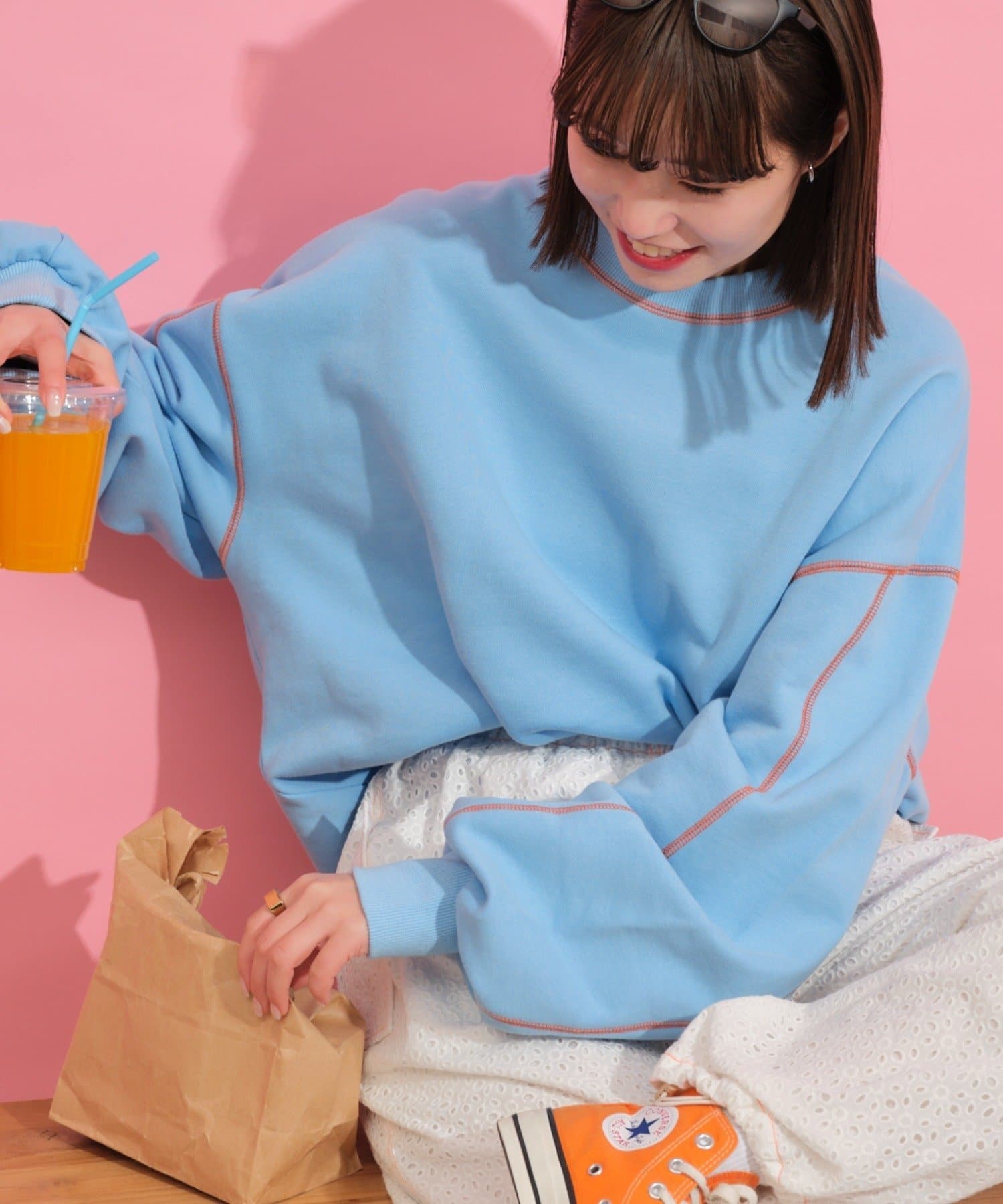 【HELLO.SANFRANCISCO】配色ステッチオーバースウェット
