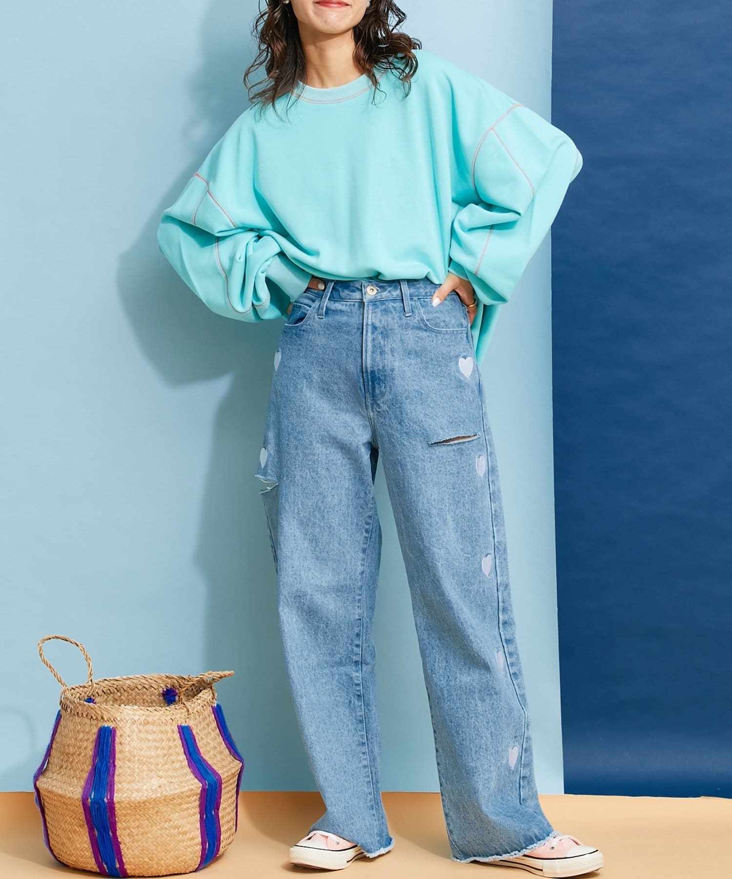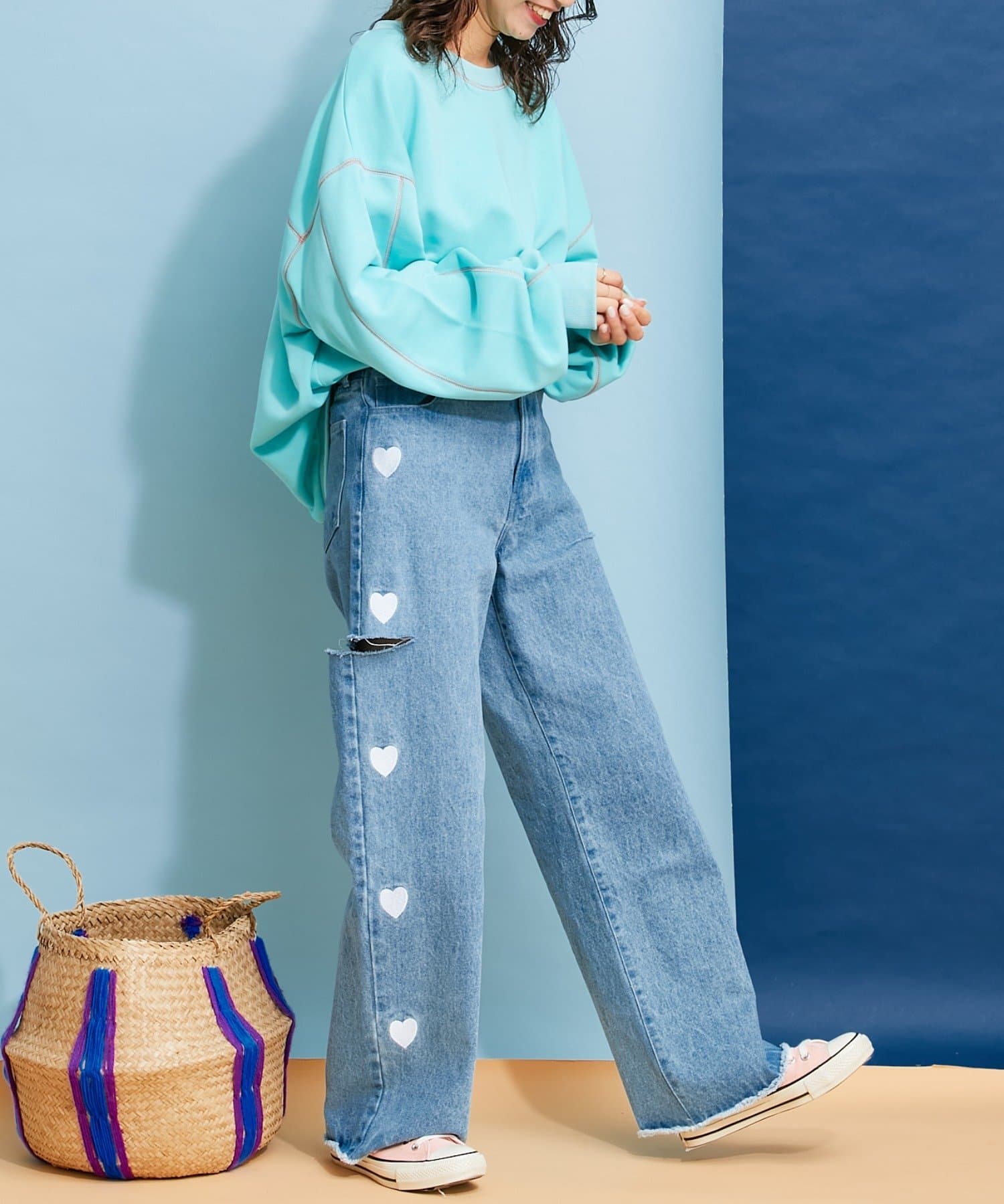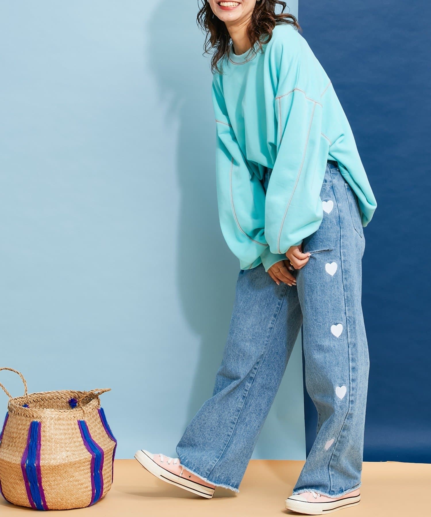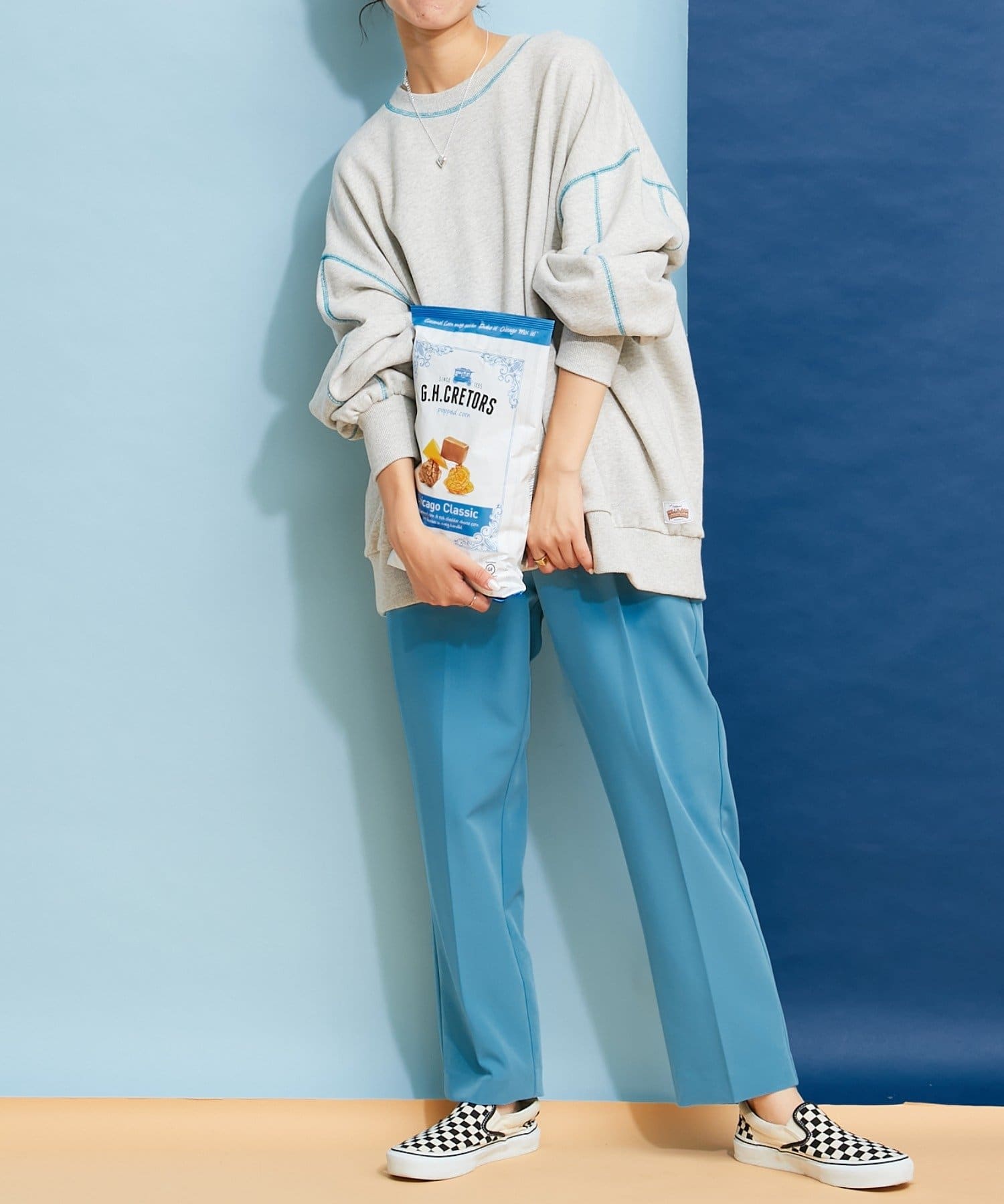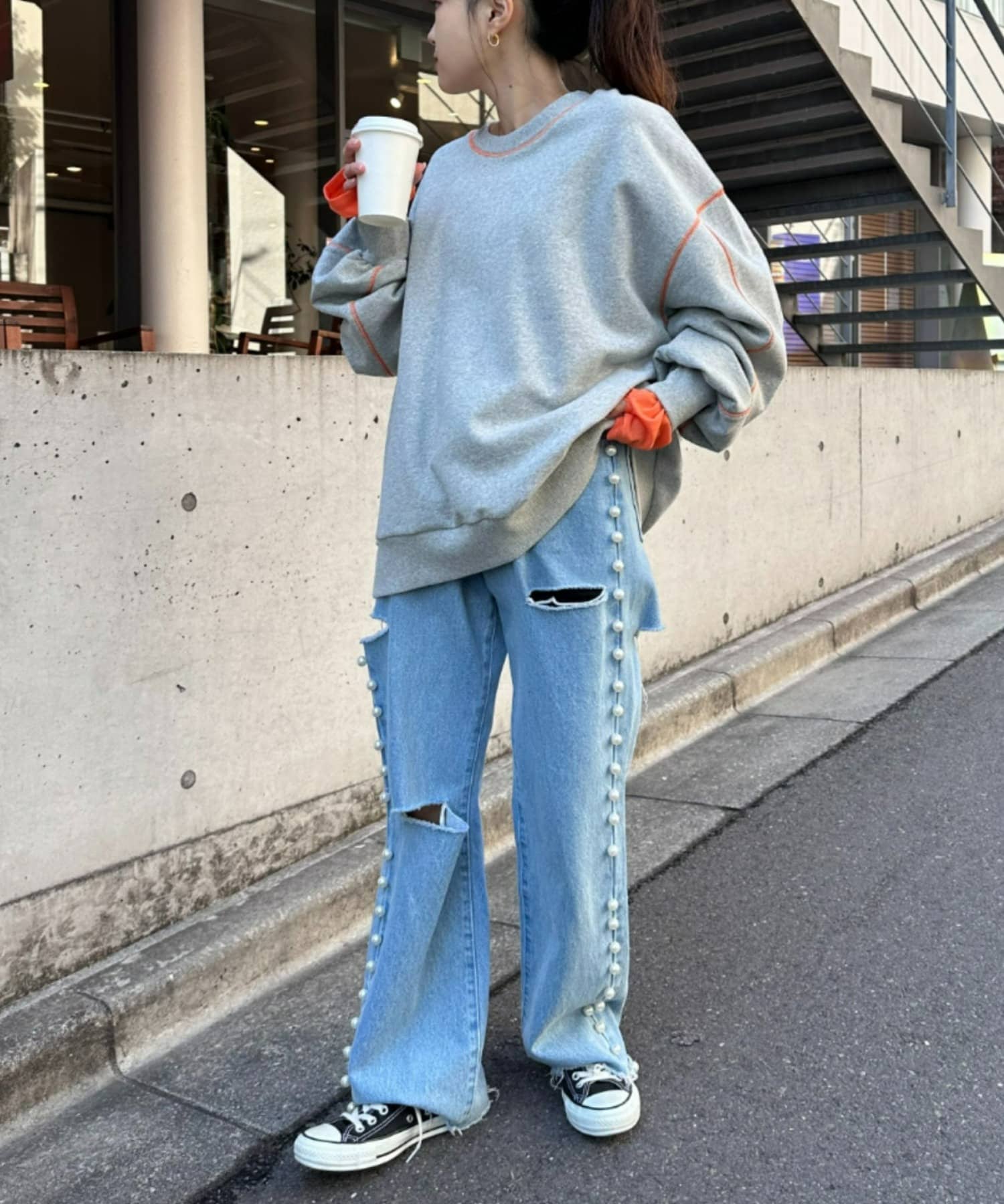 【HELLO.SANFRANCISCO】配色ステッチオーバースウェット