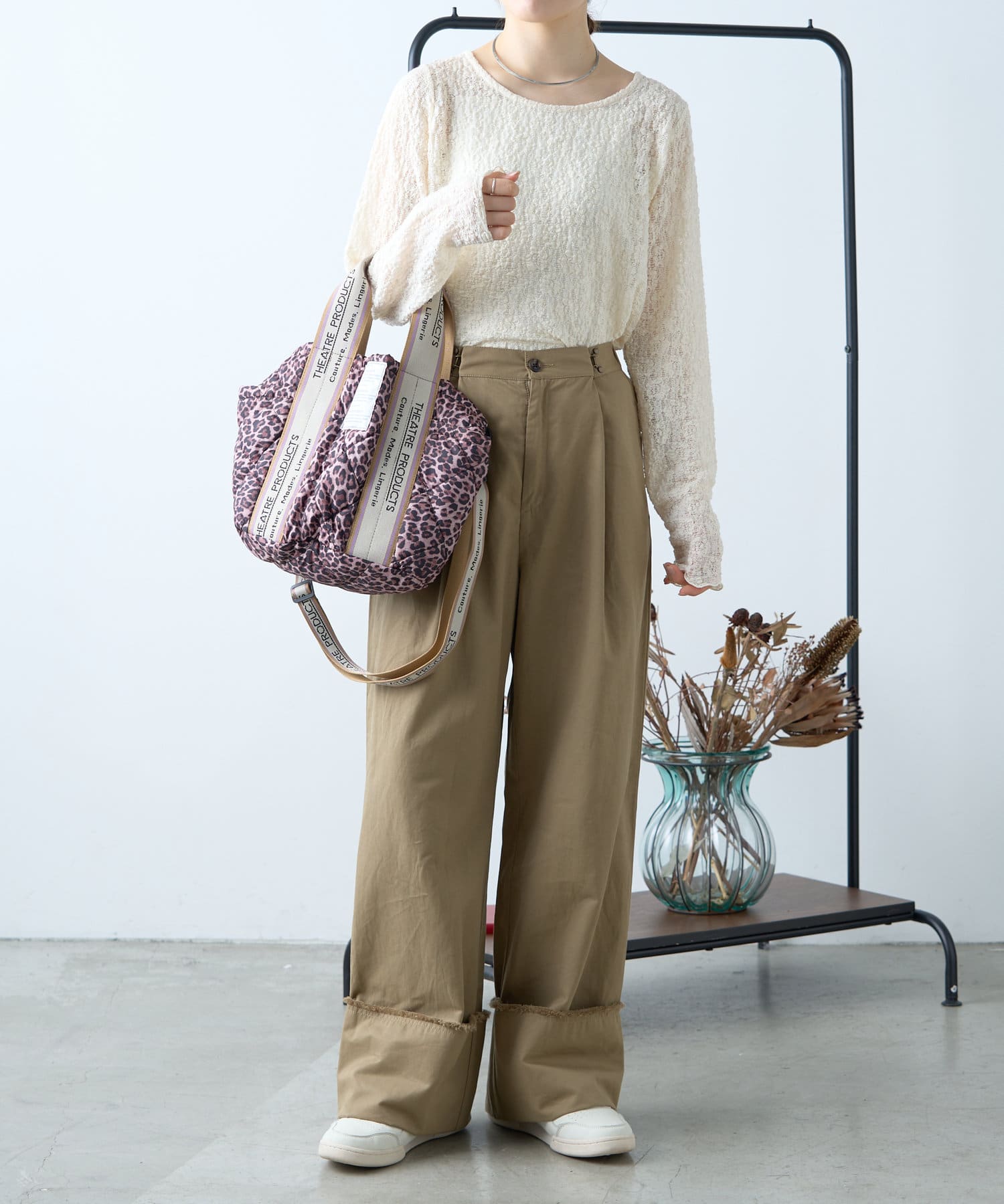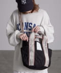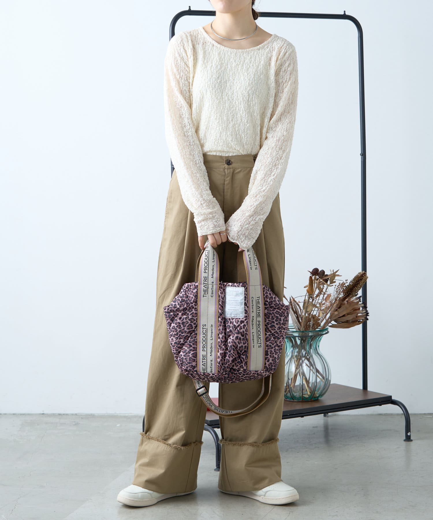 シアタープロダクツ定番の持ち手のジャガードテープが目を惹くトートバッグ。