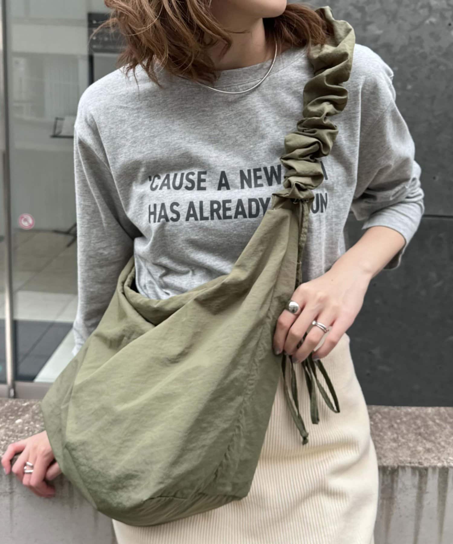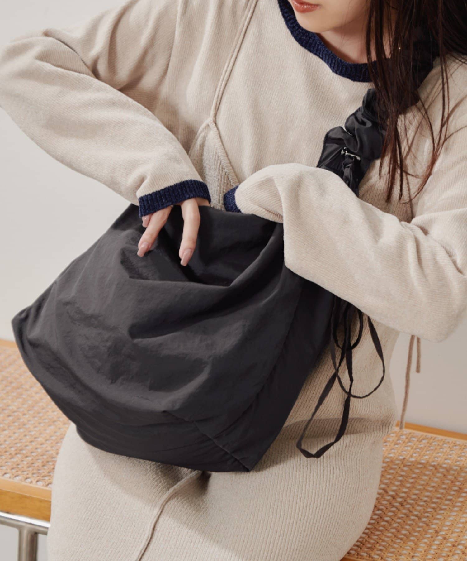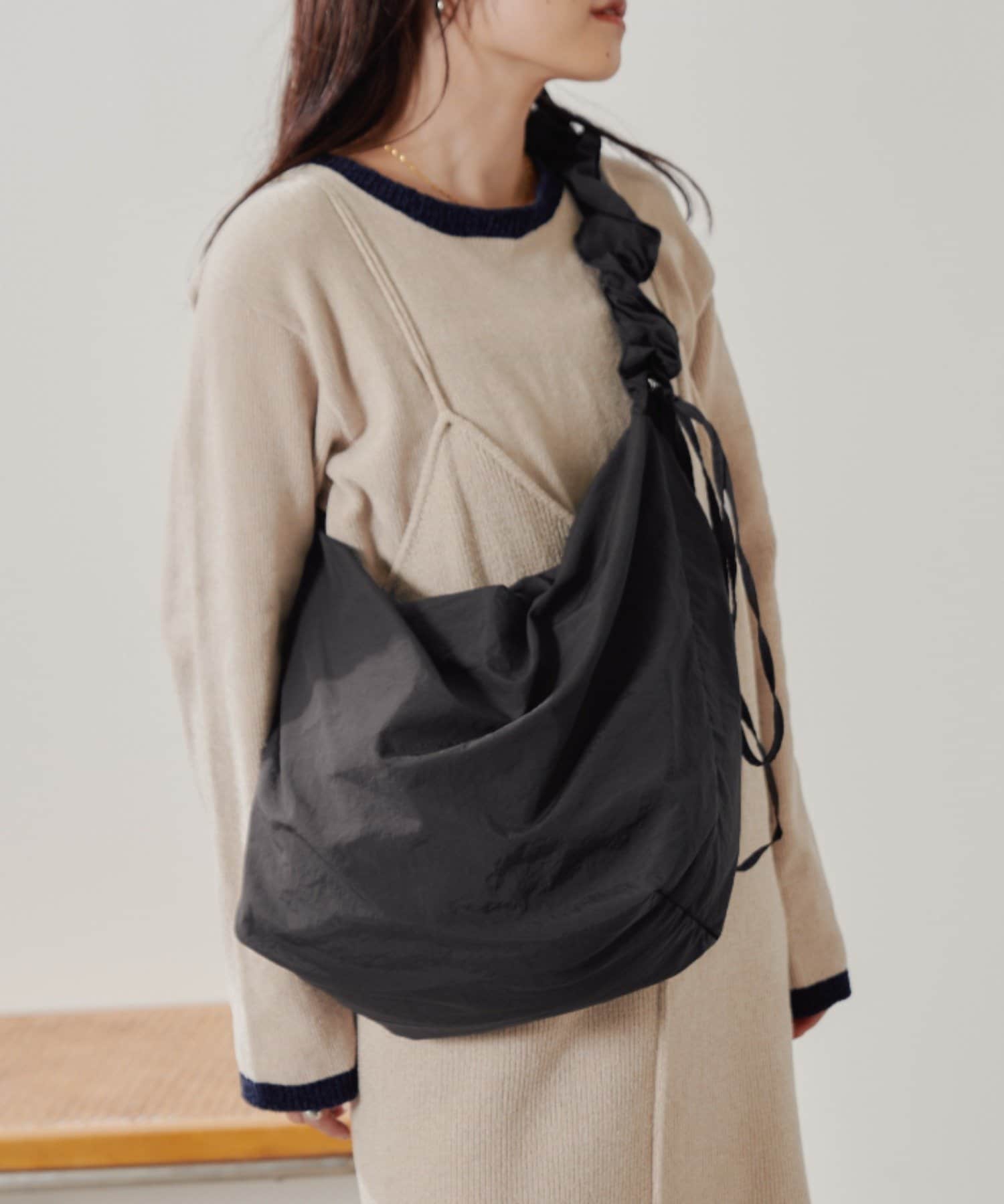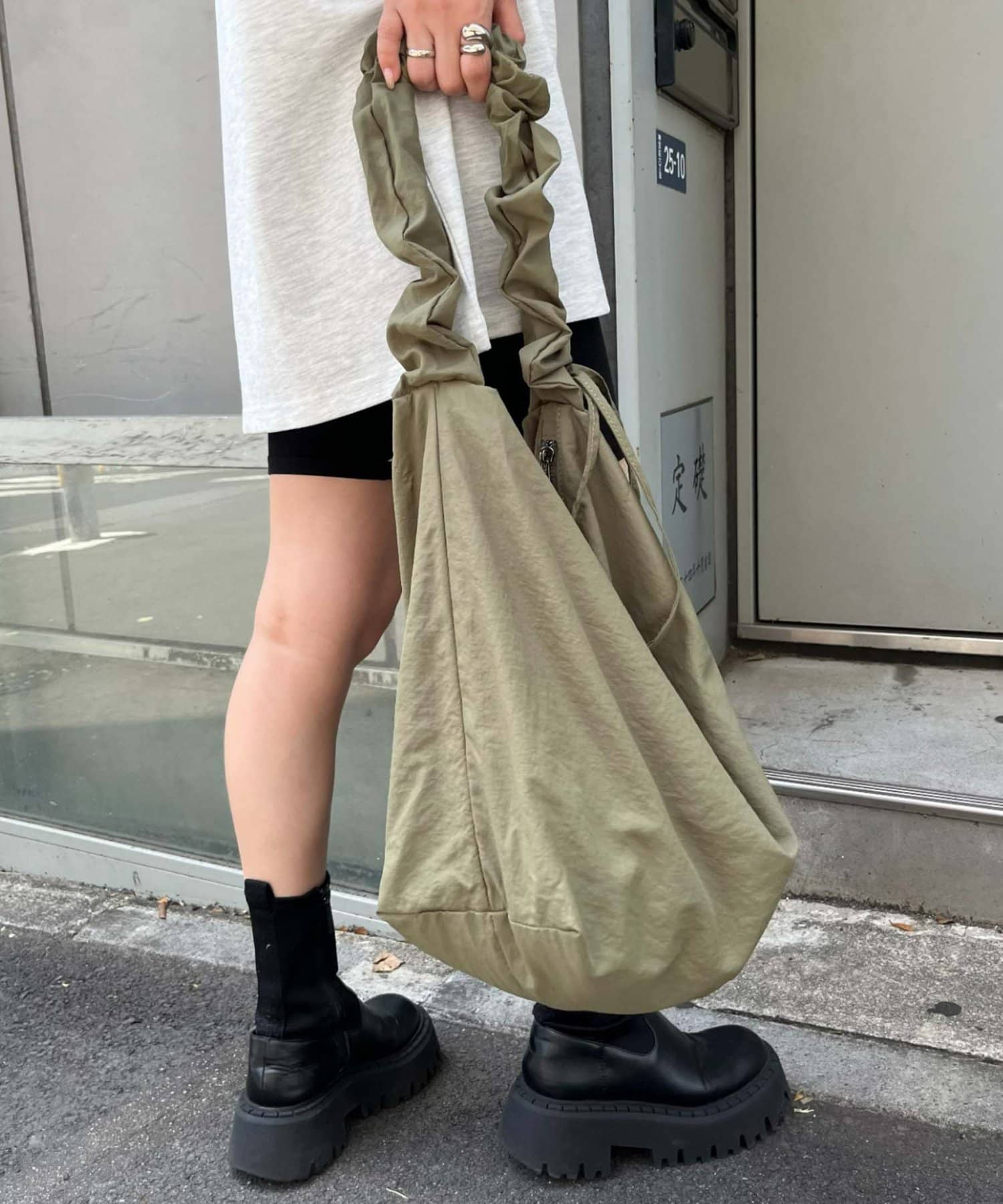 ナイロン生地で形もショルダーのくしゅくしゅ感もとっても可愛くて色んなコーデに合わせやすいので購入して良かったなと思いました!これからの時期にも沢山活躍する予感です!