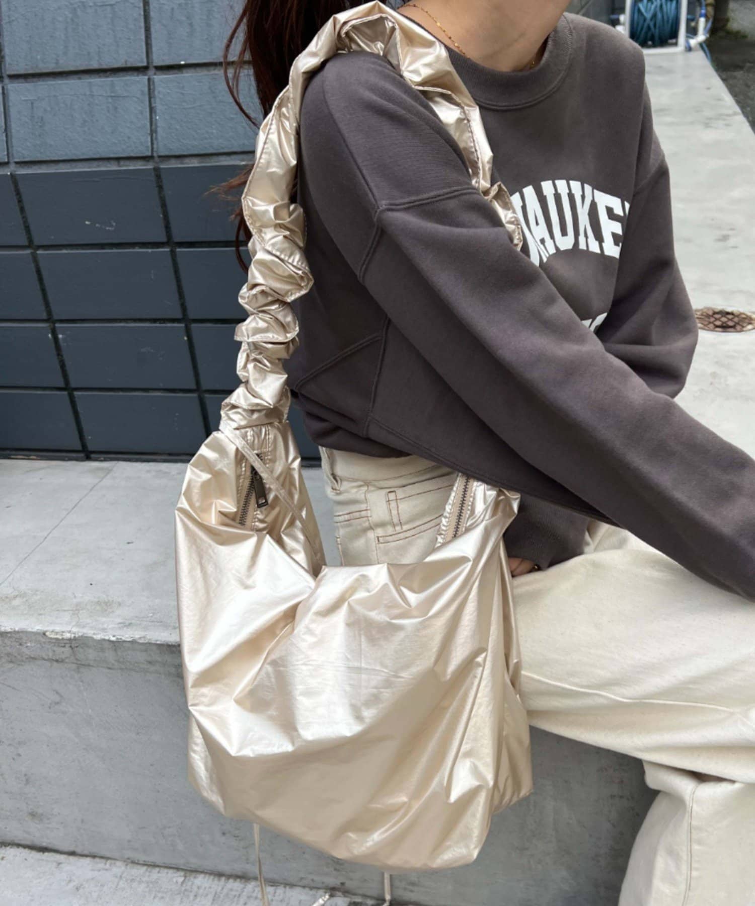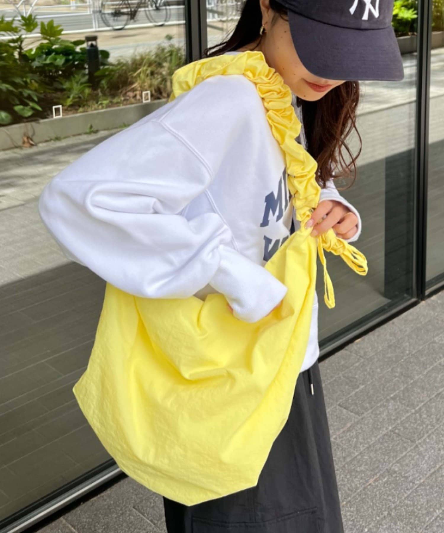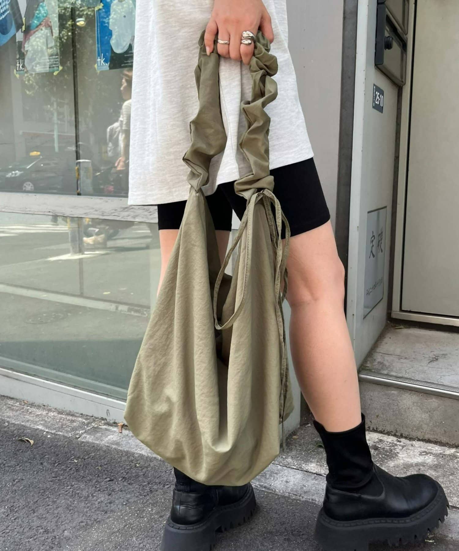 ナイロン生地で形もショルダーのくしゅくしゅ感もとっても可愛くて色んなコーデに合わせやすいので購入して良かったなと思いました!これからの時期にも沢山活躍する予感です!