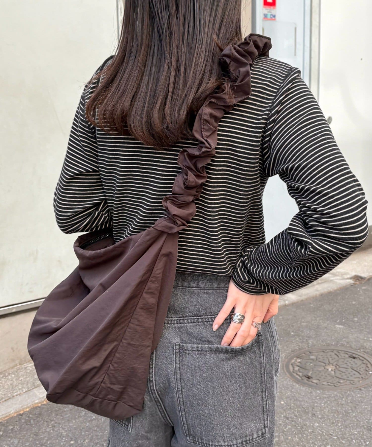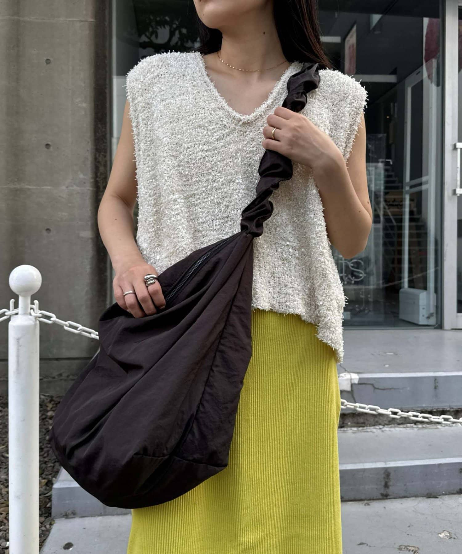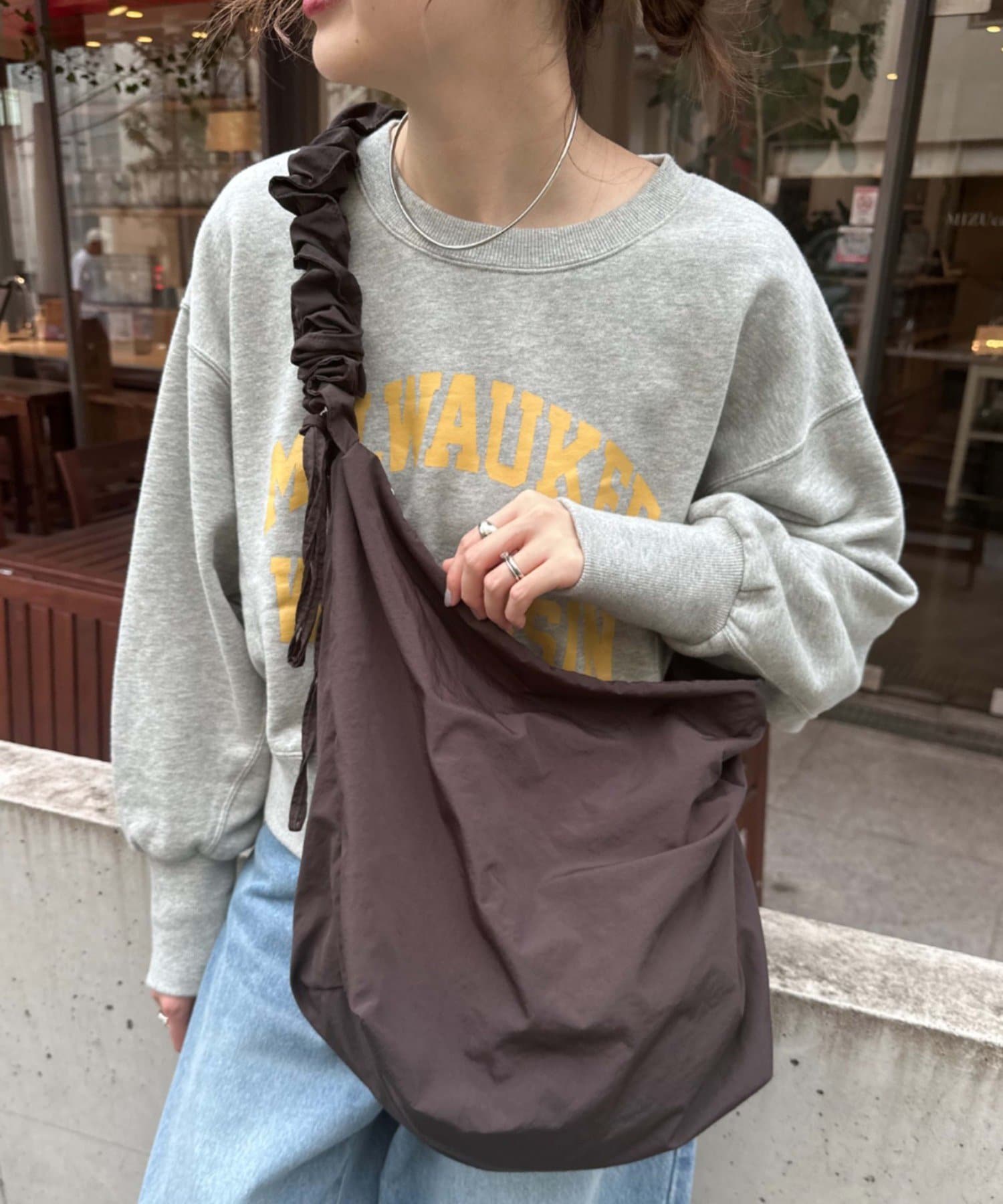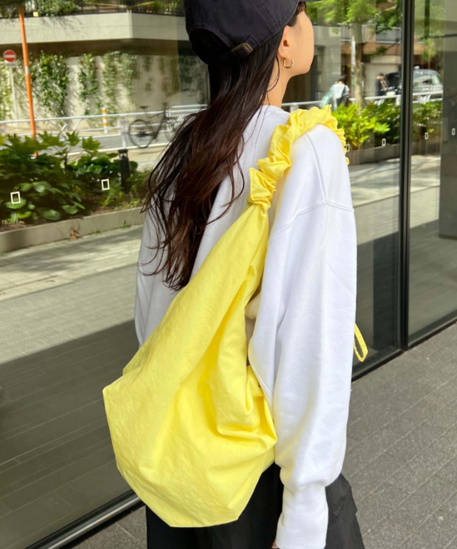 ナイロン生地で形もショルダーのくしゅくしゅ感もとっても可愛くて色んなコーデに合わせやすいので購入して良かったなと思いました!これからの時期にも沢山活躍する予感です!