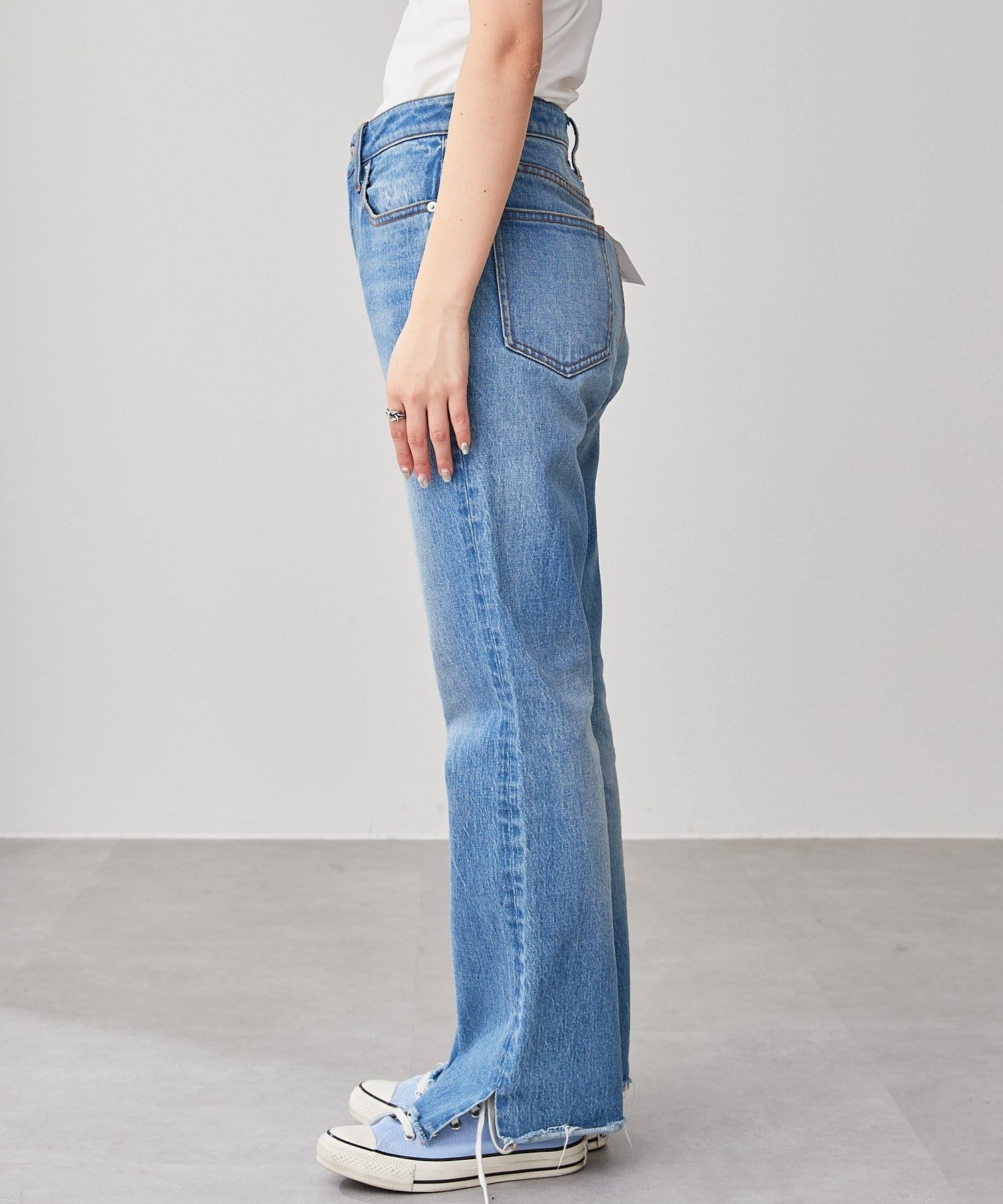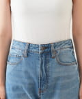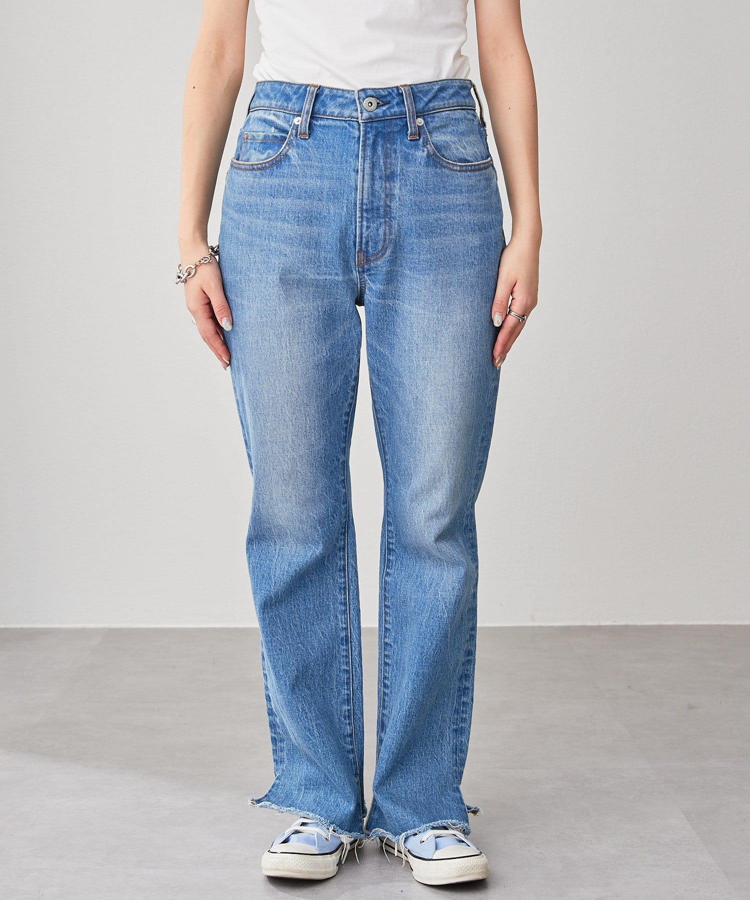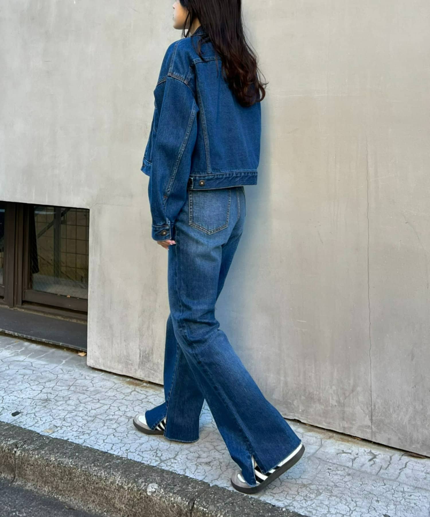 ロゴスウェットやニットカーディガン、ブラウスなど合わせるトップスを選ばない万能デニムです。