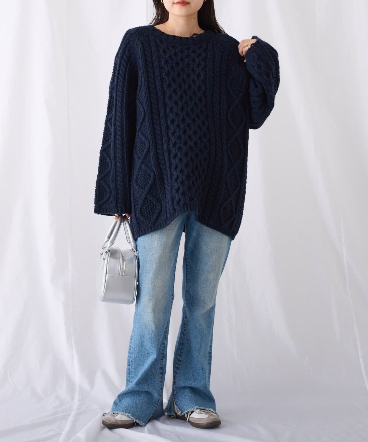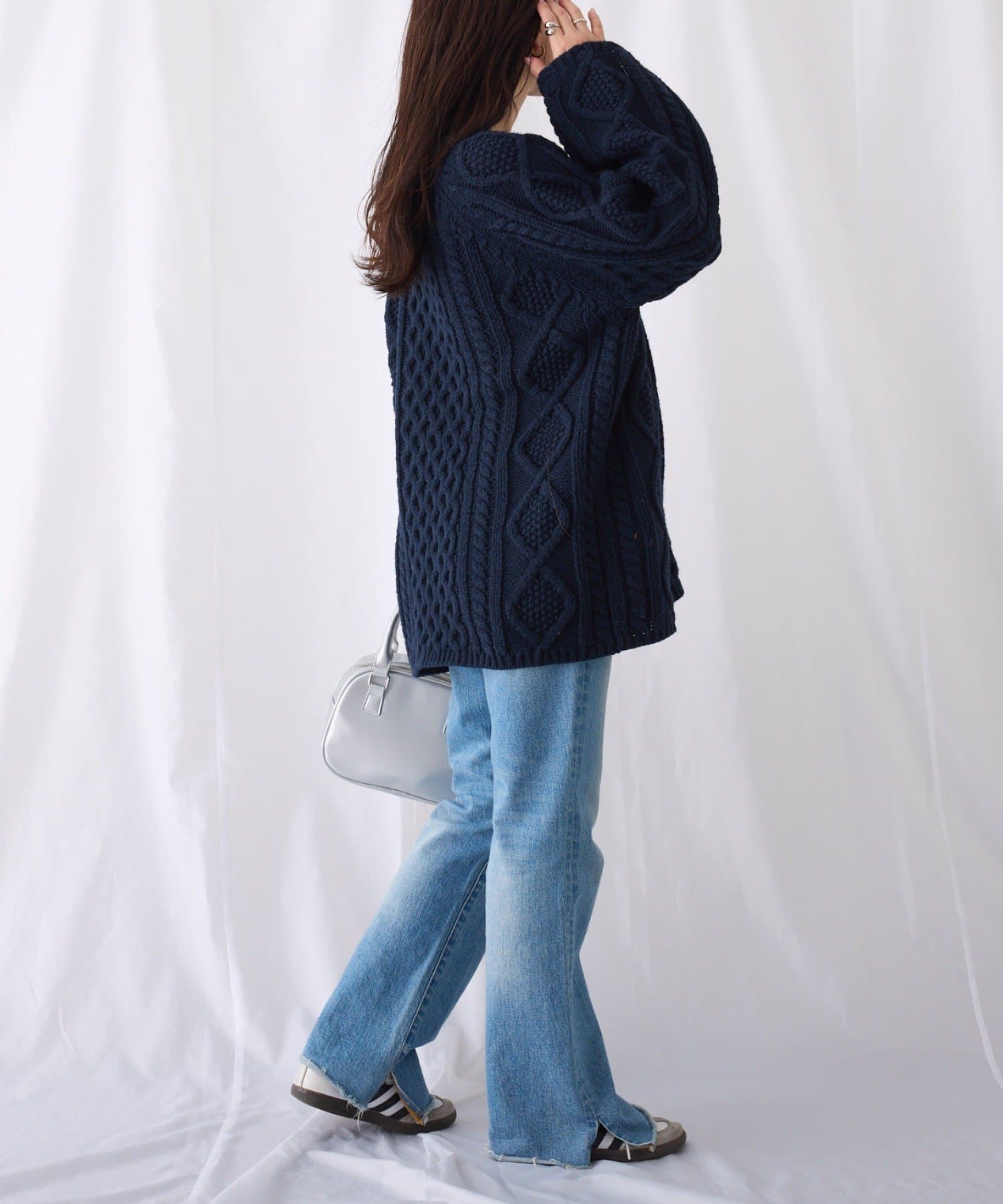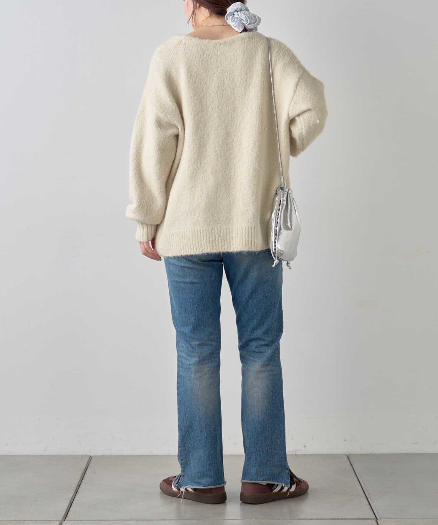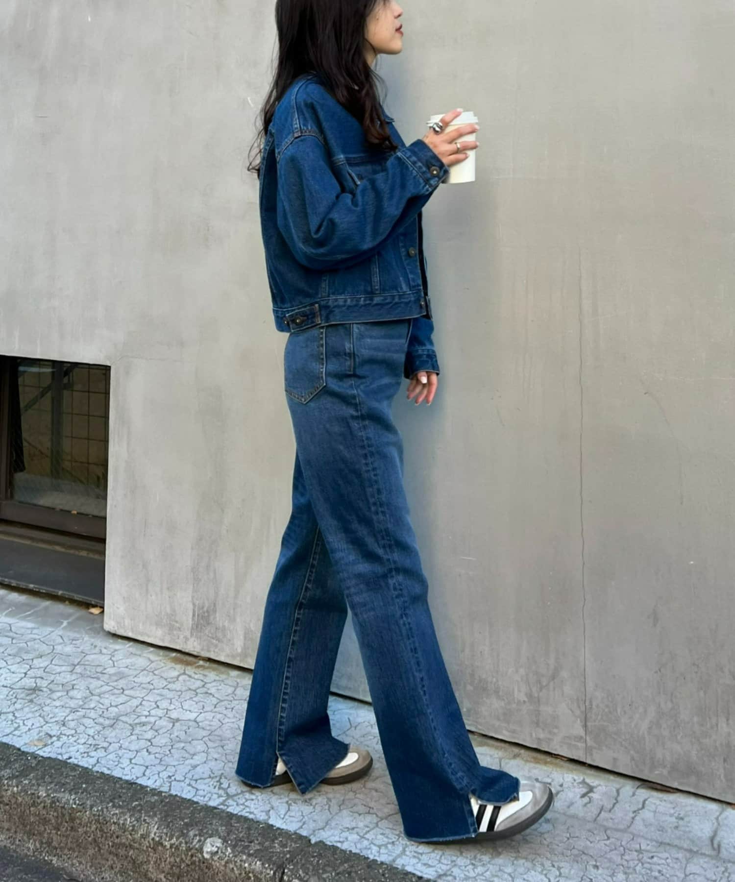 ロゴスウェットやニットカーディガン、ブラウスなど合わせるトップスを選ばない万能デニムです。