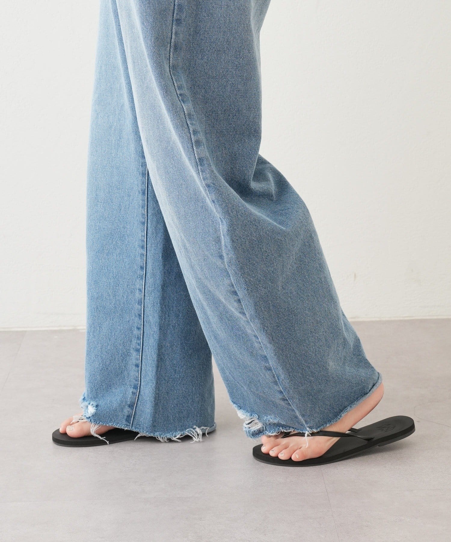 足元はスニーカーはもちろん、ヒールのサンダルと合わせてきれいめに着こなすのも◎