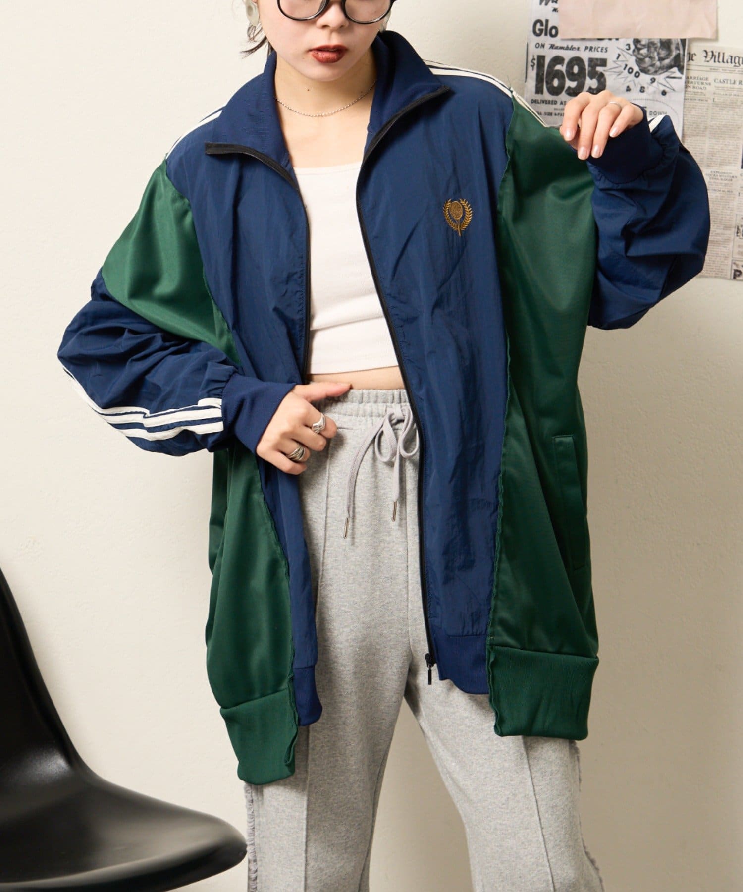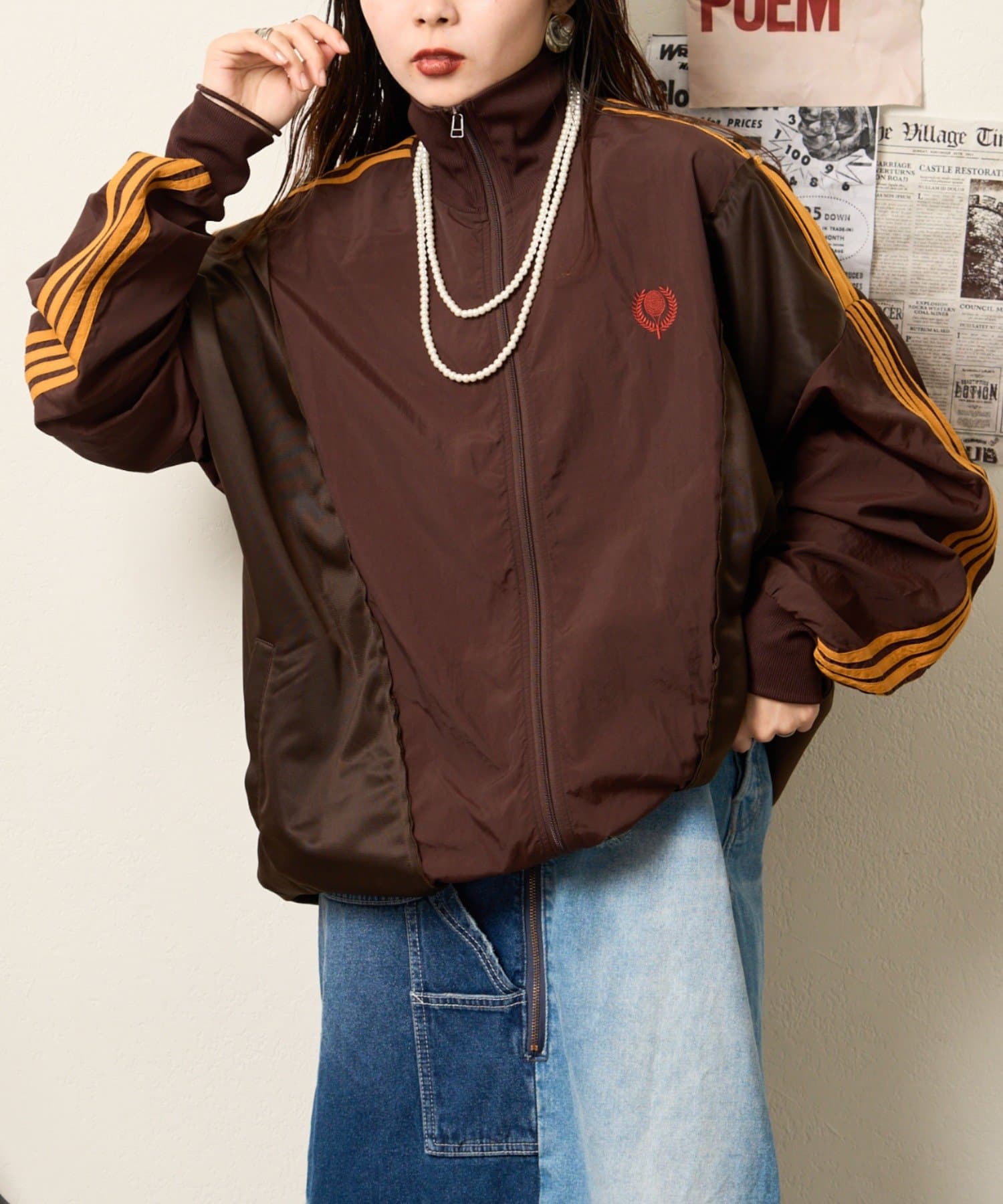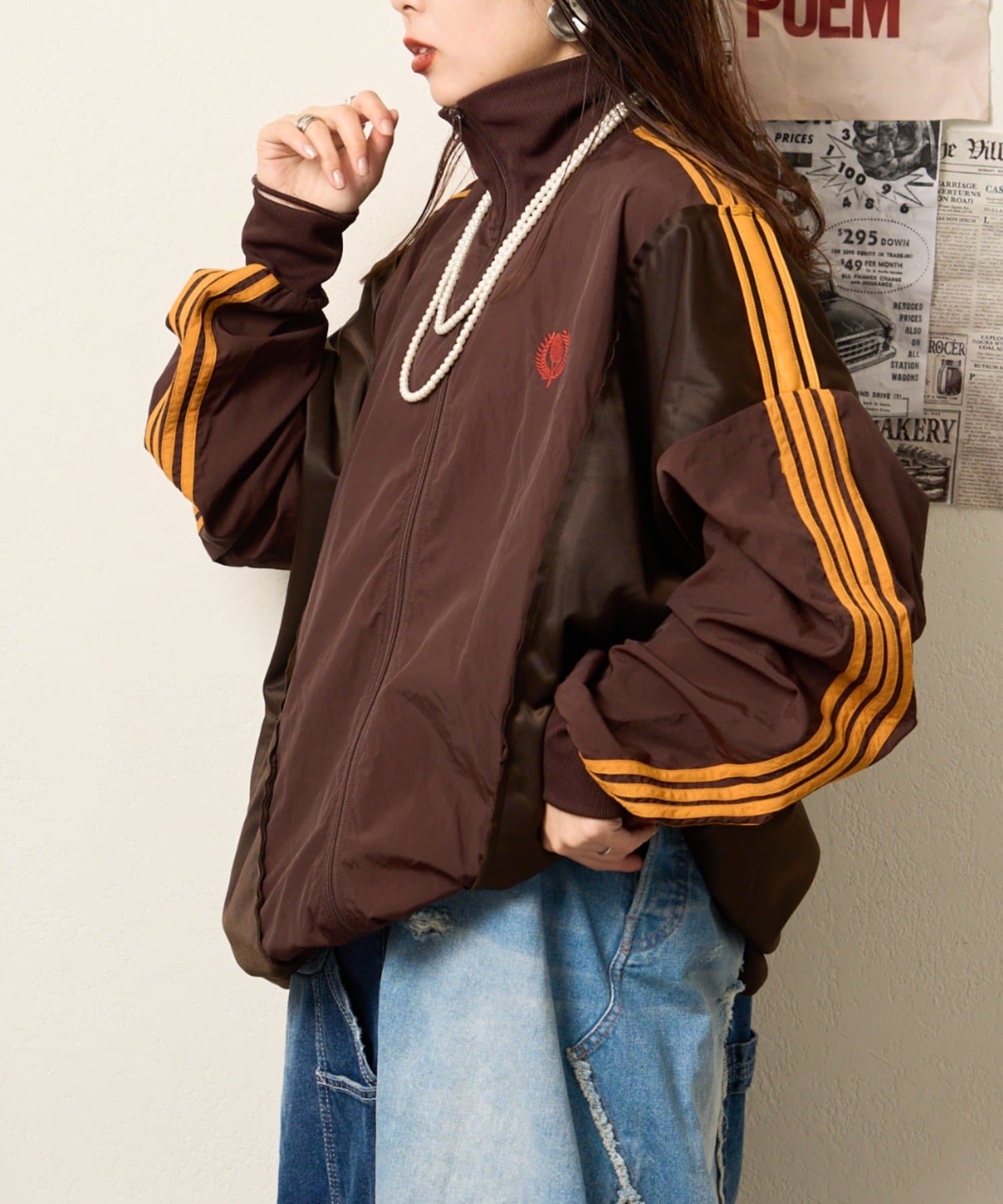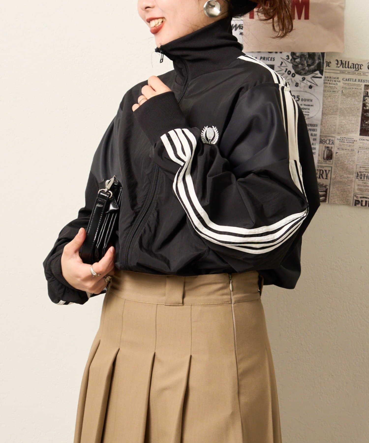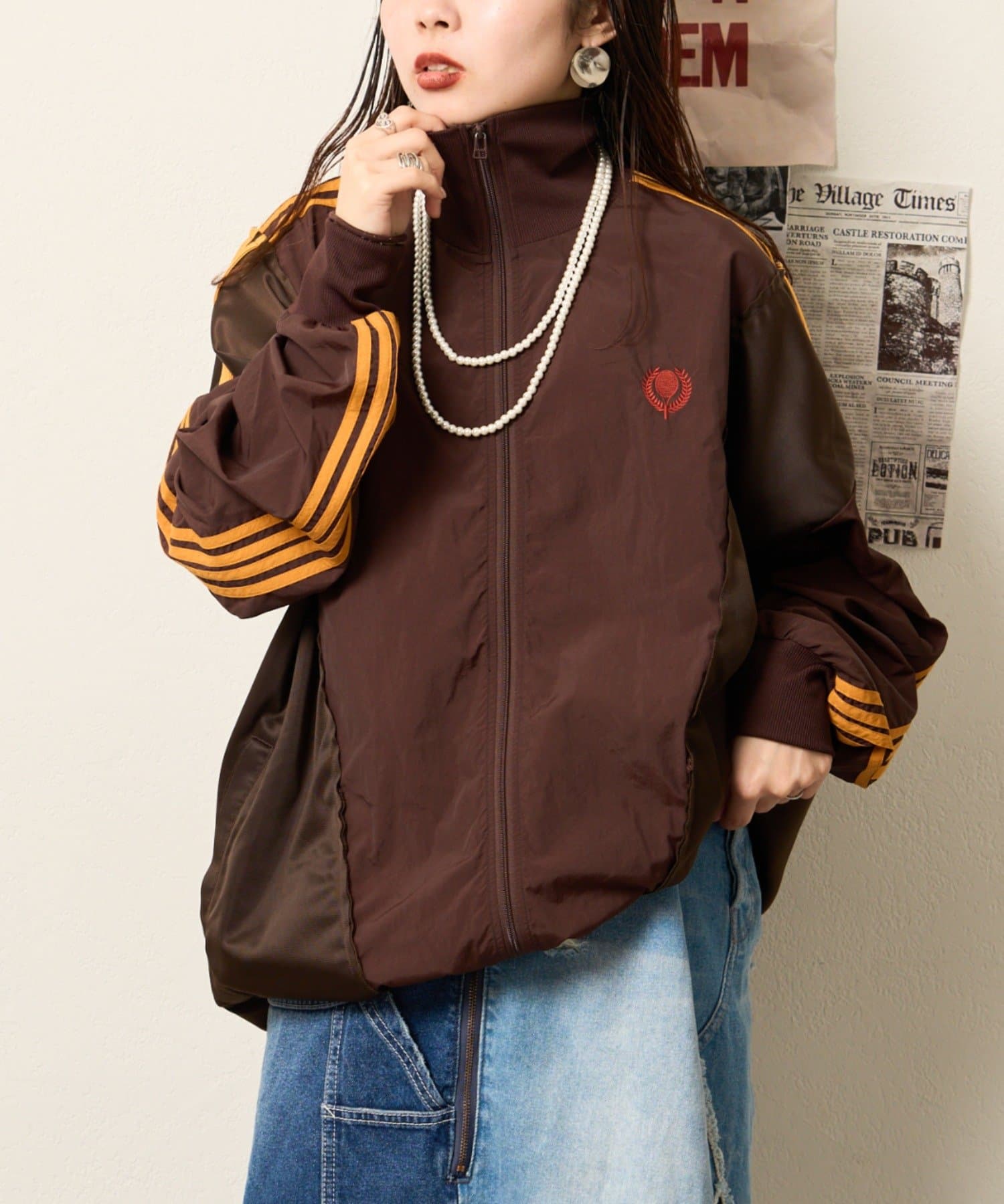 袖に入ったトラックジャケット特有のラインや、胸元の刺繍がポイント◎