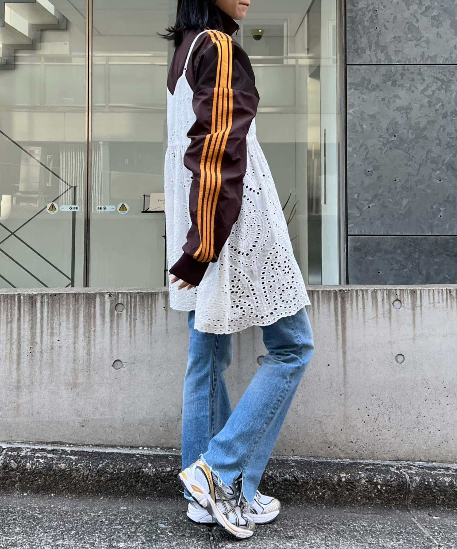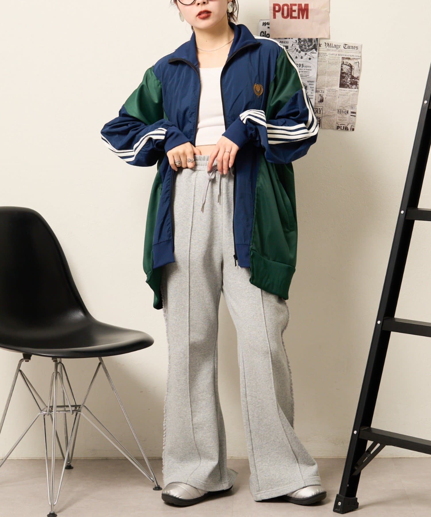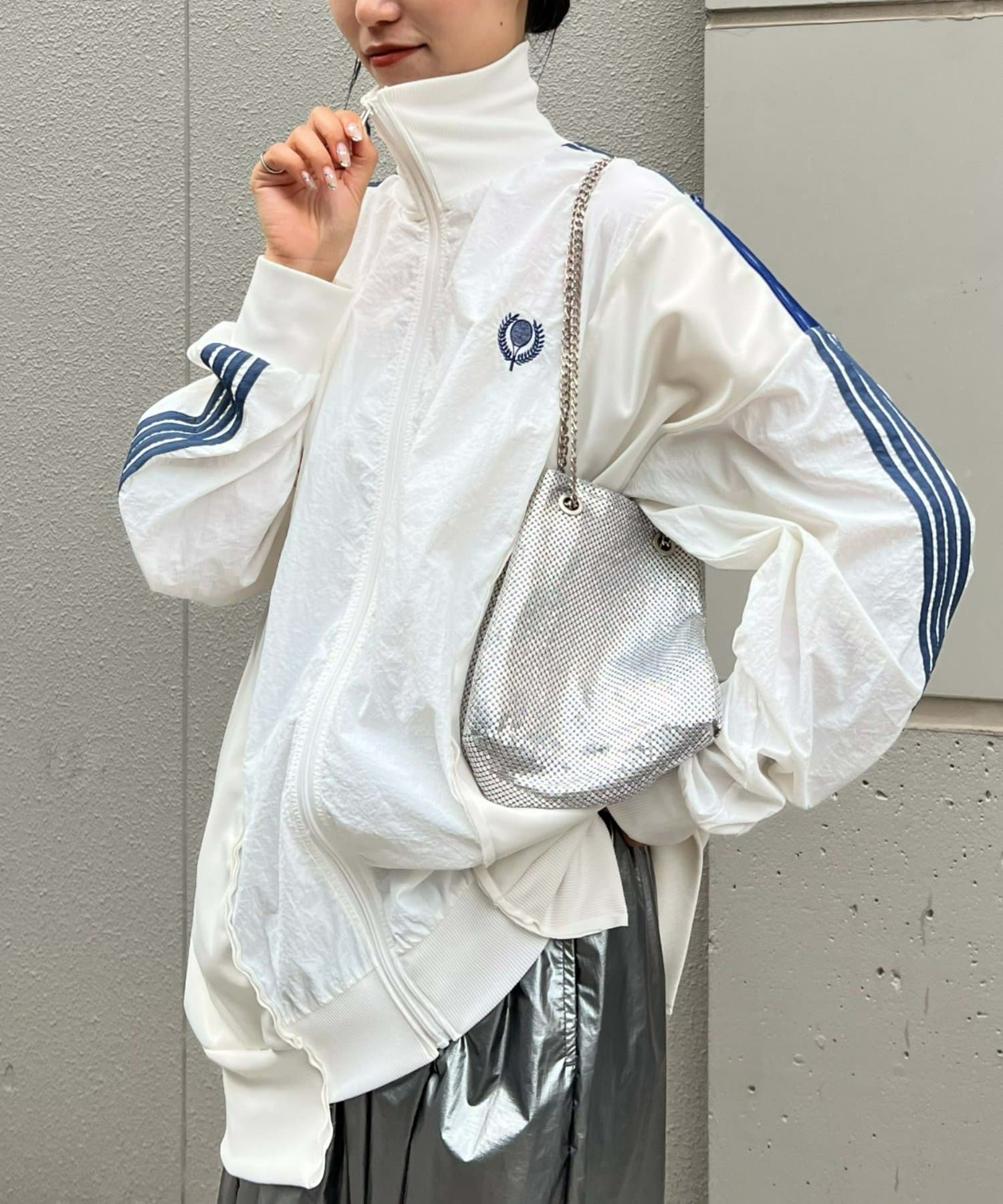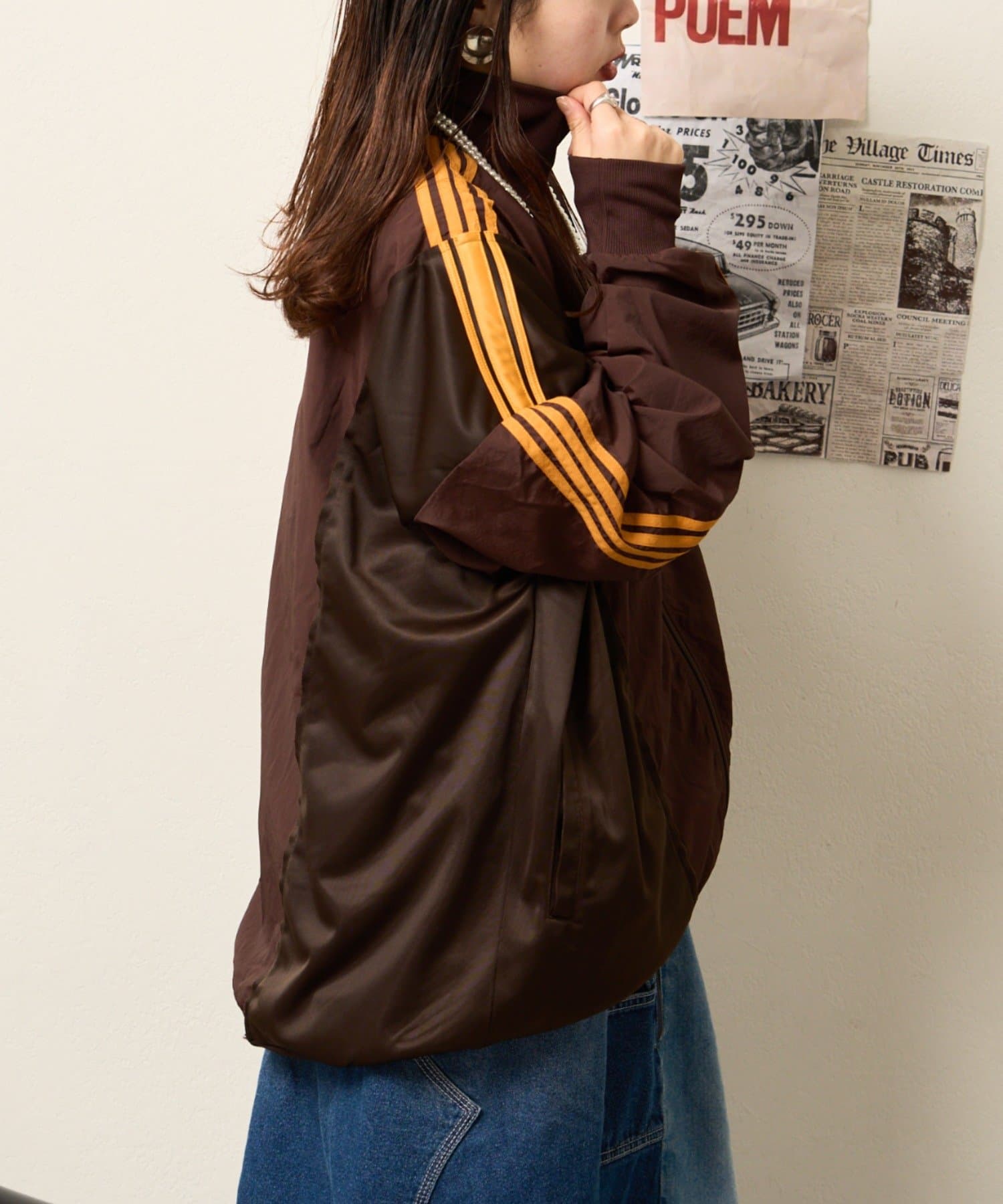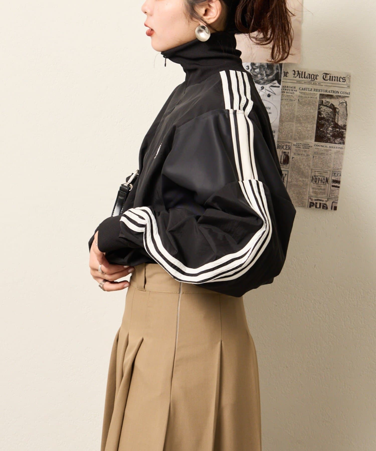 袖に入ったトラックジャケット特有のラインや、胸元の刺繍がポイント◎