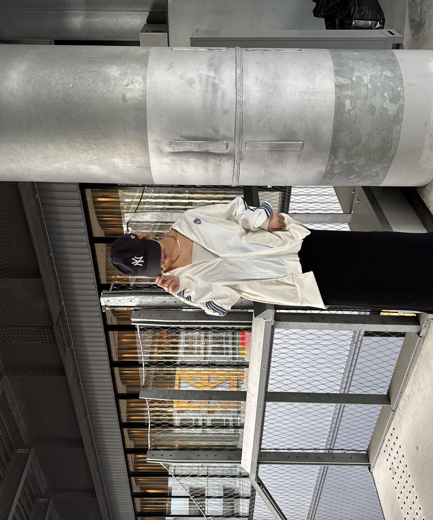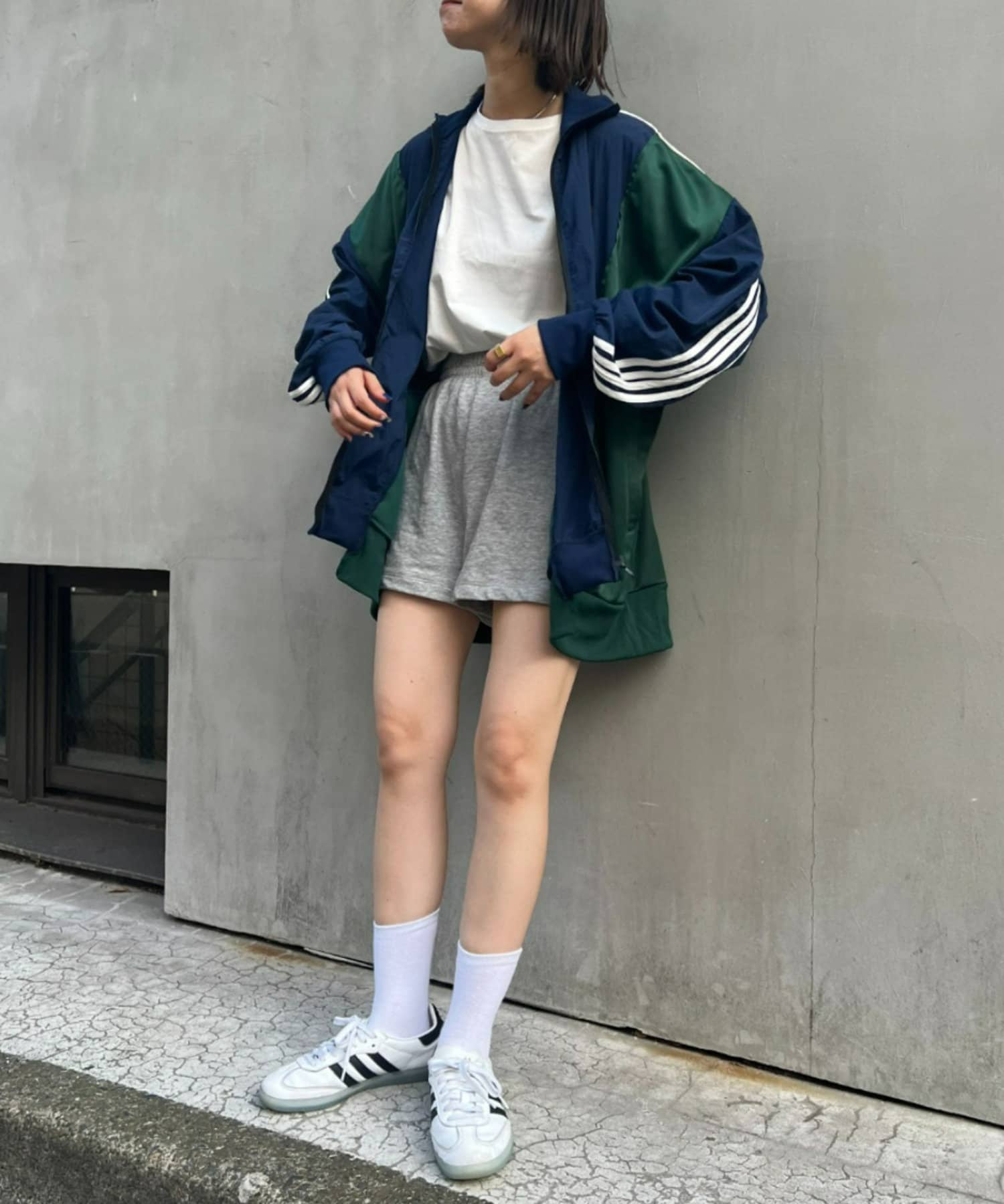 今年トレンドのスポーティーコーデにも大活躍する1枚です♩