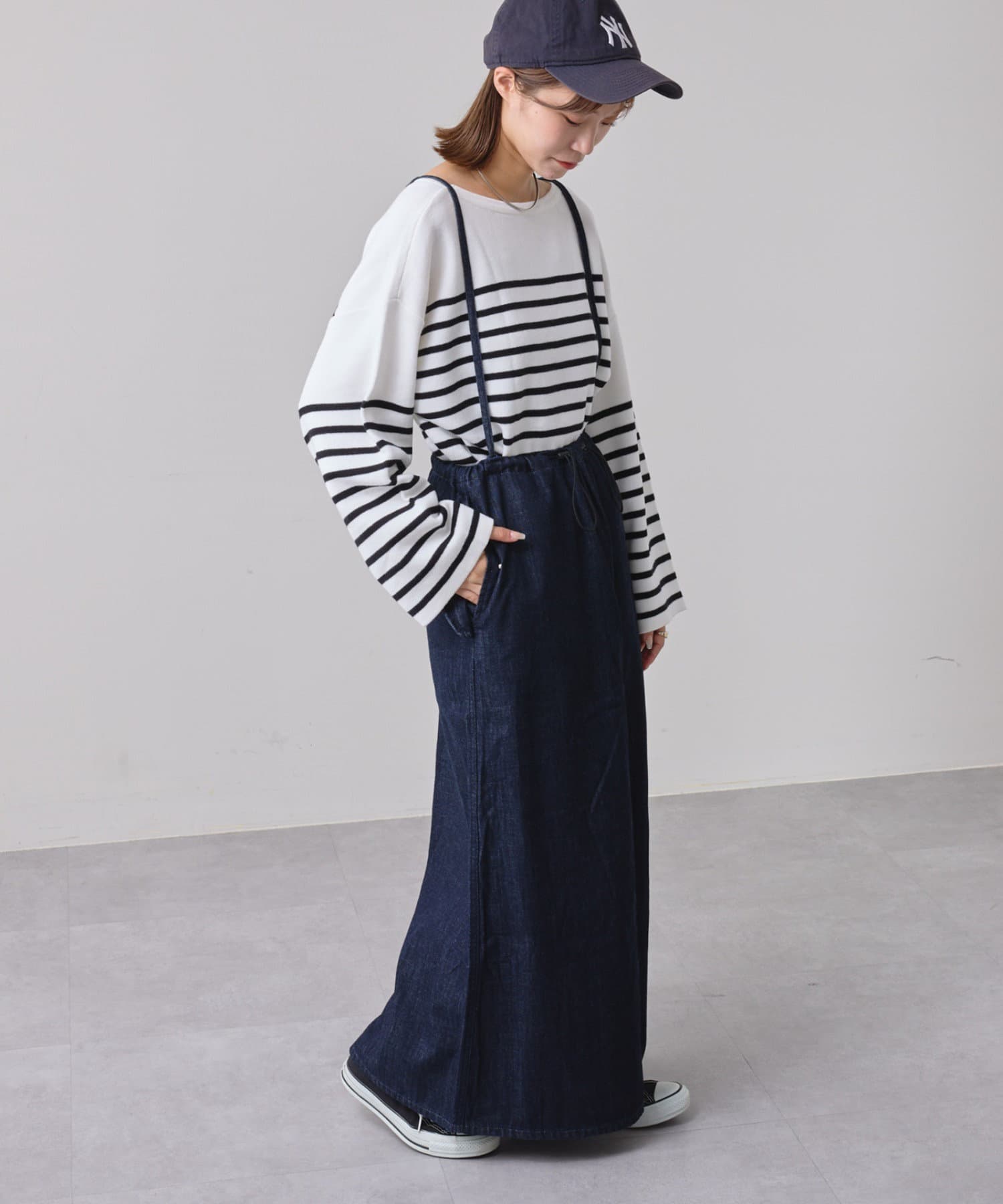 サイドにスリットが入っているので、タックインしなくても抜け感の出るデザインに◎