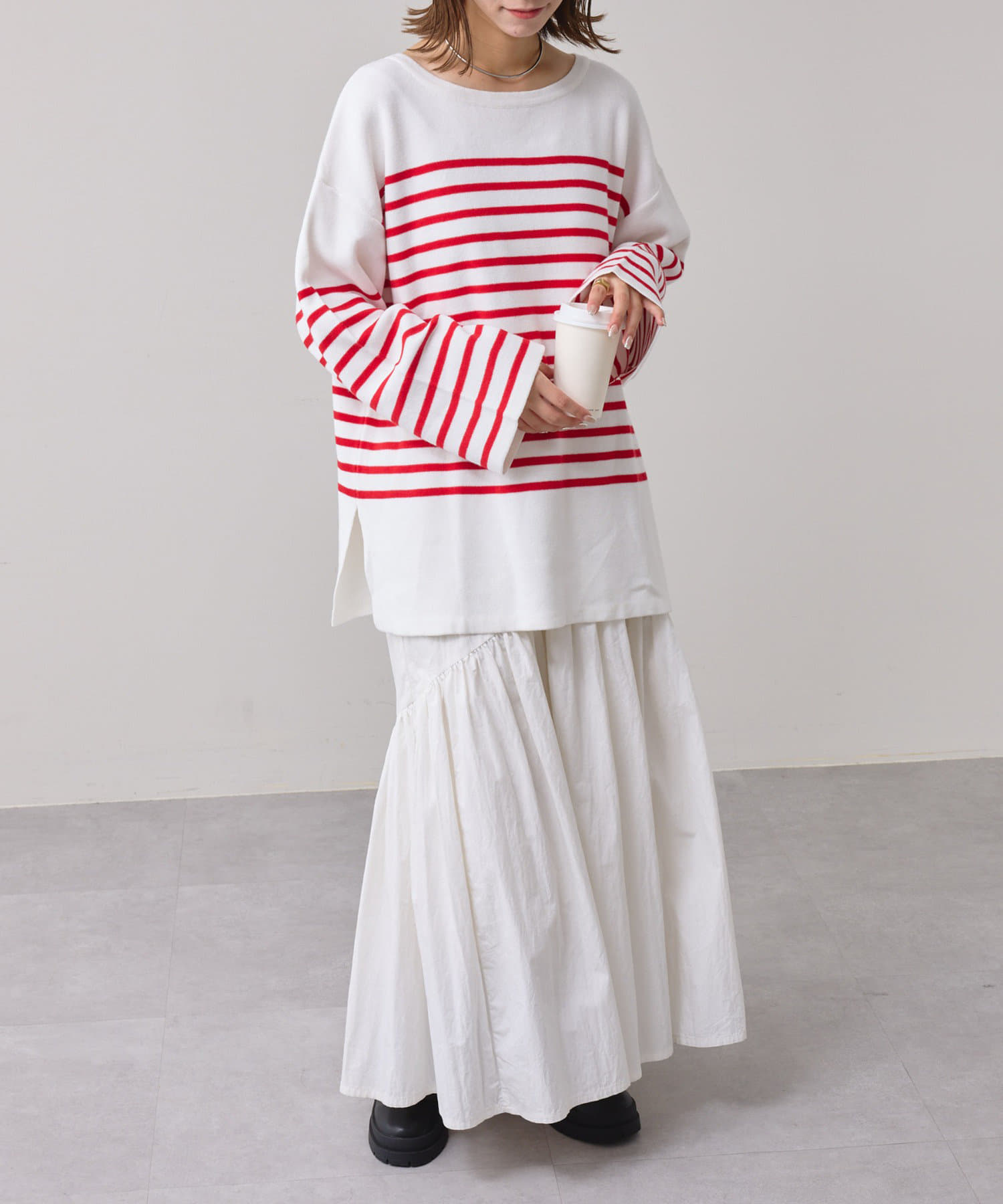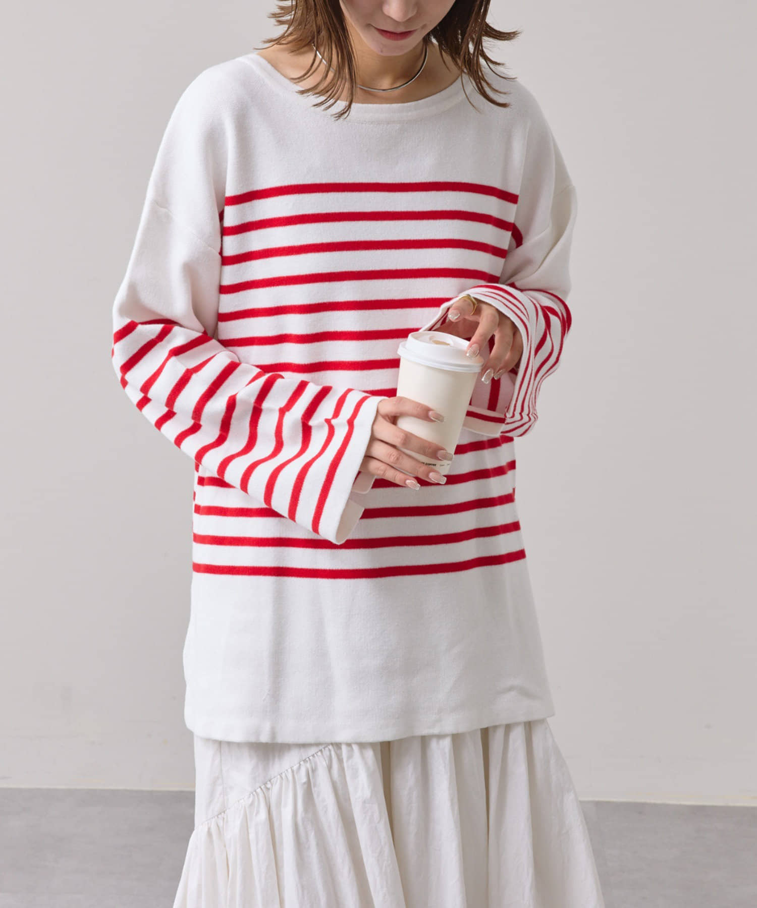 【CIAOPANIC TYPY】スウェットライクボーダールーズシルエットニット