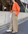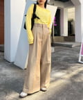 ホワイトやブラックはカラーボトムスと合わせるとさらにトレンド感のあるコーデの完成。