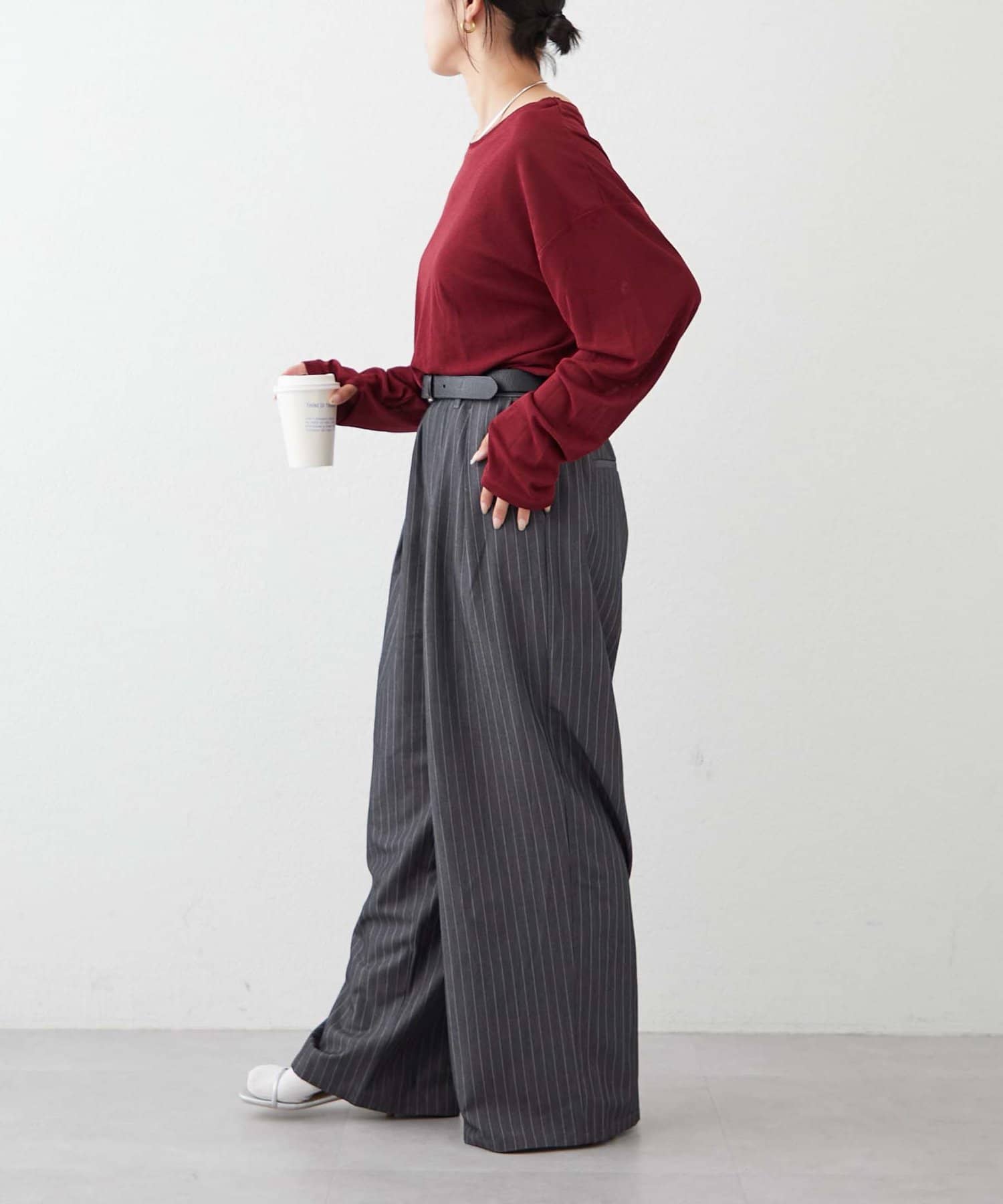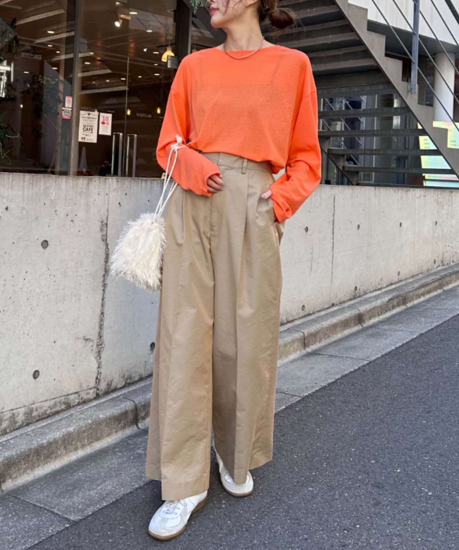サイドにスリットが入っているので抜け感のある印象に。
