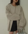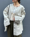 襟元のフリンジが女性らしいポイントに。